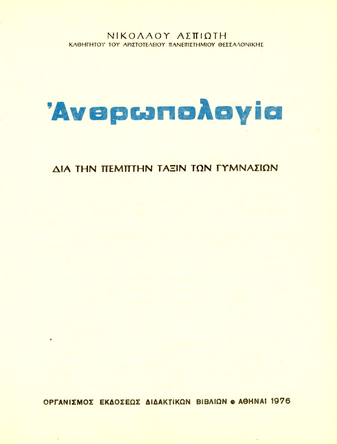 Σχολικό εγχειρίδιο Ανθρωπολογίας Β΄ Λυκείου που εστιάζει στην κατασκευή, ανάπτυξη και λειτουργία του ανθρώπινου οργανισμού και τη σχέση του ανθρώπου με το φυσικό περιβάλλον. Περιέχει και αναφορά στις ανθρώπινες φυλές.