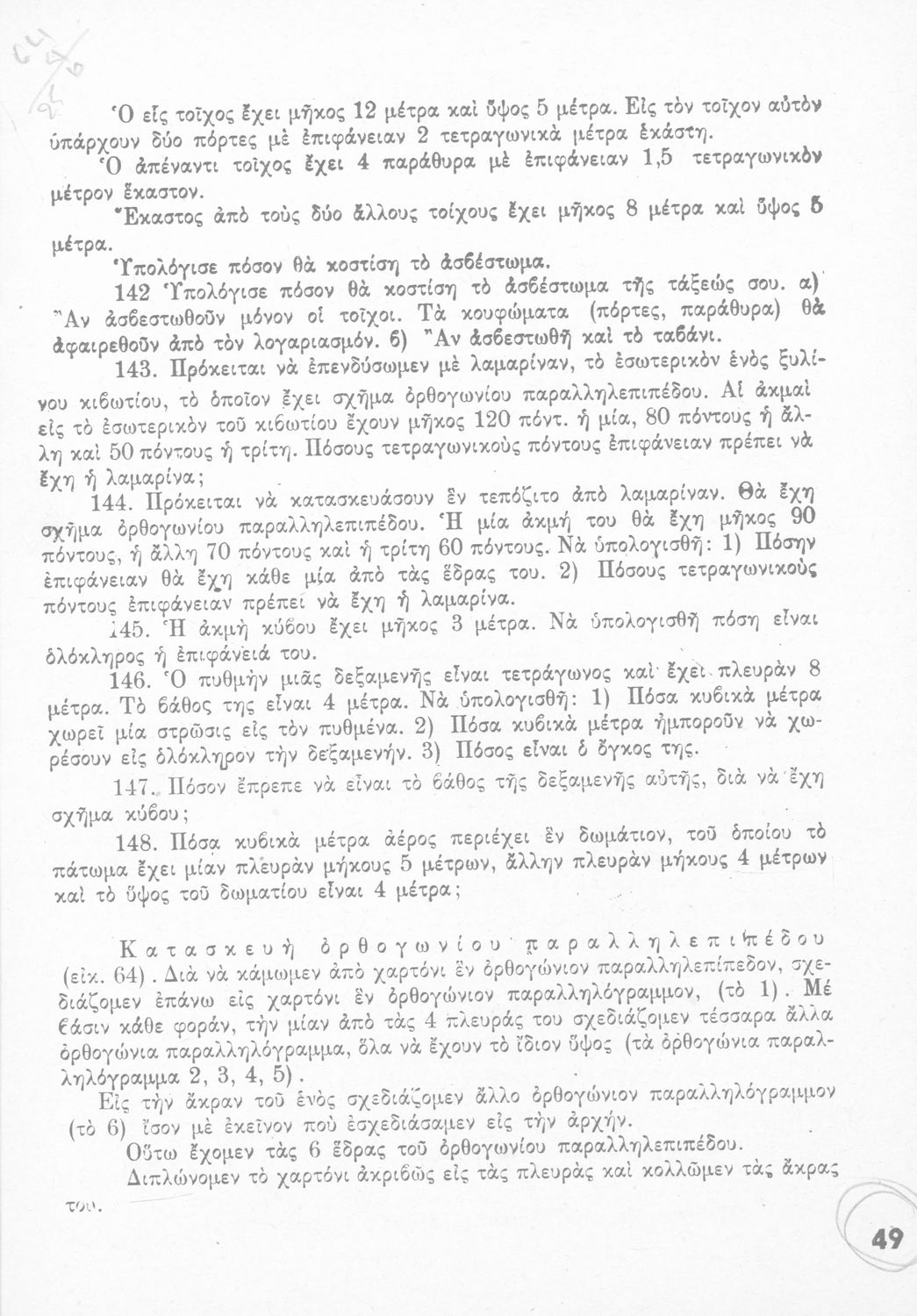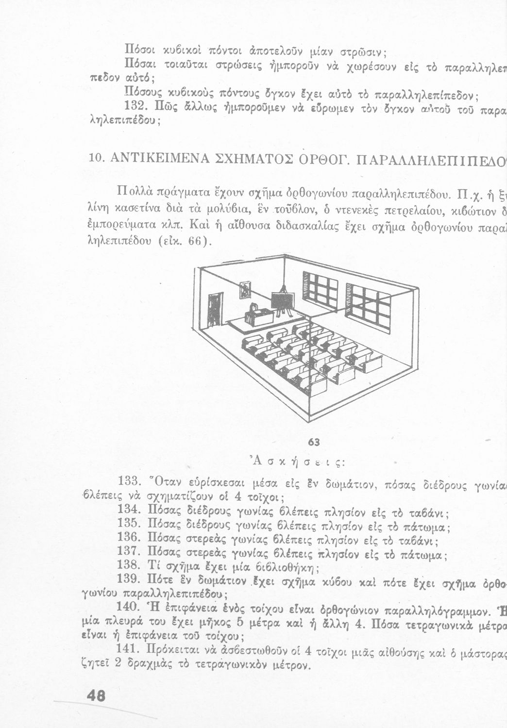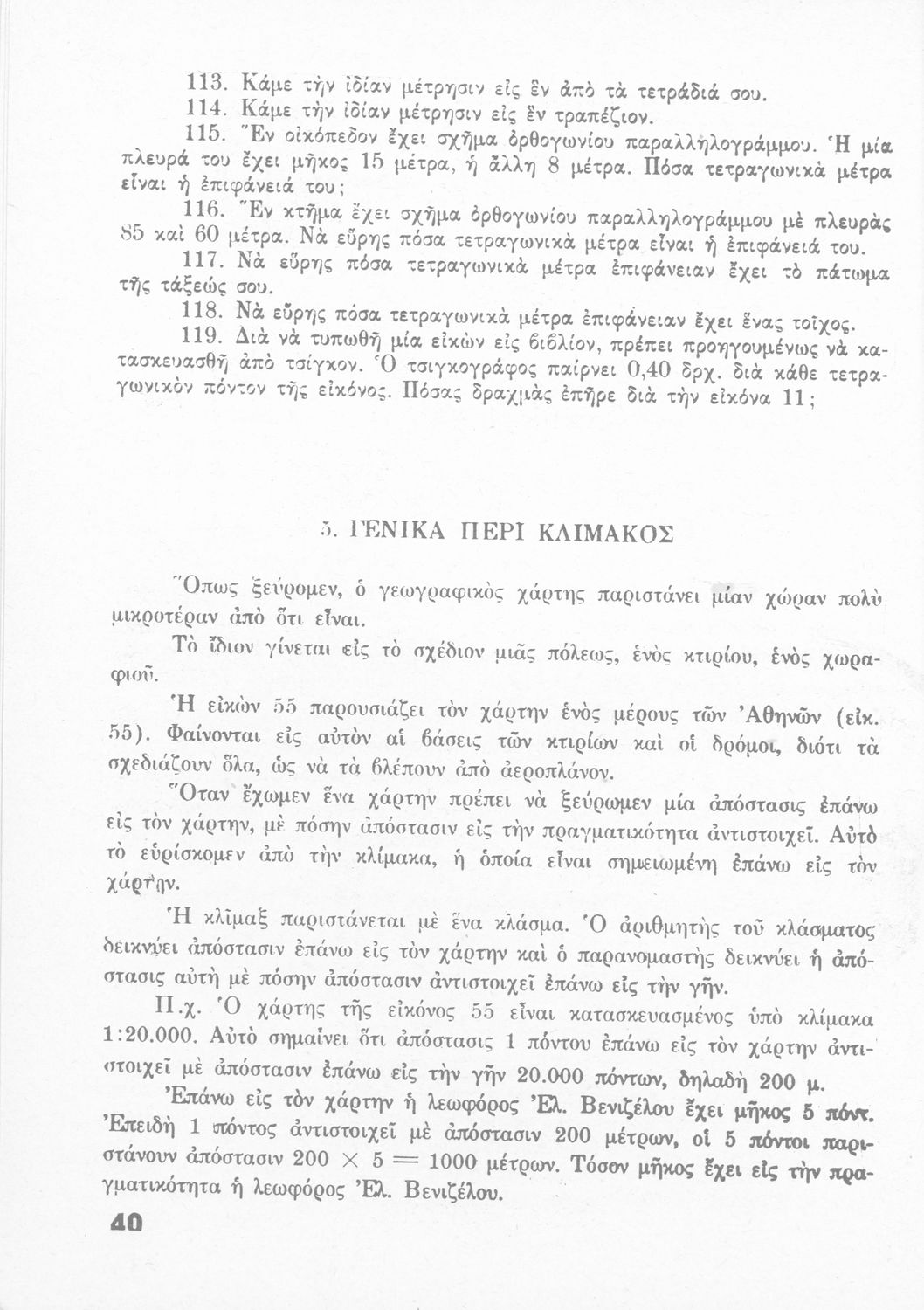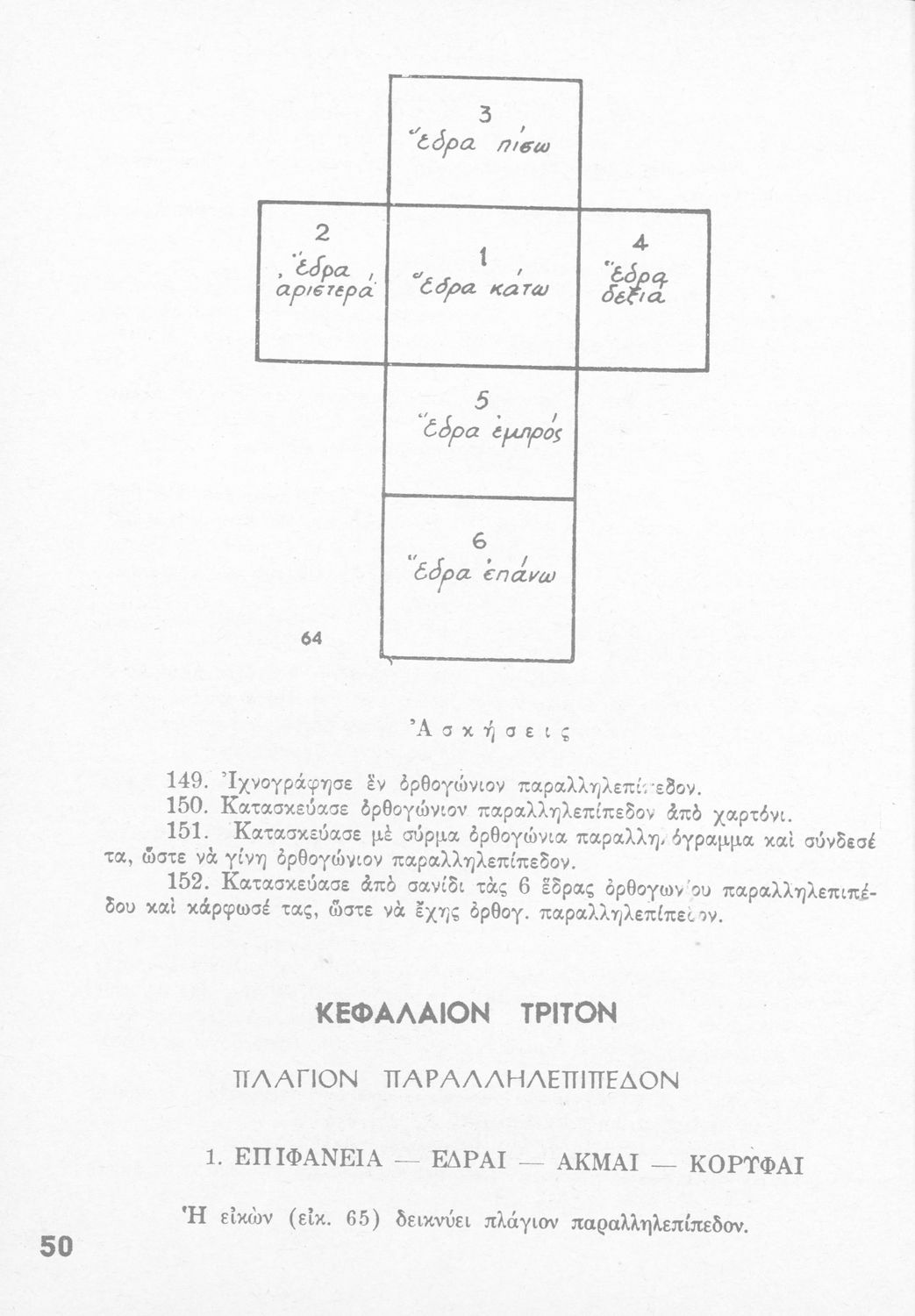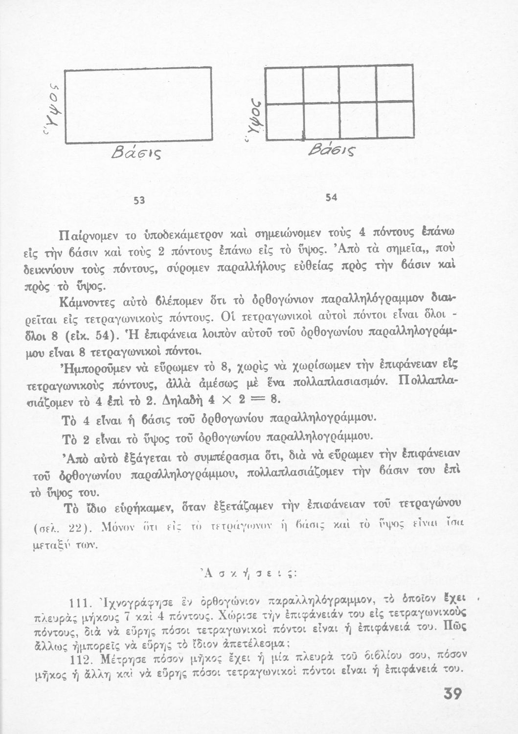 Βαθμίδα εκπαίδευσης: Πρωτοβάθμια Τάξη: Ε' Δημοτικού / ΣΤ' Δημοτικού Μάθημα: Μαθηματικά Γλώσσα: Απλή καθαρεύουσα Παρουσίαση περιεχομένου: Μαθητικό βοήθημα Γεωμετρίας για την Ε΄ και ΣΤ΄ Δημοτικού που περιέχει εικόνες, σχεδιαγράμματα και ασκήσεις. |
