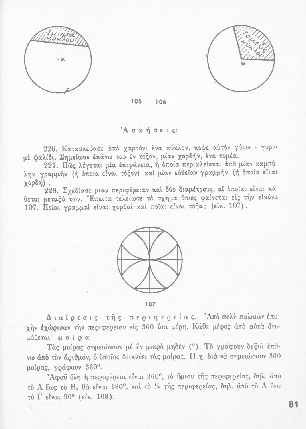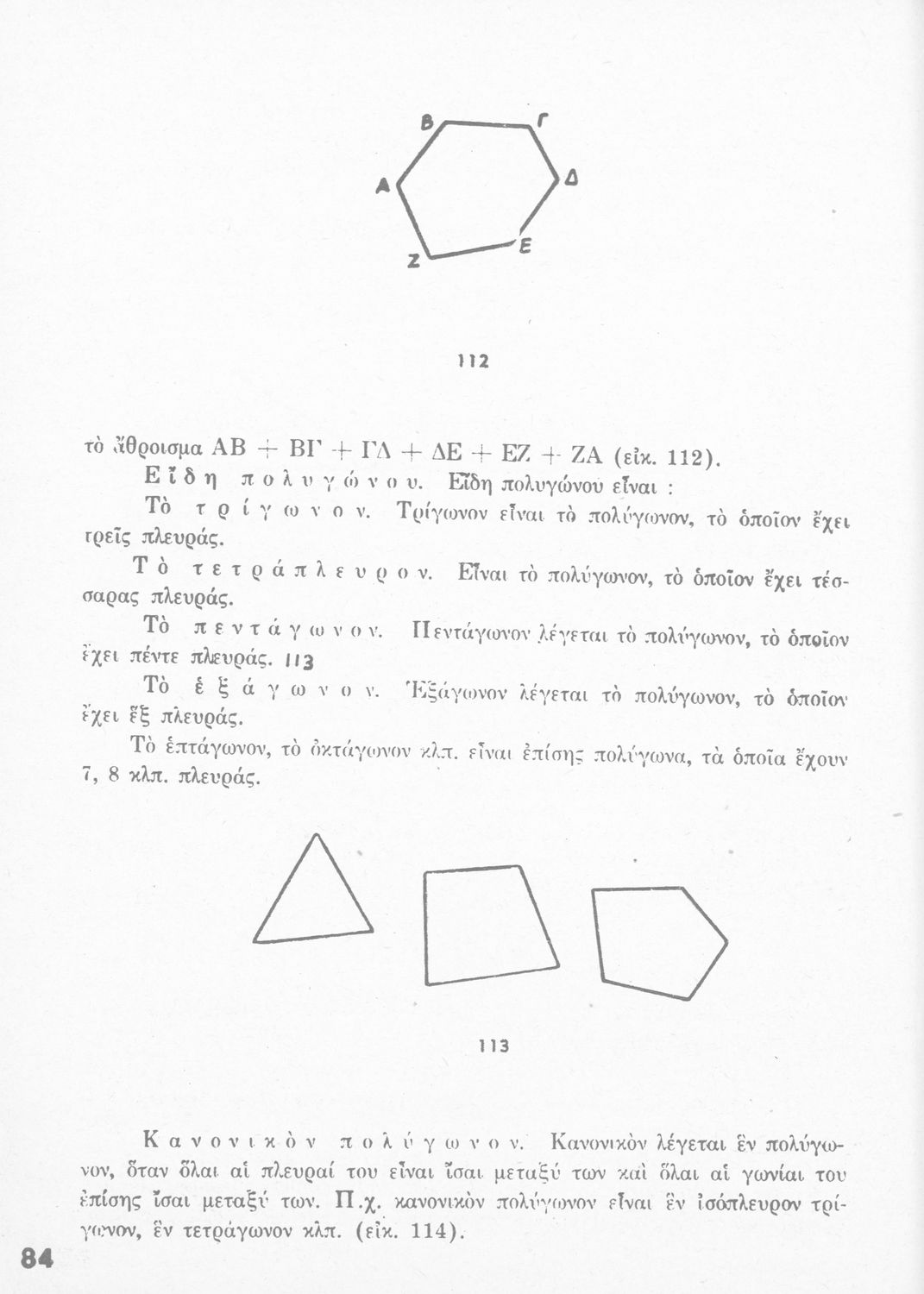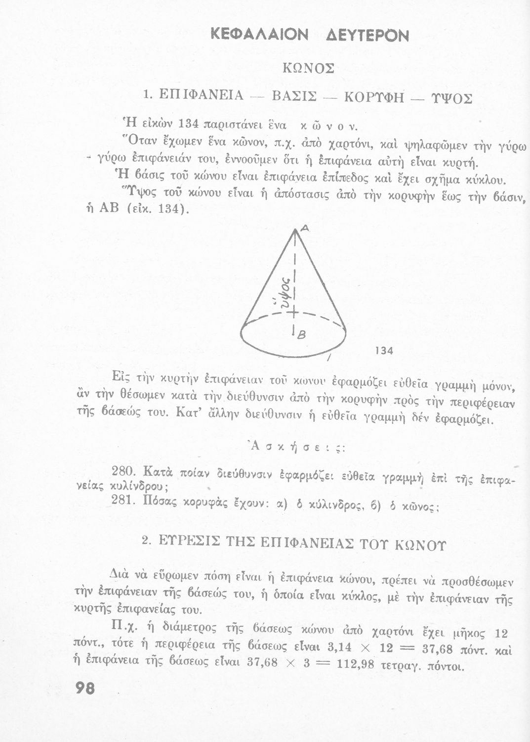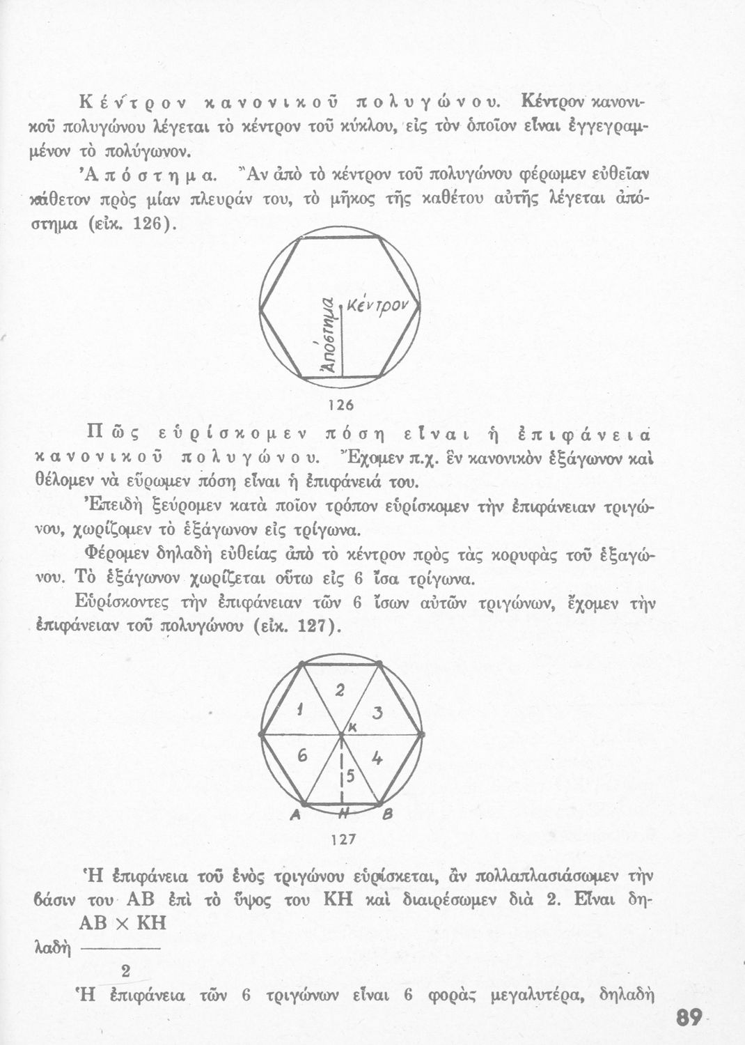 Σχολικό εγχειρίδιο Γεωμετρίας για τις Α΄, Β΄, Γ΄ Γυμνασίου που είναι χωρισμένο σε Επιπεδομετρία και Στερεομετρία και περιλαμβάνει θεωρία και ασκήσεις.