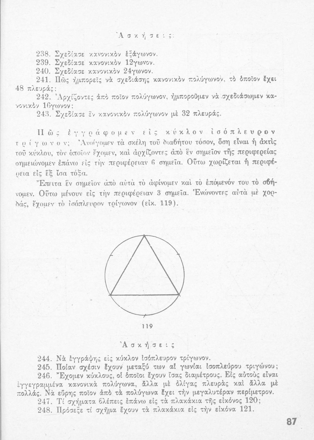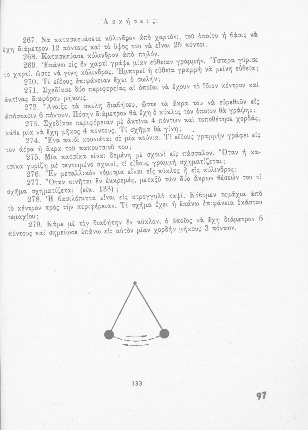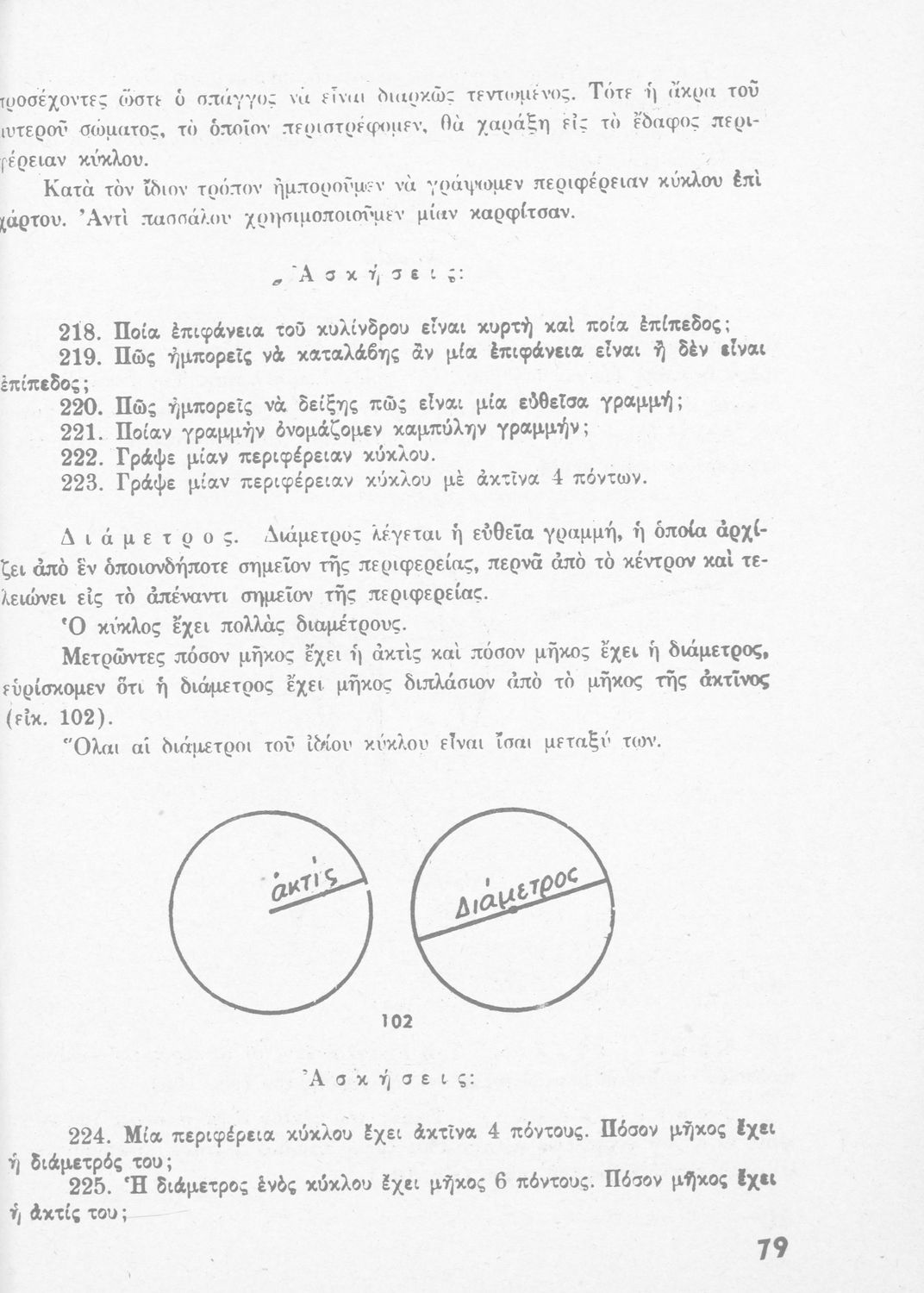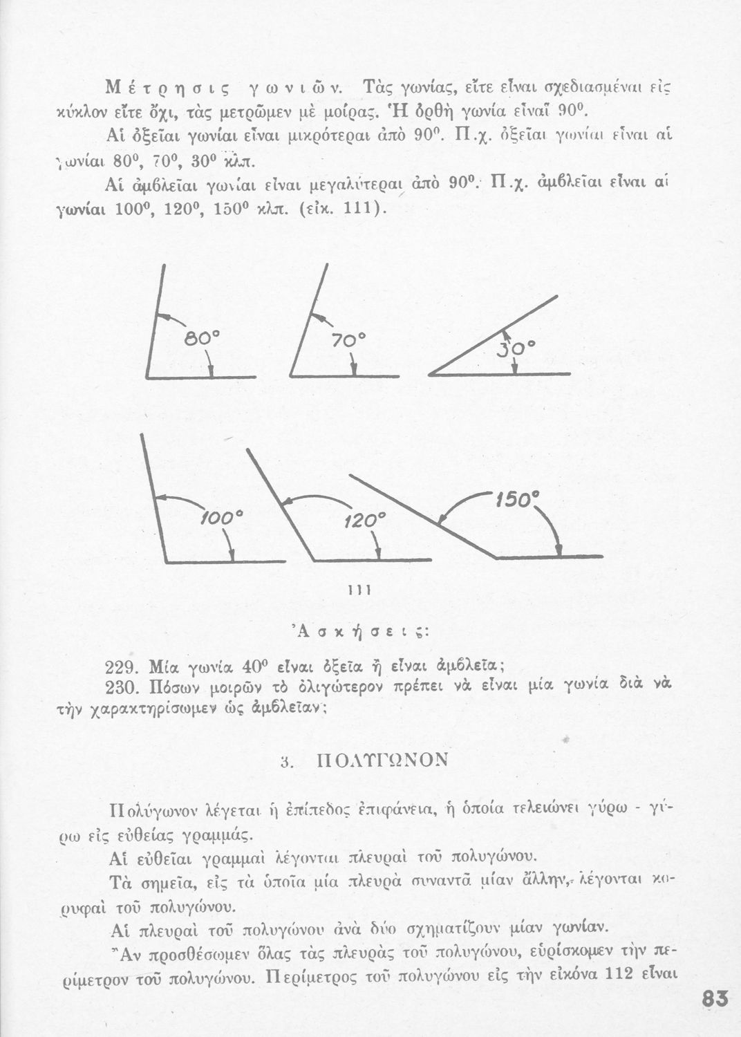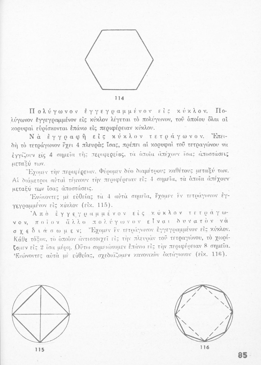 Σχολικό εγχειρίδιο Γεωμετρίας για τις Α΄, Β΄, Γ΄ Γυμνασίου που είναι χωρισμένο σε Επιπεδομετρία και Στερεομετρία και περιλαμβάνει θεωρία και ασκήσεις.