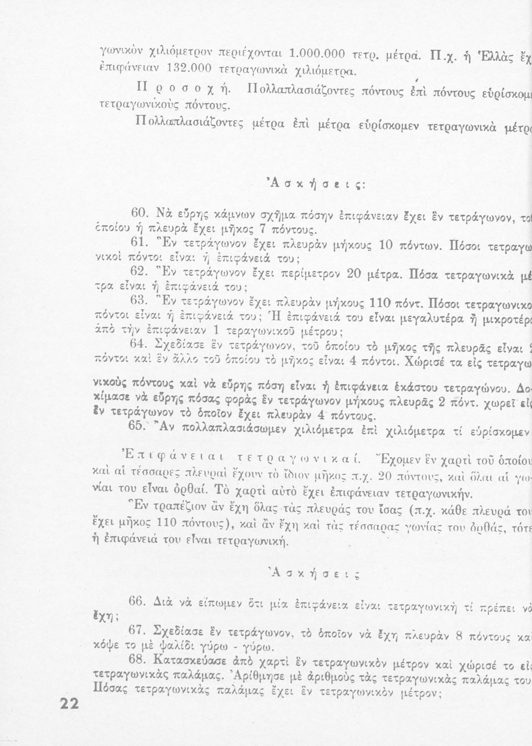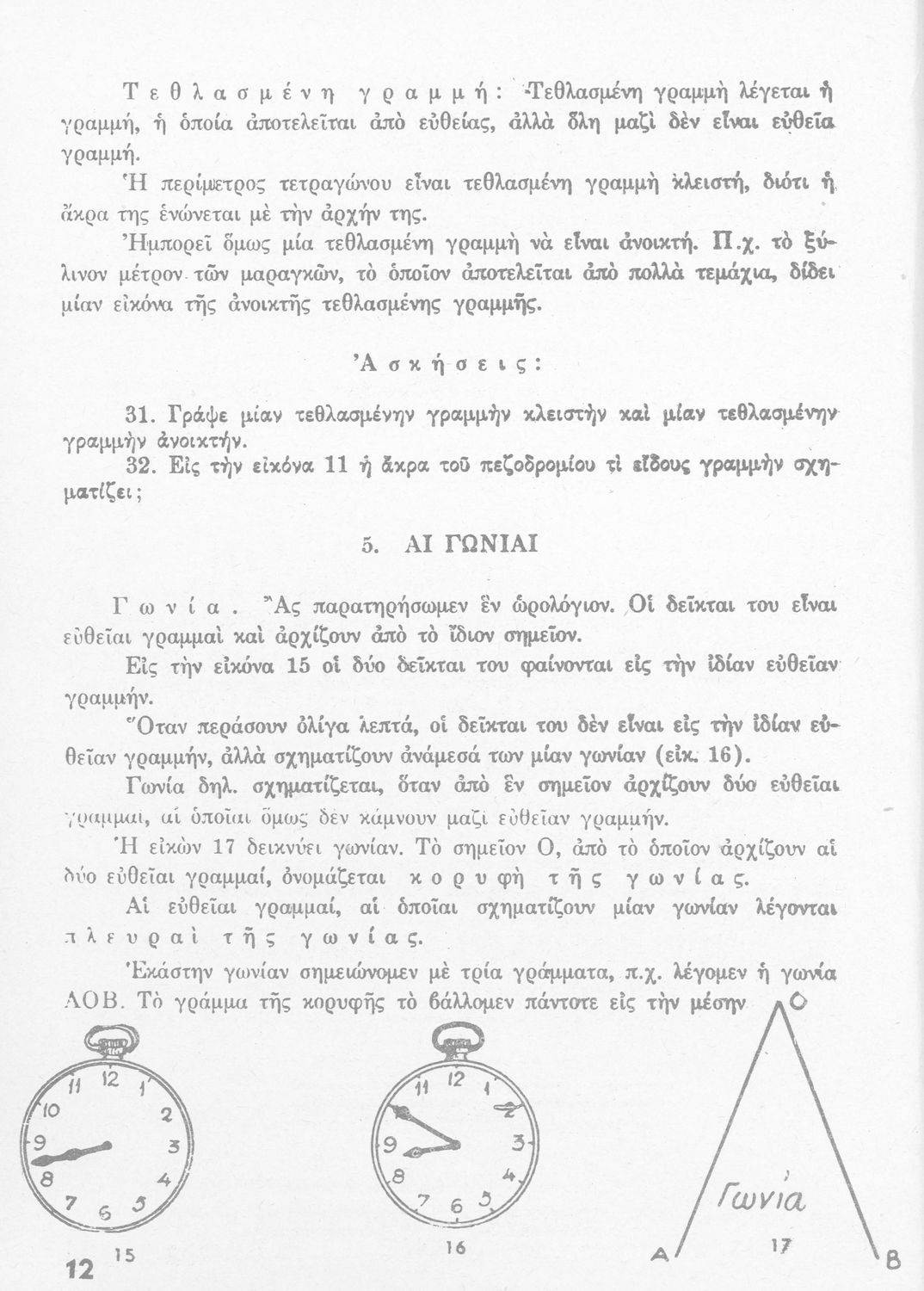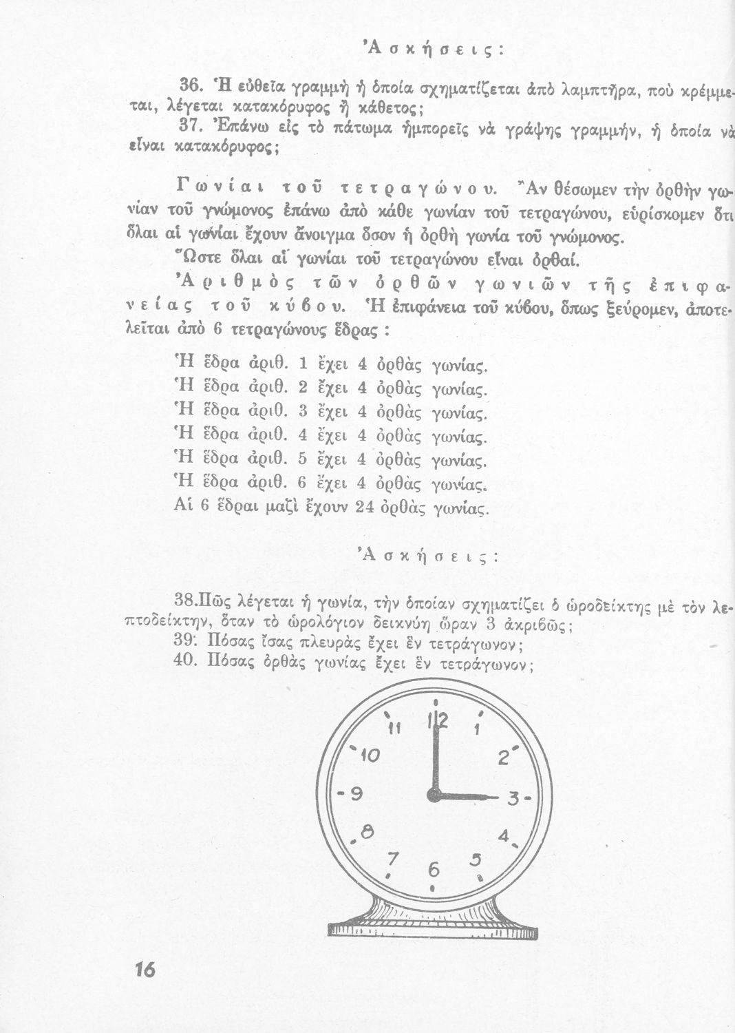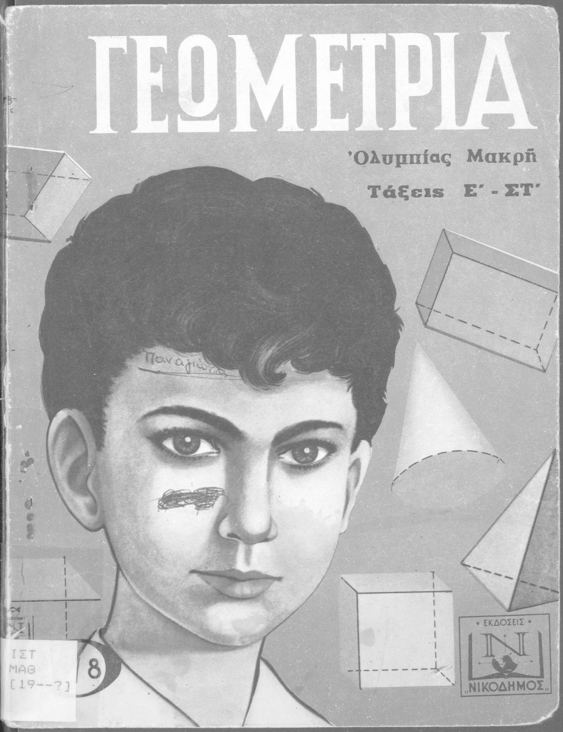 Σχολικό εγχειρίδιο Γεωμετρίας για τις Α΄, Β΄, Γ΄ Γυμνασίου που είναι χωρισμένο σε Επιπεδομετρία και Στερεομετρία και περιλαμβάνει θεωρία και ασκήσεις.