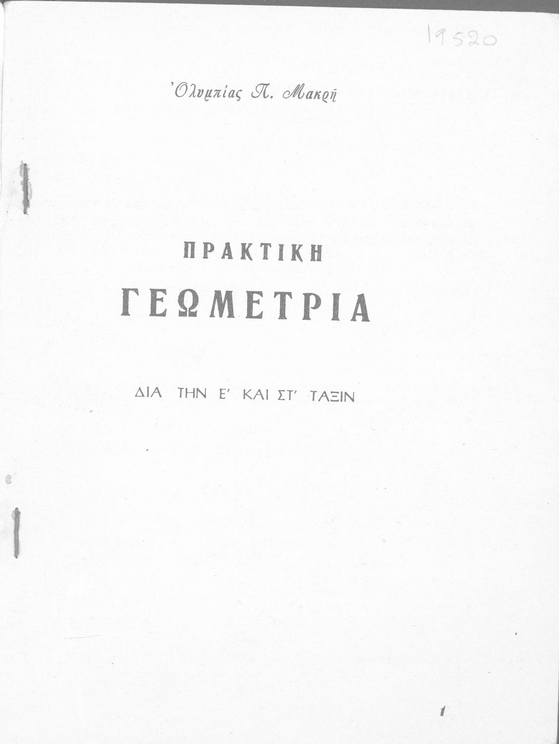 Τίτλος: Πρακτική Γεωμετρία δια την Ε΄ και ΣΤ΄ τάξιν