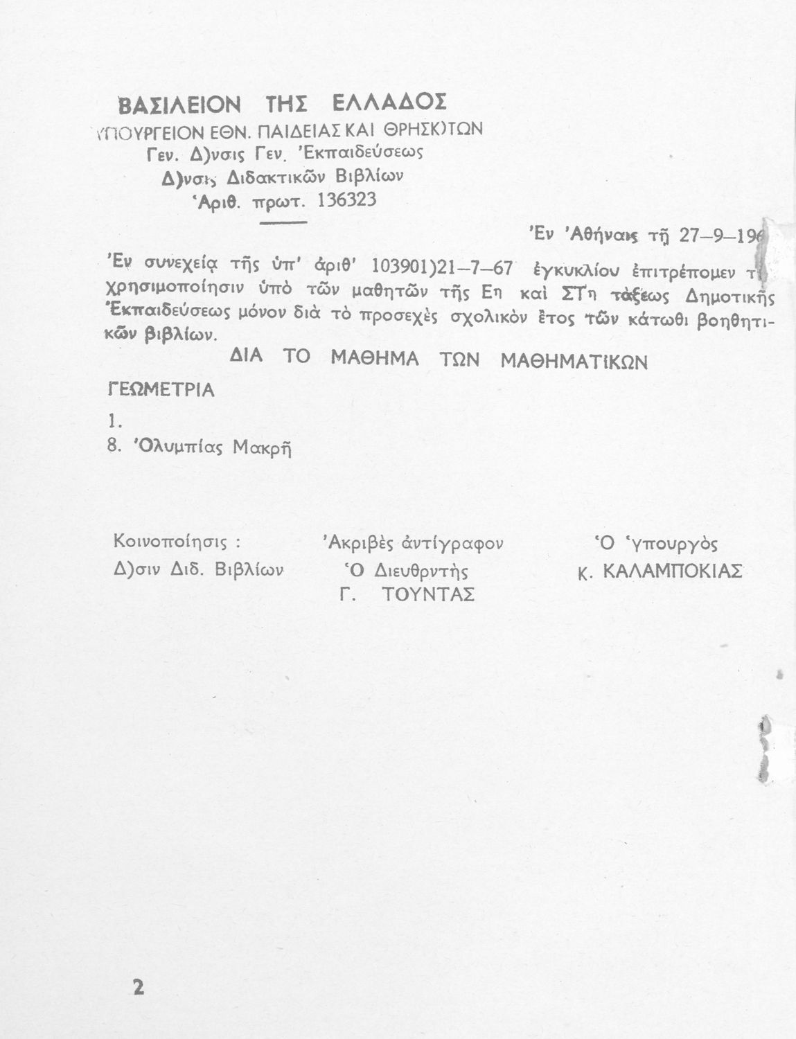 Υπουργική απόφαση / Σύμβαση: 136323/27-9-1967
