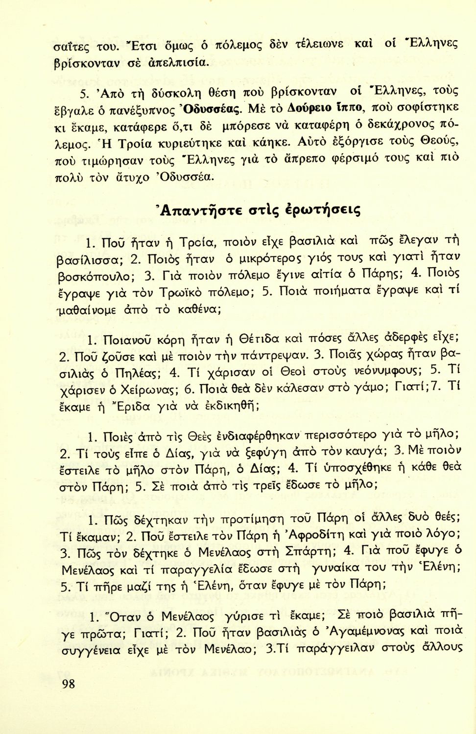 Βαθμίδα εκπαίδευσης: Πρωτοβάθμια Τάξη: Γ' Δημοτικού Μάθημα: Ιστορία Γλώσσα: Δημοτική Παρουσίαση περιεχομένου: Μαθητικό βοήθημα Ιστορίας Γ΄ Δημοτικού που παρουσιάζει θέματα από την ελληνική μυθολογία. |