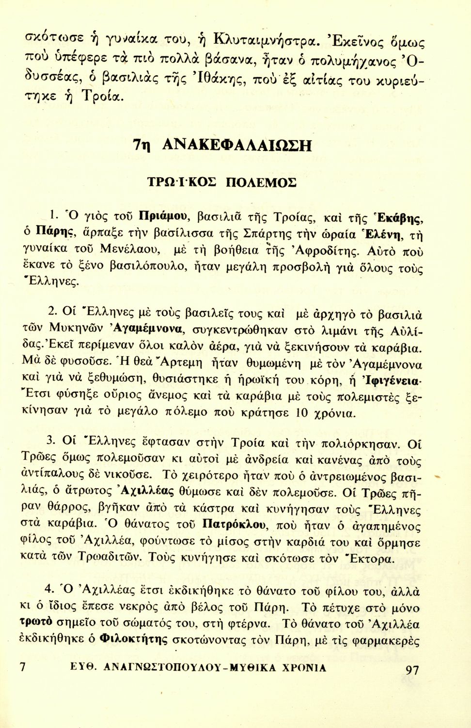 Κωδικός αναγνώρισης: 01-19521 Τίτλος: Ιστορία Μυθικών Χρόνων. Γ΄ Τάξη του Δημοτικού Σχολείου Συγγραφέας: Ευθύμιος. Ν. Αναγνωστόπουλος Μέγεθος και υπόστρωμα: Μαθητικό βοήθημα, μαλακό εξώφυλλο, 143 σελίδες. Σκίτσα, χάρτης, εικόνες (έγχρωμα). |