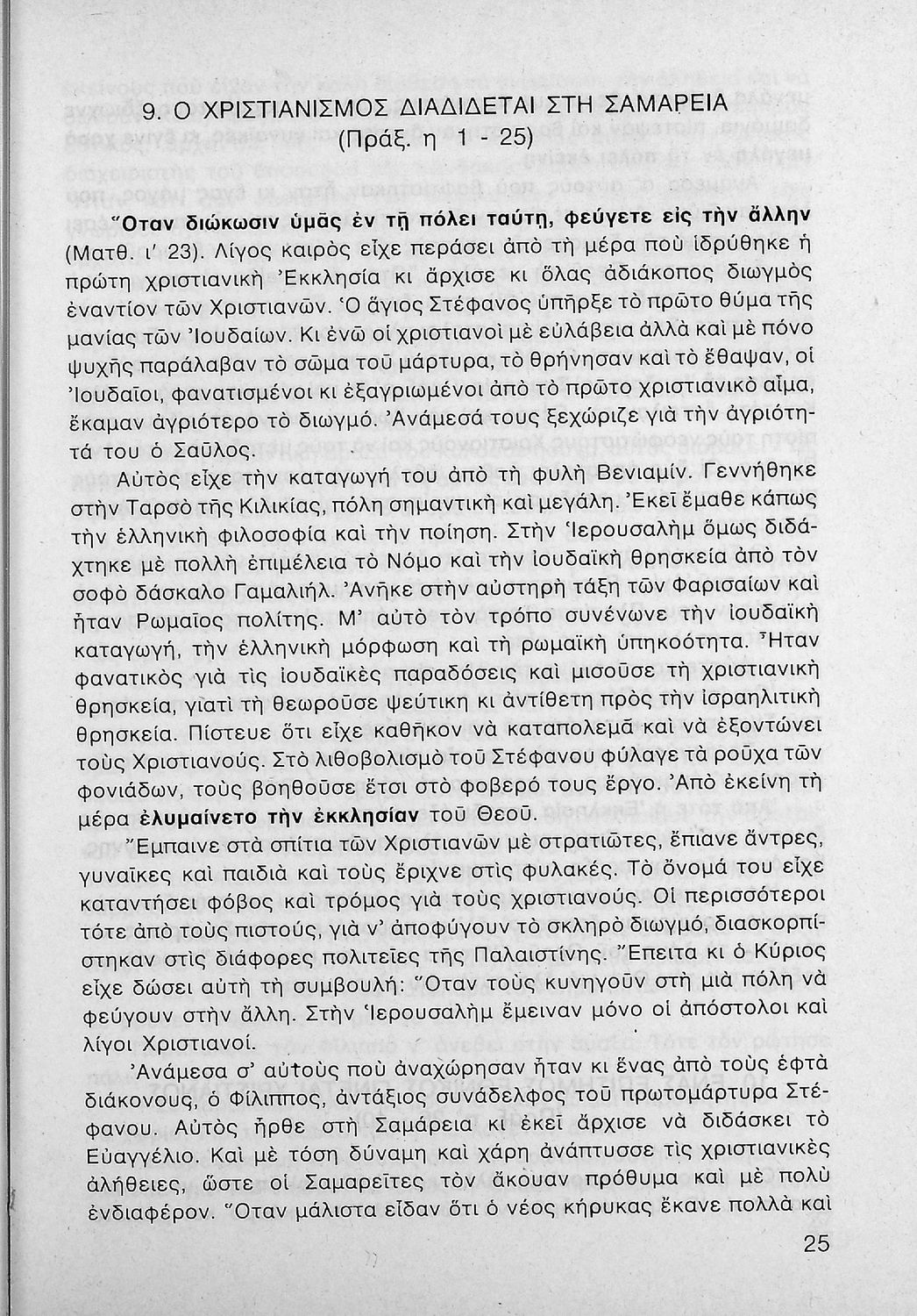 Σχολικό εγχειρίδιο Θρησκευτικών Ε΄ Γυμνασίου που περιέχει την ιστορία της Εκκλησίας από την ίδρυσή της μέχρι τις περιοδείες του Αποστόλου Παύλου.