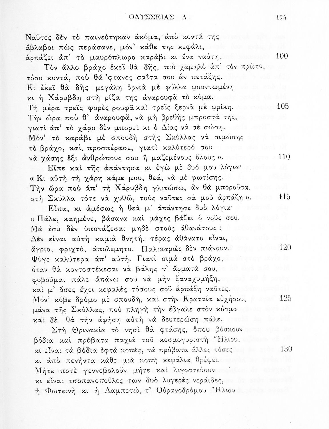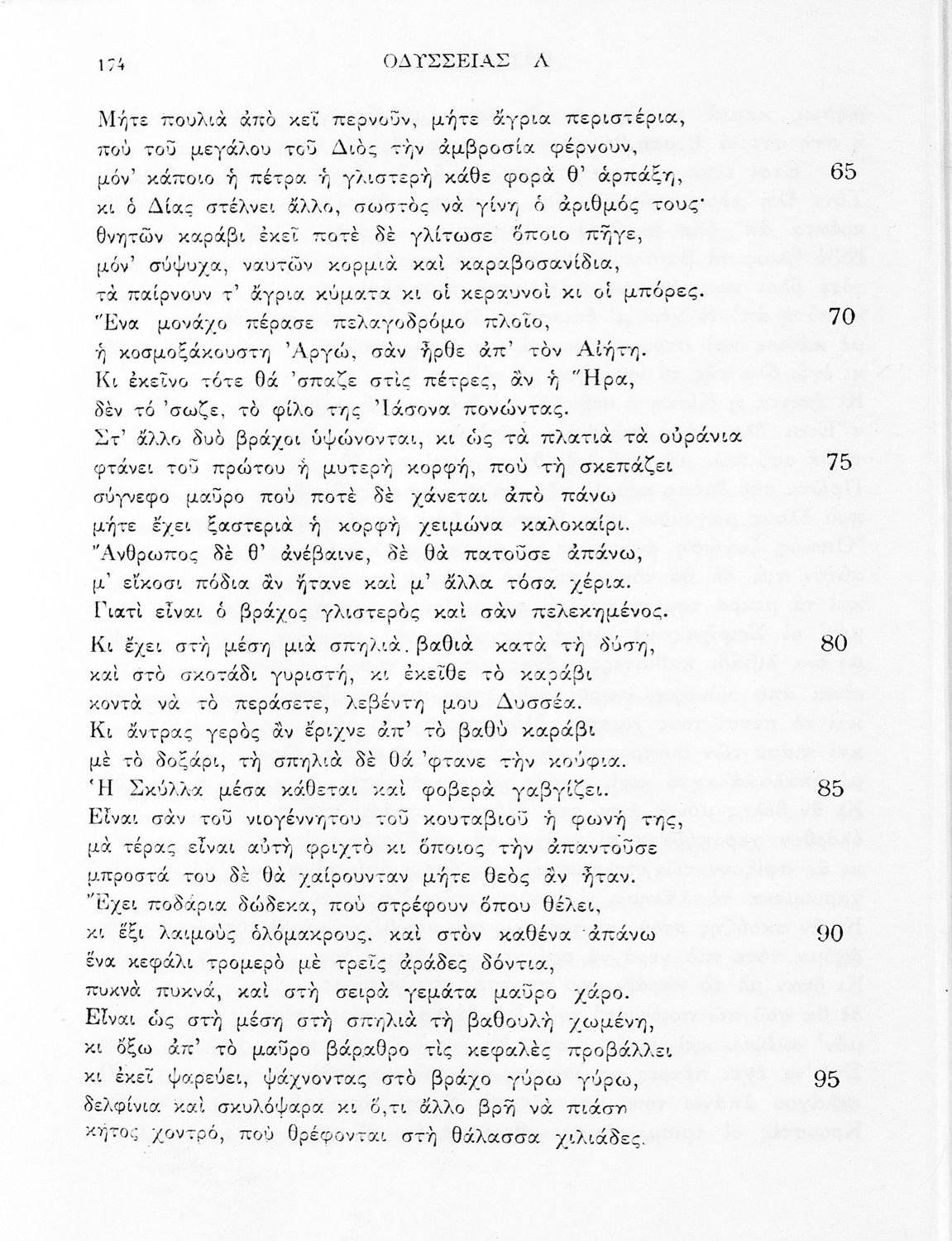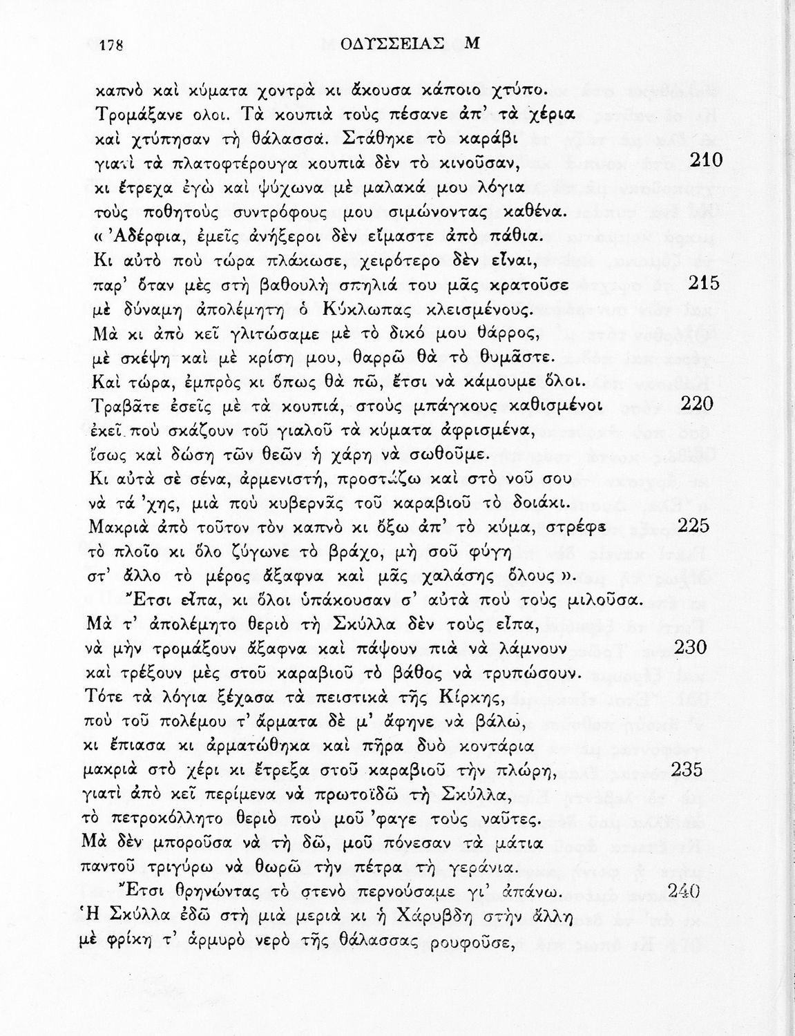 Σχολικό εγχειρίδιο Αρχαίων Ελληνικών. Πρόκειται για "ανάτυπον εμμέτρου μεταφράσεως εκ της σειράς των 227 τόμων ΑΡΧΑΙΩΝ ΕΛΛΗΝΩΝ ΣΥΓΓΡΑΦΕΩΝ ιδιοκτησίας του Εκδοτικού Οίκου Ιωάννου Ν. Ζαχαρόπουλου". Το βιβλίο περιλαμβάνει το έπος της Οδύσσειας σε μετάφραση του Ζήσιμου Σιδέρη. Ακολουθεί ενδεικτικό Λεξιλόγιο.