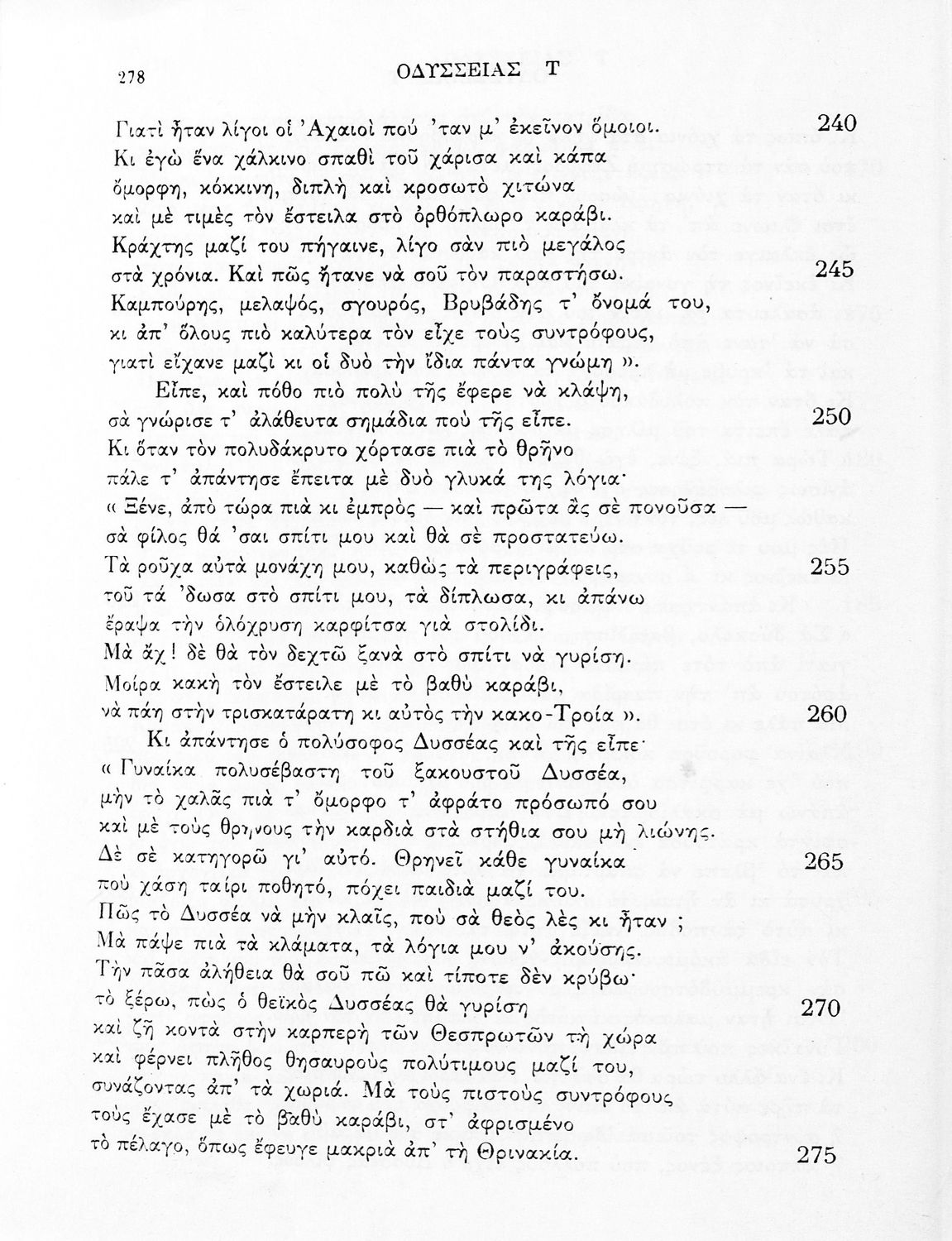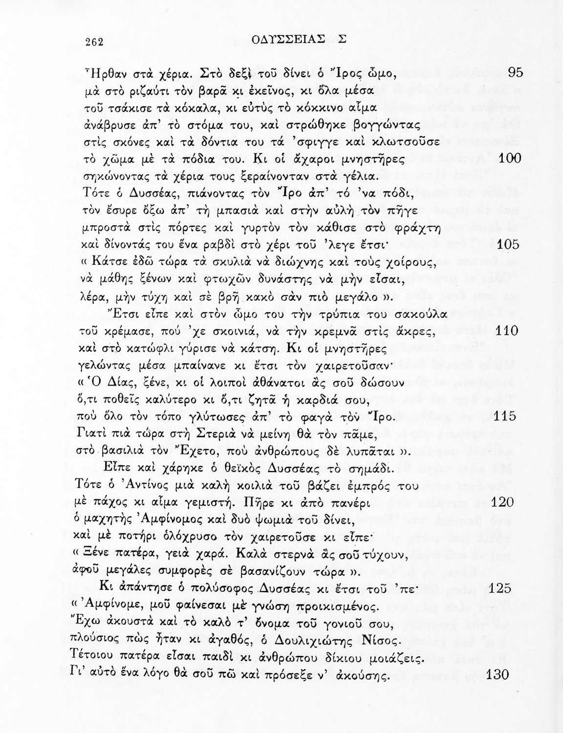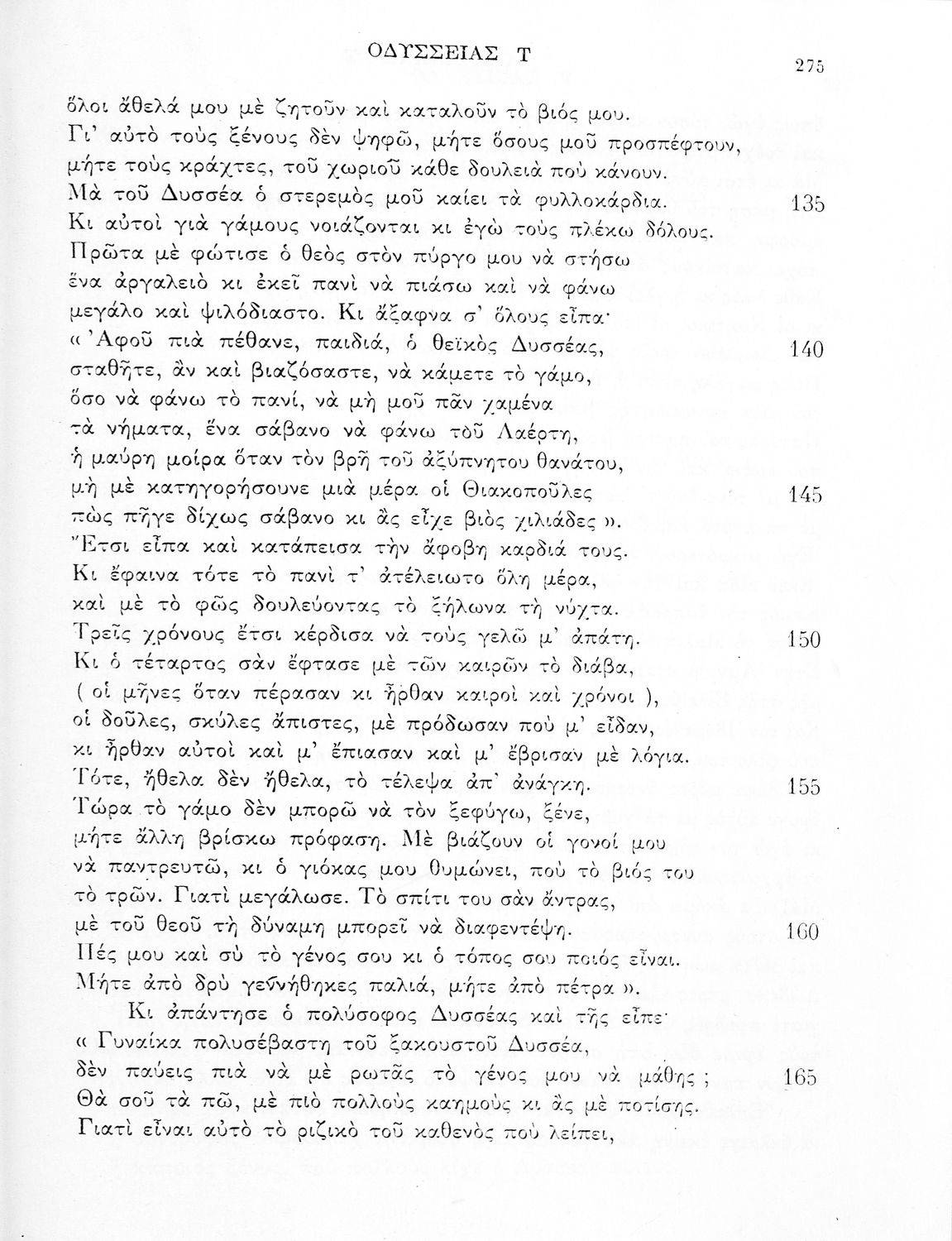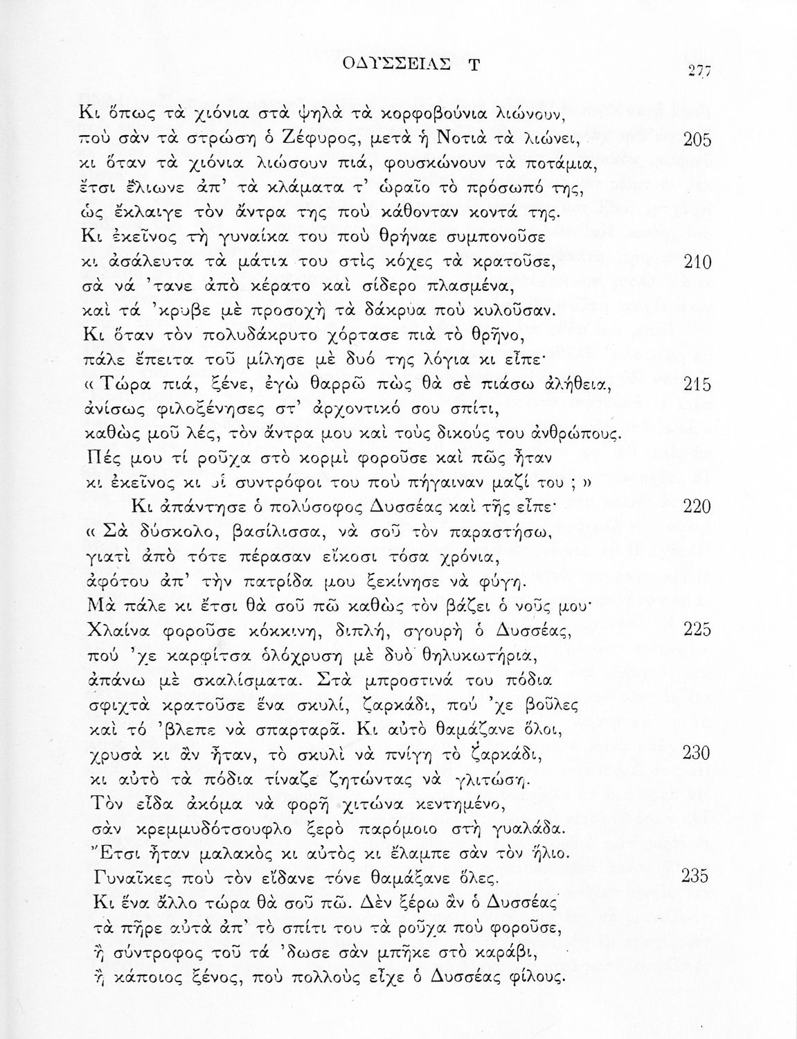 Σχολικό εγχειρίδιο Αρχαίων Ελληνικών. Πρόκειται για "ανάτυπον εμμέτρου μεταφράσεως εκ της σειράς των 227 τόμων ΑΡΧΑΙΩΝ ΕΛΛΗΝΩΝ ΣΥΓΓΡΑΦΕΩΝ ιδιοκτησίας του Εκδοτικού Οίκου Ιωάννου Ν. Ζαχαρόπουλου". Το βιβλίο περιλαμβάνει το έπος της Οδύσσειας σε μετάφραση του Ζήσιμου Σιδέρη. Ακολουθεί ενδεικτικό Λεξιλόγιο.