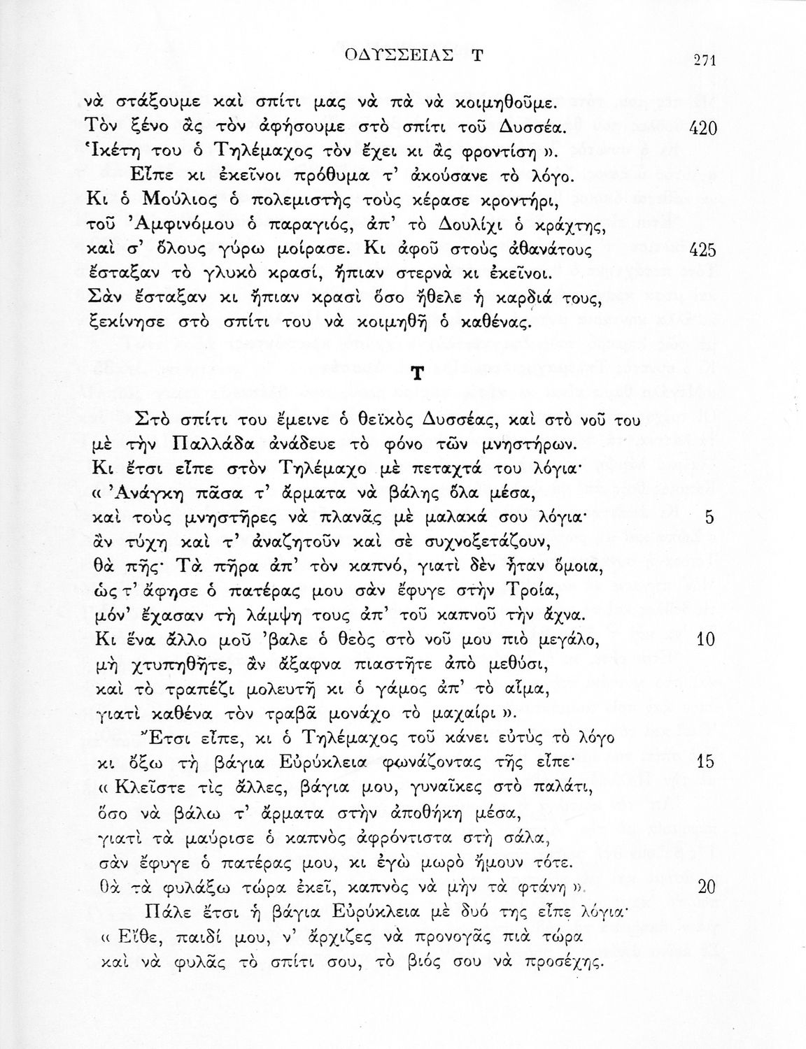 Παιδαγωγικό βοήθημα Αρχαίων Ελληνικών που περιλαμβάνει μετάφραση των ραψωδιών Ν-Ω της Οδύσσειας.