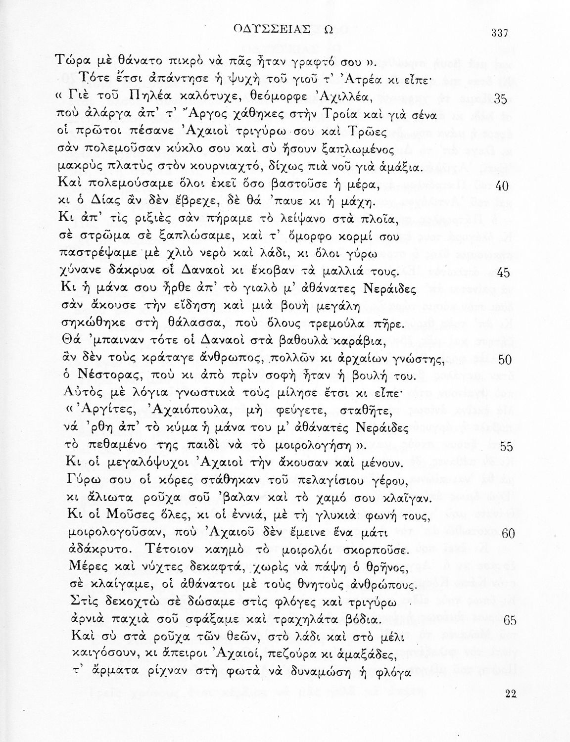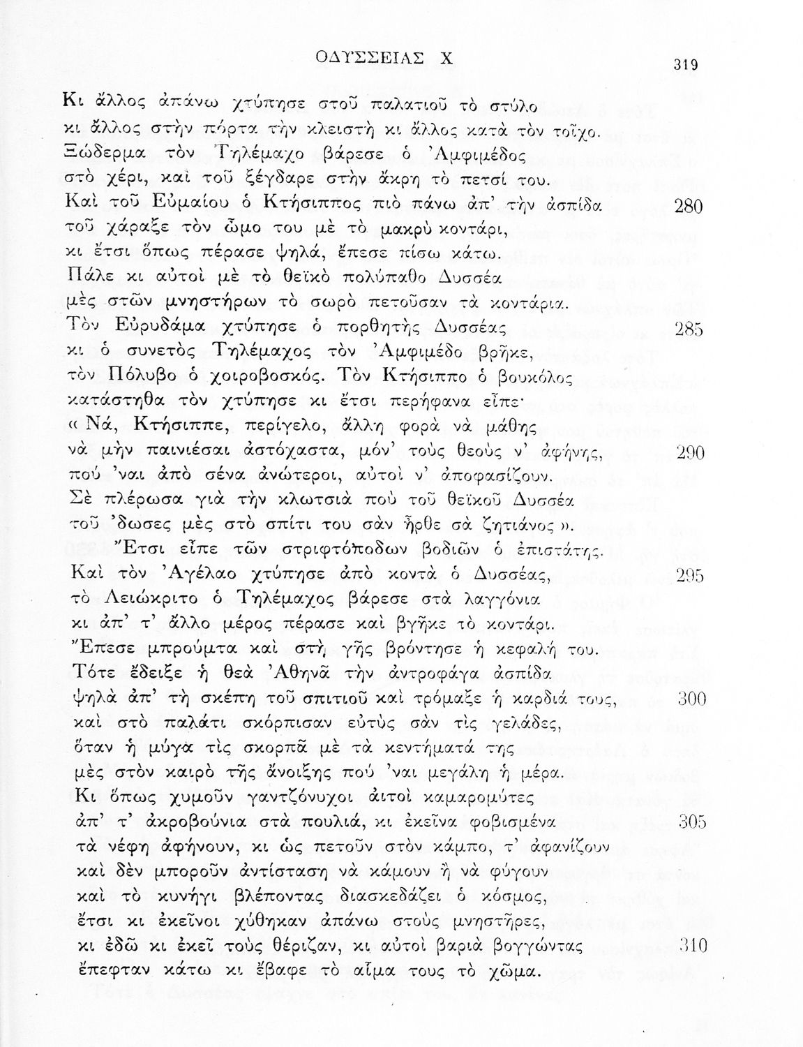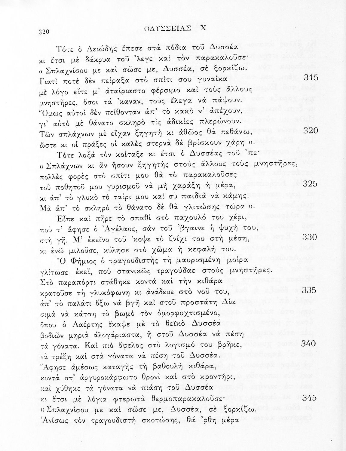 Παιδαγωγικό βοήθημα Αρχαίων Ελληνικών που περιλαμβάνει μετάφραση της Ομήρου Οδύσσειας στη νέα ελληνική, εισαγωγή στην επική ποίηση και στην Οδύσσεια, περιλήψεις και σημειώσεις.