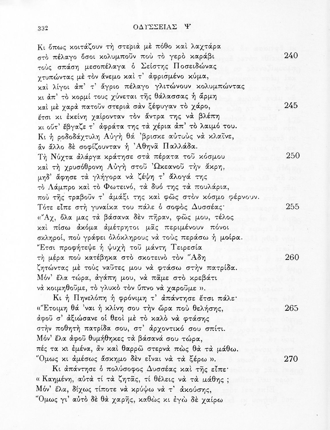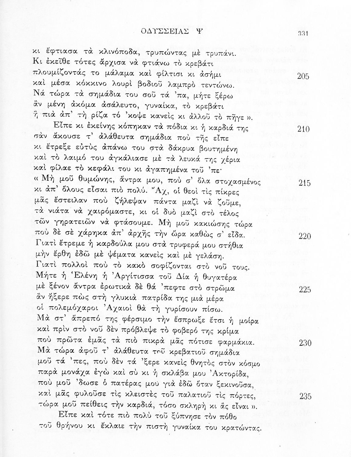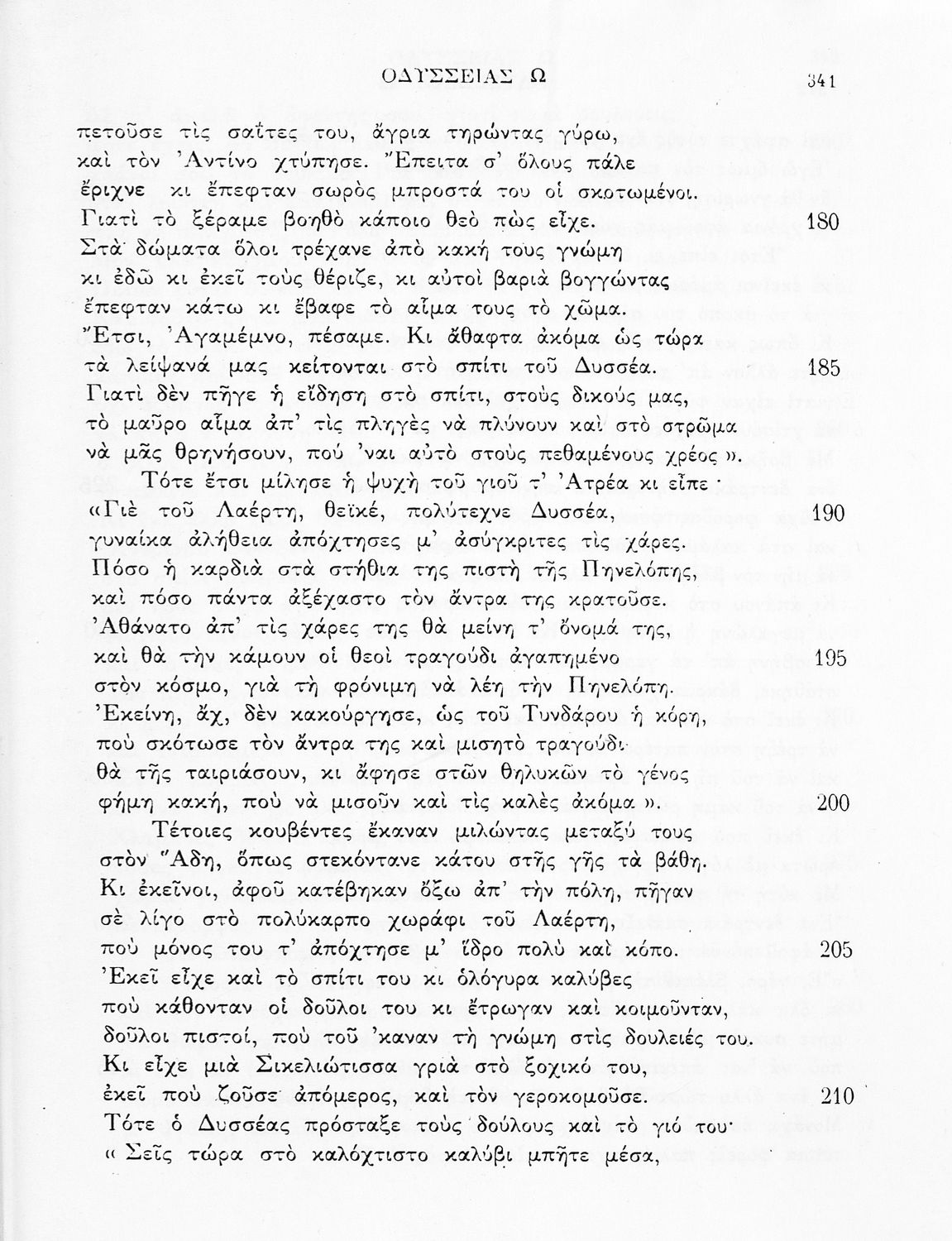 Σχολικό εγχειρίδιο Αρχαίων Ελληνικών. Πρόκειται για "ανάτυπον εμμέτρου μεταφράσεως εκ της σειράς των 227 τόμων ΑΡΧΑΙΩΝ ΕΛΛΗΝΩΝ ΣΥΓΓΡΑΦΕΩΝ ιδιοκτησίας του Εκδοτικού Οίκου Ιωάννου Ν. Ζαχαρόπουλου". Το βιβλίο περιλαμβάνει το έπος της Οδύσσειας σε μετάφραση του Ζήσιμου Σιδέρη. Ακολουθεί ενδεικτικό Λεξιλόγιο.