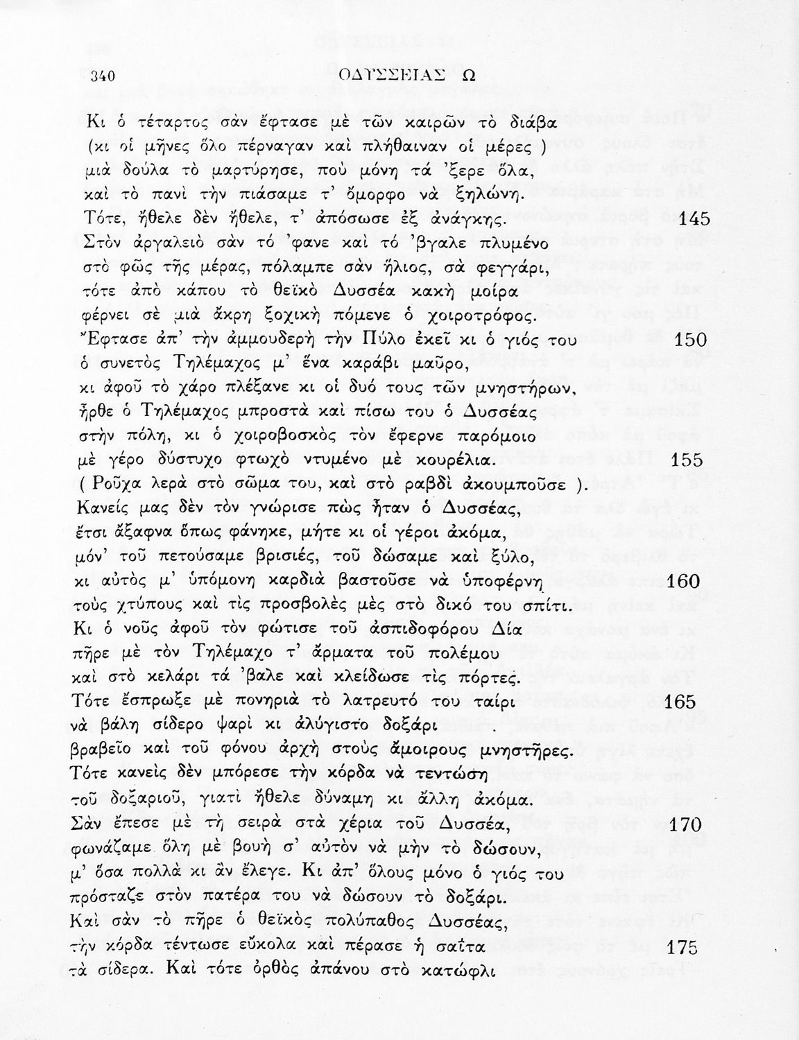 Παιδαγωγικό βοήθημα Αρχαίων Ελληνικών που περιλαμβάνει μετάφραση των ραψωδιών Ν-Ω της Οδύσσειας.