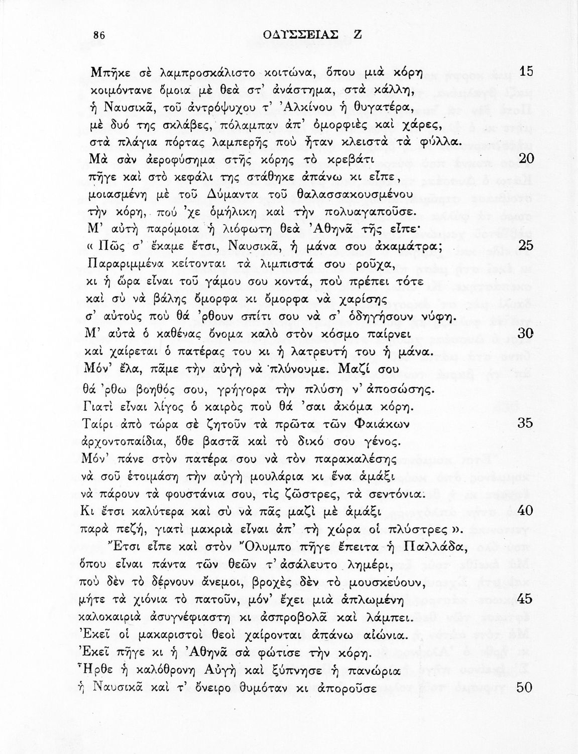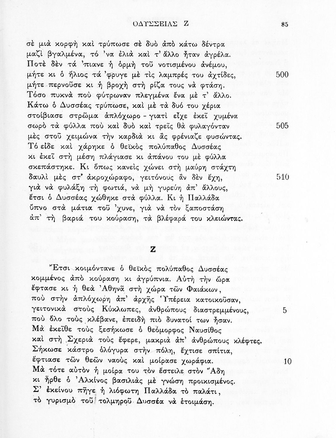 Σχολικό εγχειρίδιο Αρχαίων Ελληνικών. Πρόκειται για "ανάτυπον εμμέτρου μεταφράσεως εκ της σειράς των 227 τόμων ΑΡΧΑΙΩΝ ΕΛΛΗΝΩΝ ΣΥΓΓΡΑΦΕΩΝ ιδιοκτησίας του Εκδοτικού Οίκου Ιωάννου Ν. Ζαχαρόπουλου". Το βιβλίο περιλαμβάνει το έπος της Οδύσσειας σε μετάφραση του Ζήσιμου Σιδέρη. Ακολουθεί ενδεικτικό Λεξιλόγιο.