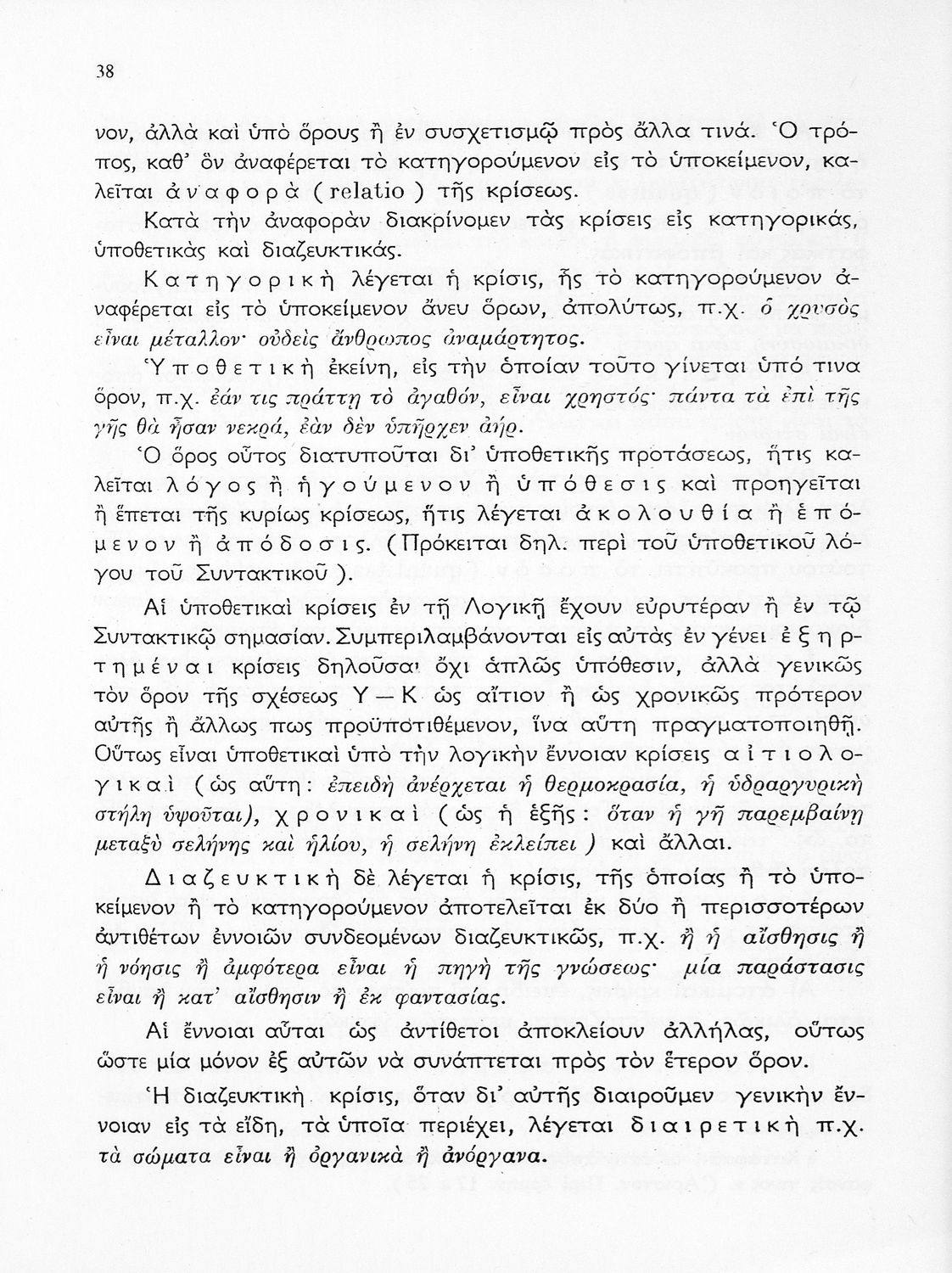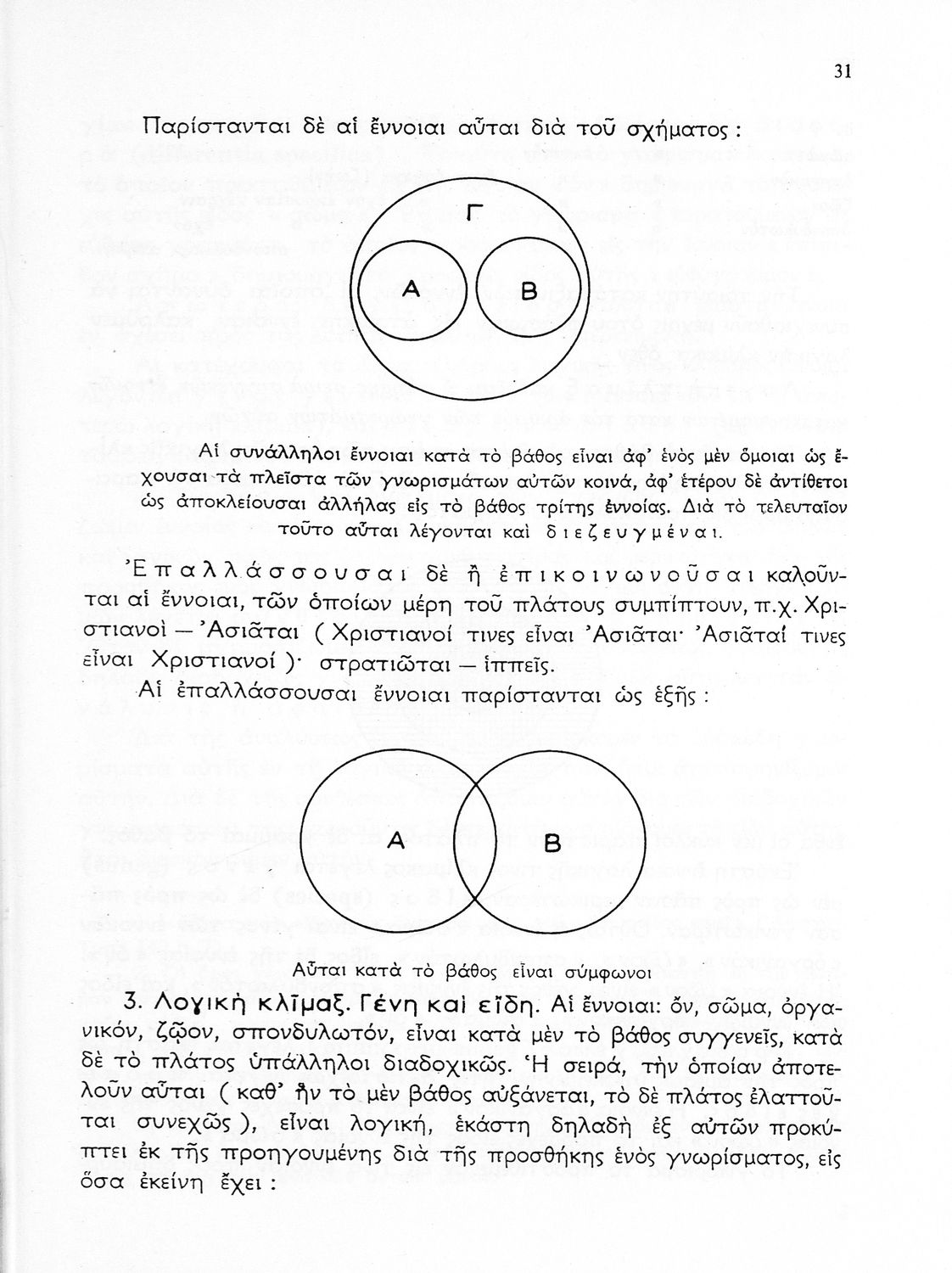 Σχολικό εγχειρίδιο Λογικής ΣΤ΄ Γυμνασίου που είναι δομημένο θεματικά και περιλαμβάνει ζητήματα τυπικής λογικής, μεθοδολογίας και γνωσιολογίας. Περιέχει παράρτημα με ασκήσεις λογικής. Φέρει το σύμβολο της δικτατορίας.