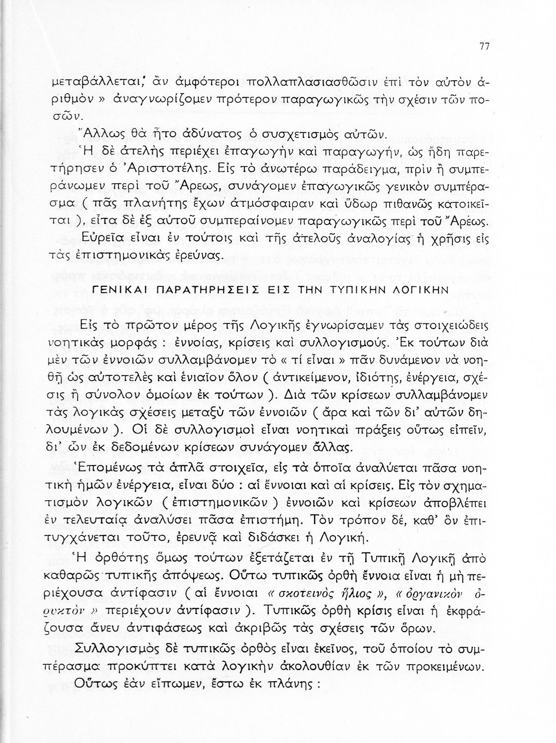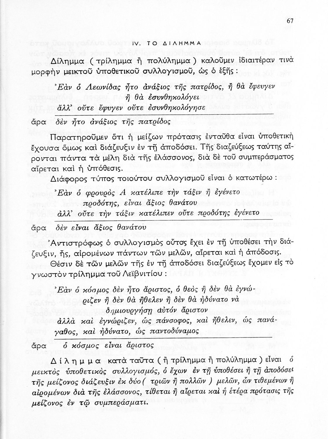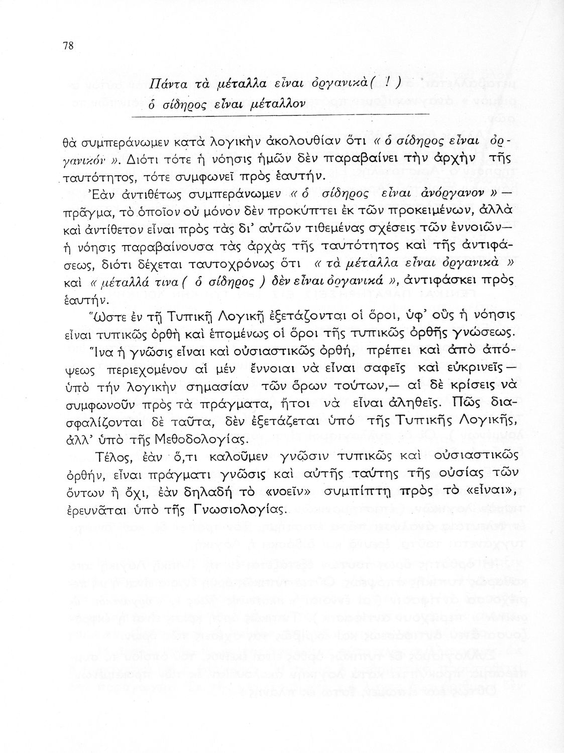 Σχολικό εγχειρίδιο Λογικής ΣΤ΄ Γυμνασίου που είναι δομημένο θεματικά και περιλαμβάνει ζητήματα τυπικής λογικής, μεθοδολογίας και γνωσιολογίας. Περιέχει παράρτημα με ασκήσεις λογικής. Φέρει το σύμβολο της δικτατορίας.