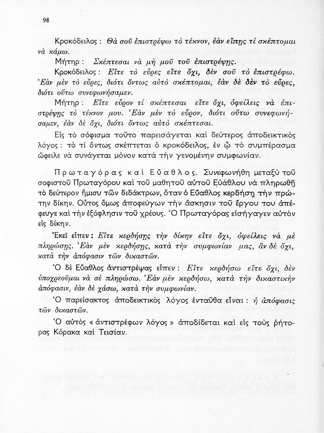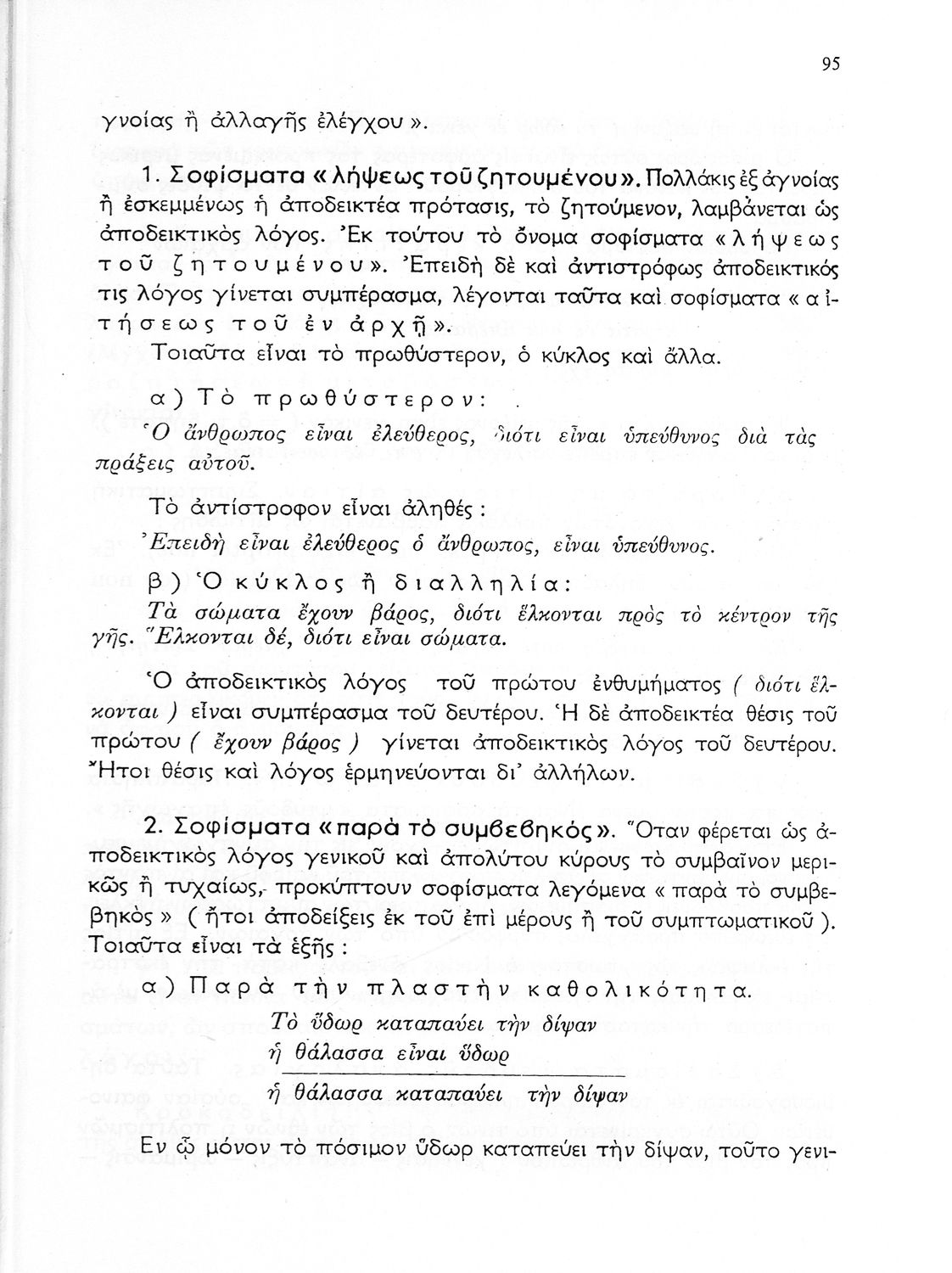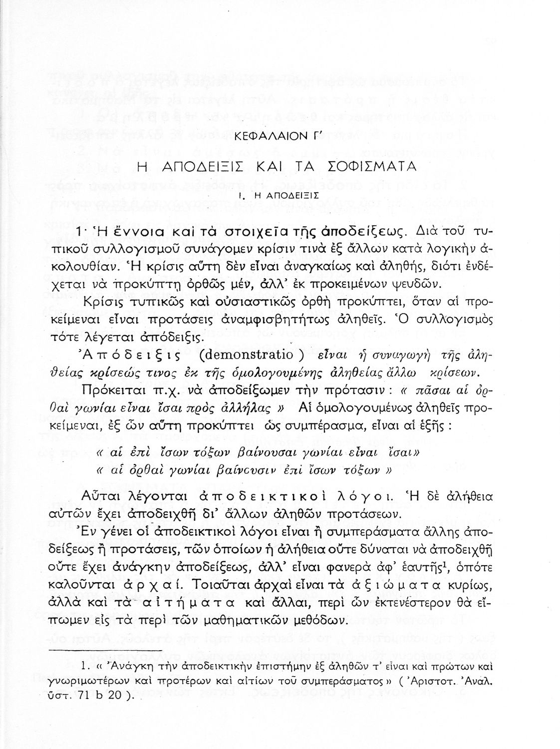 Σχολικό εγχειρίδιο Λογικής ΣΤ΄ Γυμνασίου που είναι δομημένο θεματικά και περιλαμβάνει ζητήματα τυπικής λογικής, μεθοδολογίας και γνωσιολογίας. Περιέχει παράρτημα με ασκήσεις λογικής. Φέρει το σύμβολο της δικτατορίας.