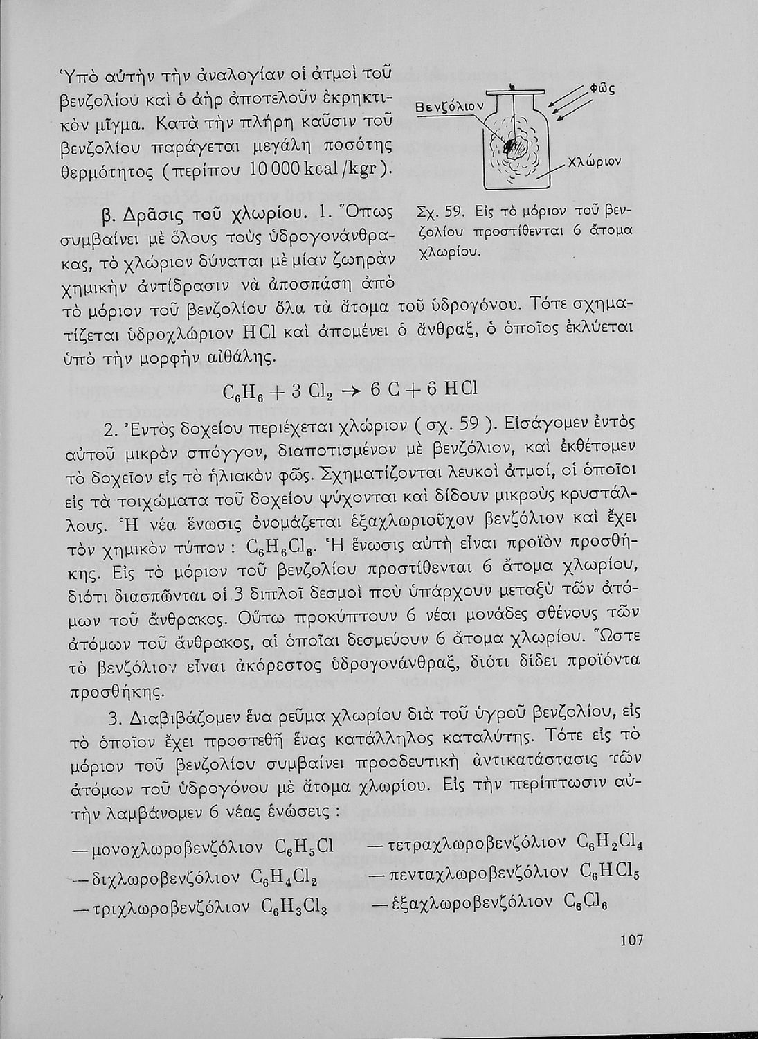 Σχολικό εγχειρίδιο Χημείας Γ΄ Γυμνασίου που περιέχει εισαγωγή στην οργανική και ανόργανη χημεία και εστιάζει στους υδρογονάνθρακες, τα σάκχαρα, τα λιπαρά σώματα, τα μέταλλα και τον άνθρακα. Φέρει το σύμβολο της δικτατορίας.