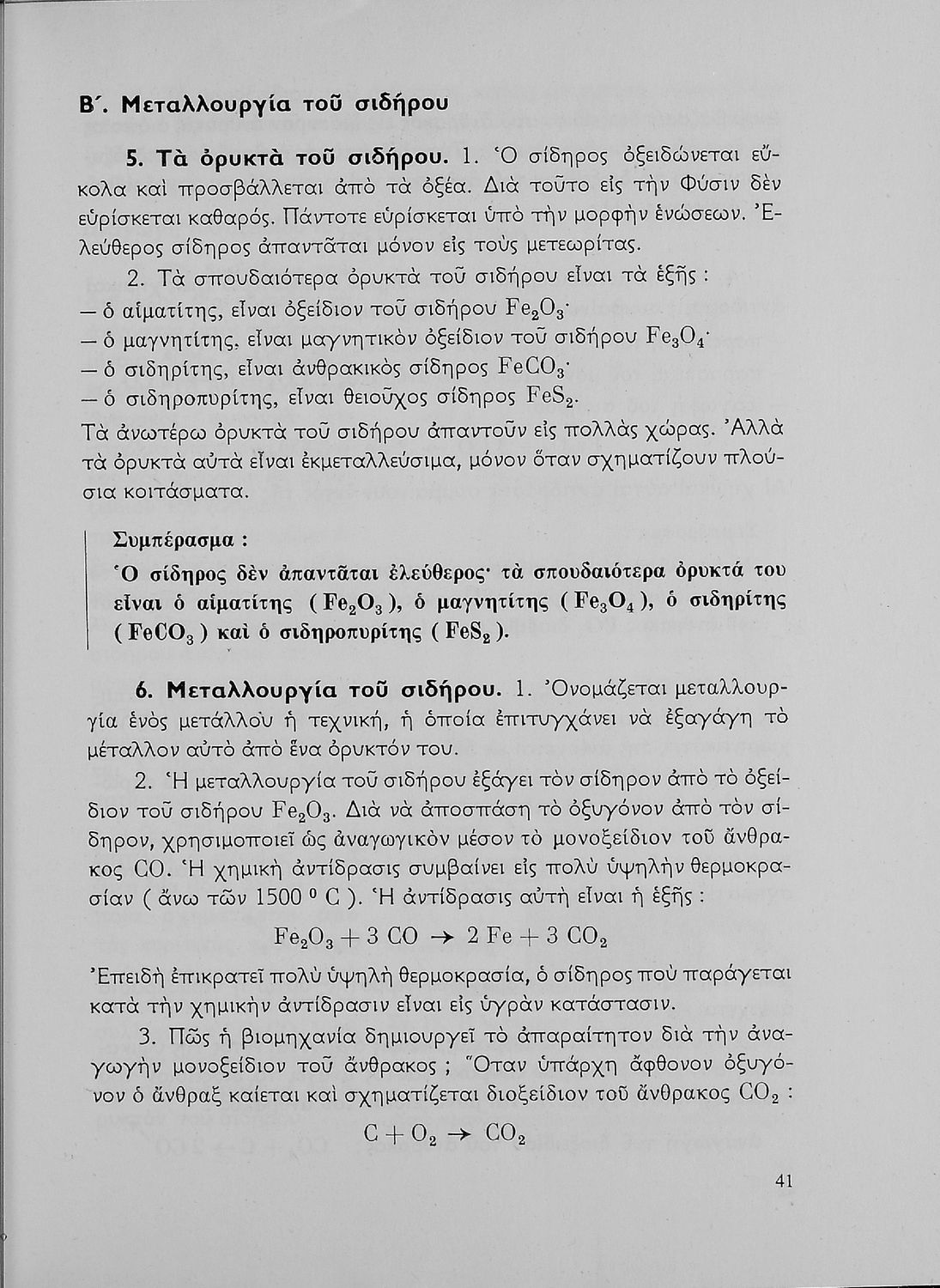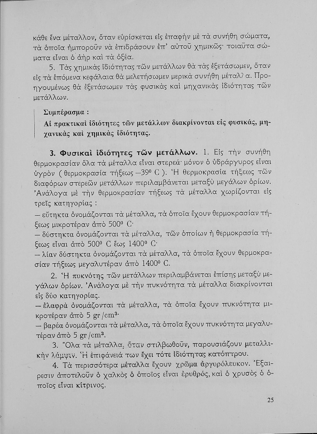 Σχολικό εγχειρίδιο Χημείας Γ΄ Γυμνασίου που περιέχει εισαγωγή στην οργανική και ανόργανη χημεία και εστιάζει στους υδρογονάνθρακες, τα σάκχαρα, τα λιπαρά σώματα, τα μέταλλα και τον άνθρακα. Φέρει το σύμβολο της δικτατορίας.