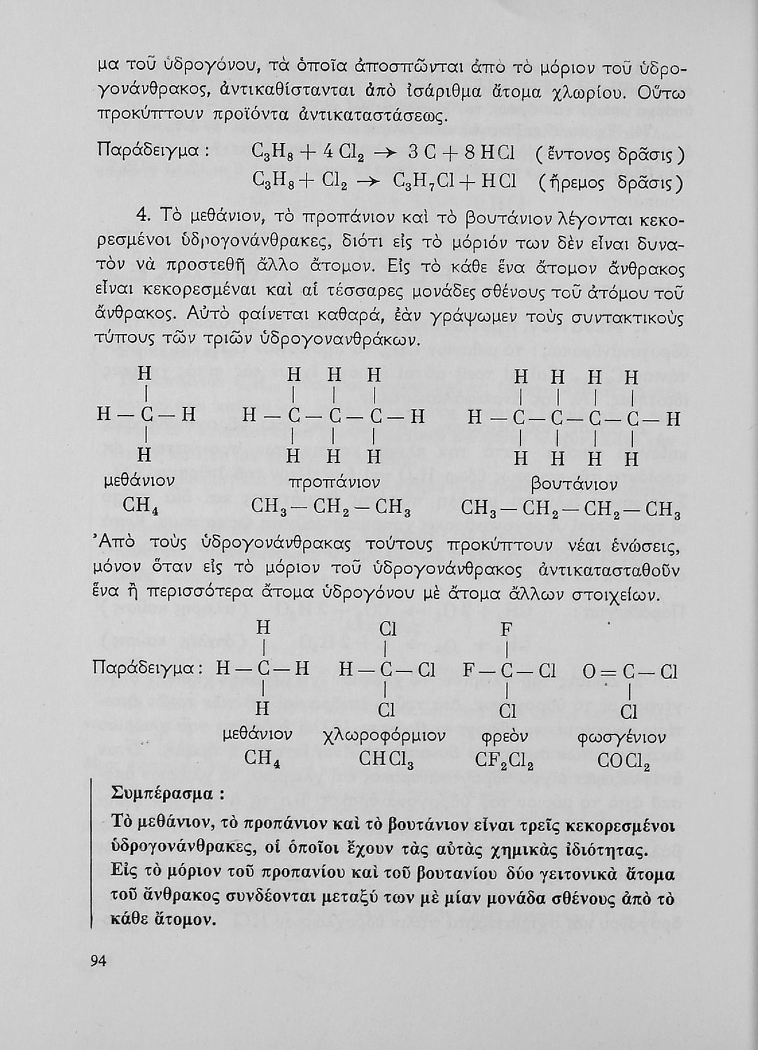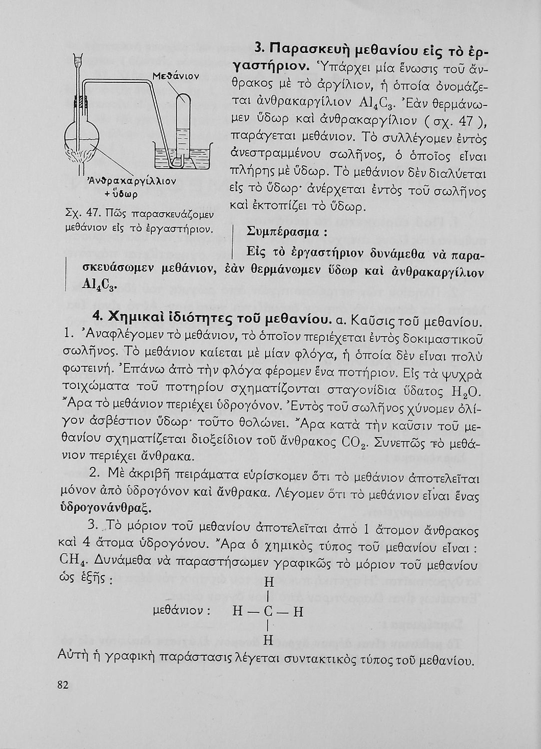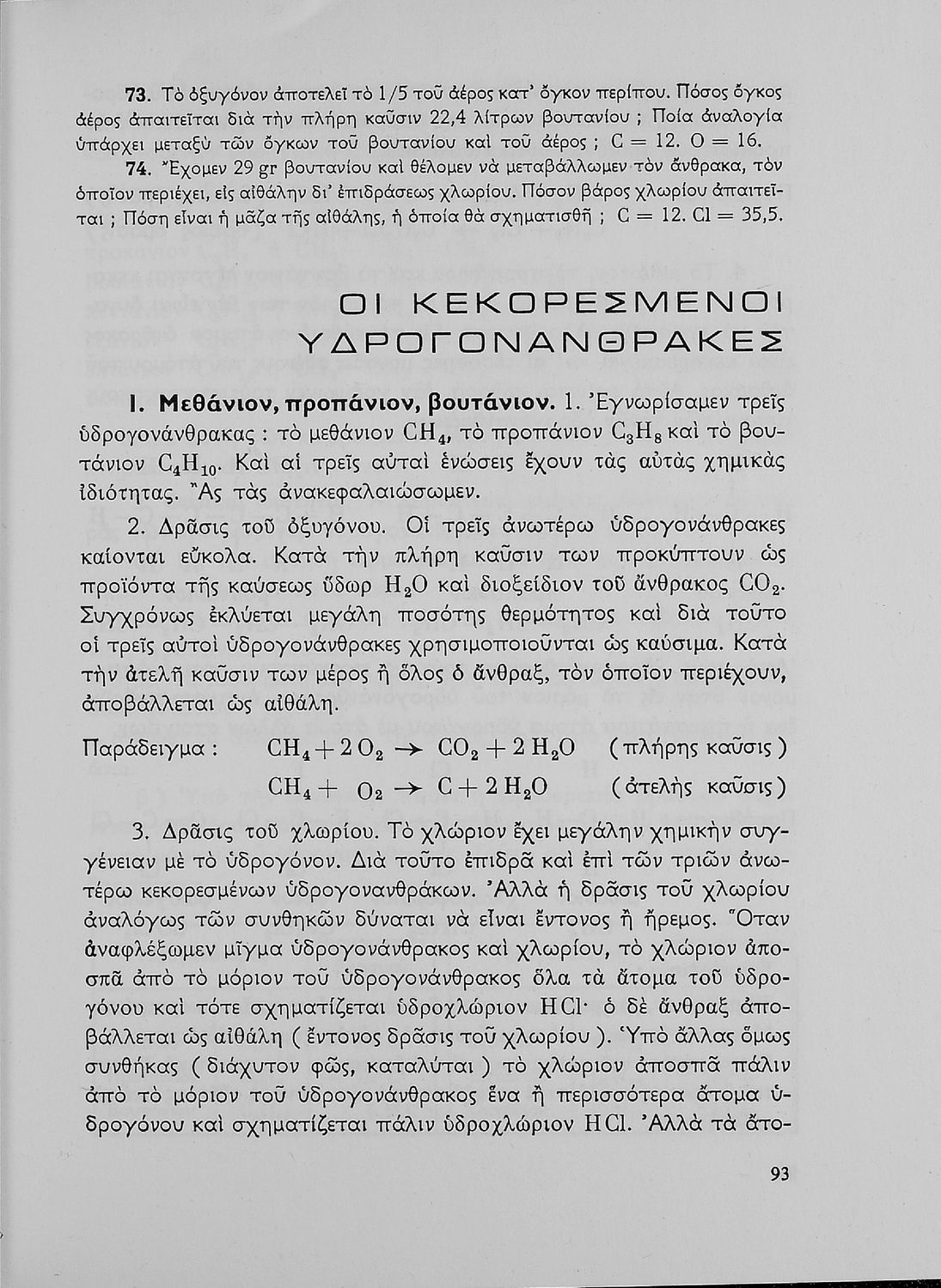 Σχολικό εγχειρίδιο Χημείας Γ΄ Γυμνασίου που περιέχει εισαγωγή στην οργανική και ανόργανη χημεία και εστιάζει στους υδρογονάνθρακες, τα σάκχαρα, τα λιπαρά σώματα, τα μέταλλα και τον άνθρακα. Φέρει το σύμβολο της δικτατορίας.