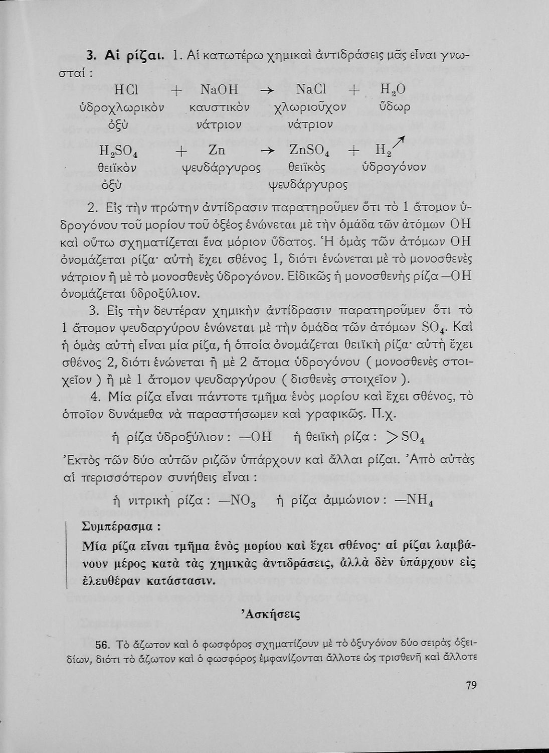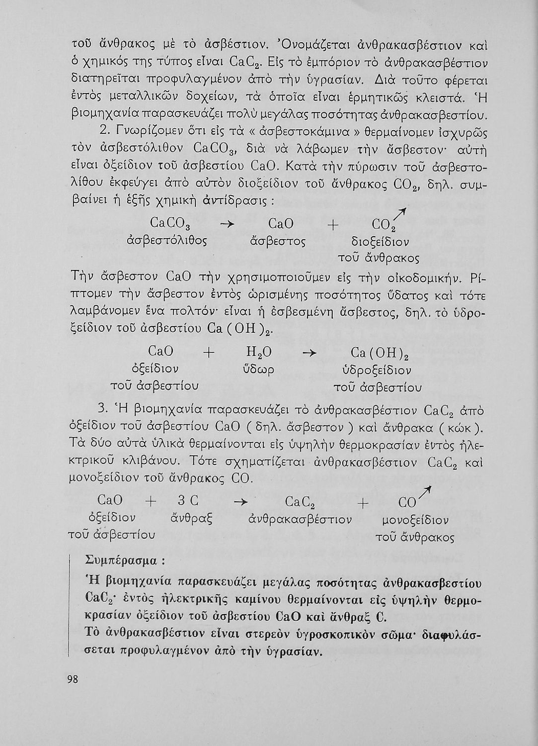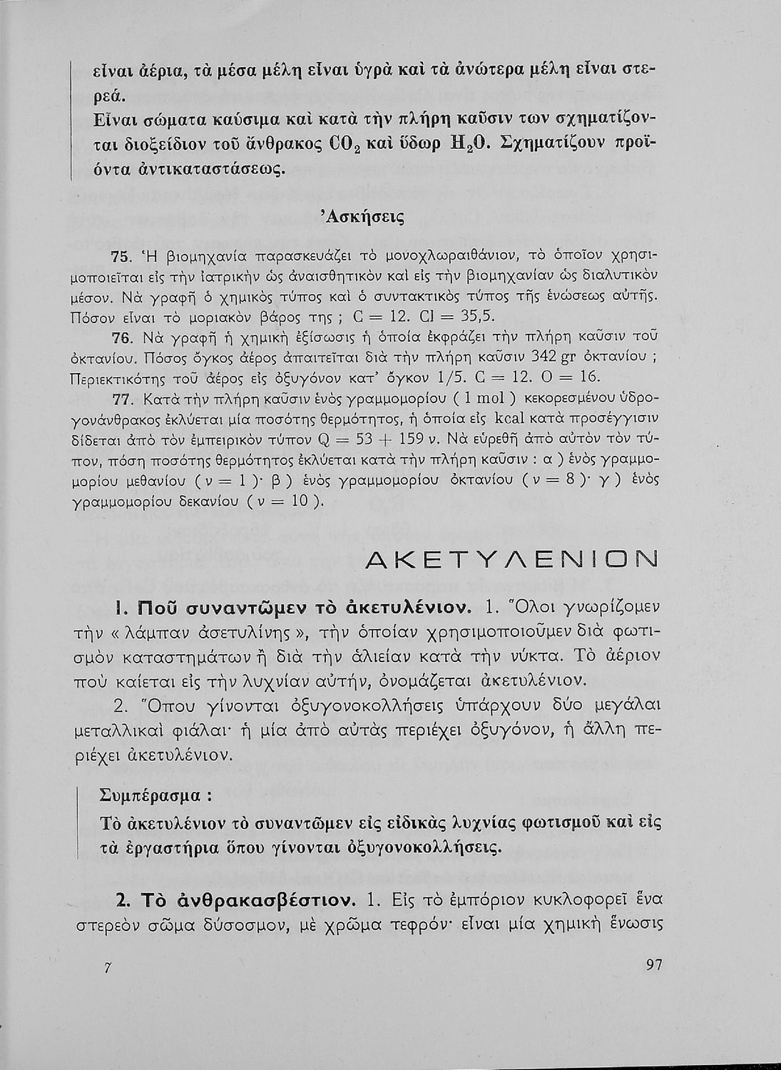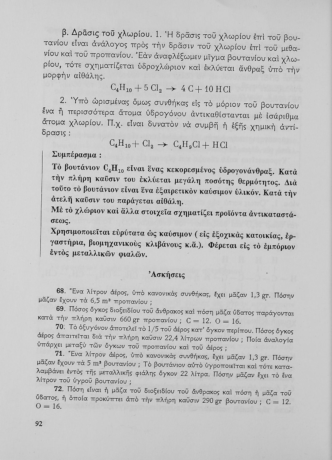 Σχολικό εγχειρίδιο Χημείας Γ΄ Γυμνασίου που περιέχει εισαγωγή στην οργανική και ανόργανη χημεία και εστιάζει στους υδρογονάνθρακες, τα σάκχαρα, τα λιπαρά σώματα, τα μέταλλα και τον άνθρακα. Φέρει το σύμβολο της δικτατορίας.