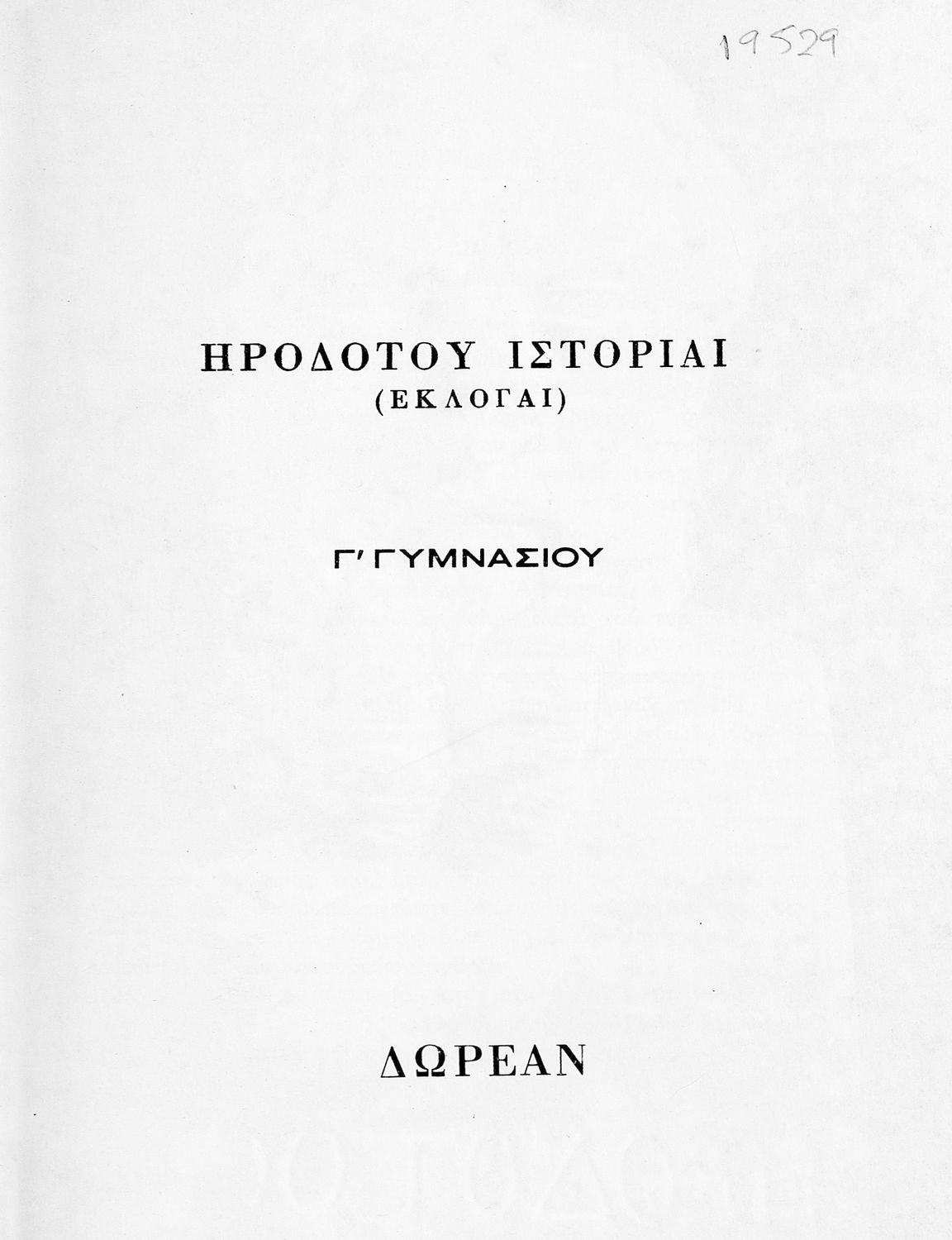 Σχολικό εγχειρίδιο Αρχαίων Ελληνικών Γ΄ Γυμνασίου που περιλαμβάνει εισαγωγή στη ζωή και το έργο του Ηρόδοτου, αποσπάσματα από την Ιστορία του, ερμηνευτικές σημειώσεις και τοπογραφικούς πίνακες με εικόνες και χάρτες.
