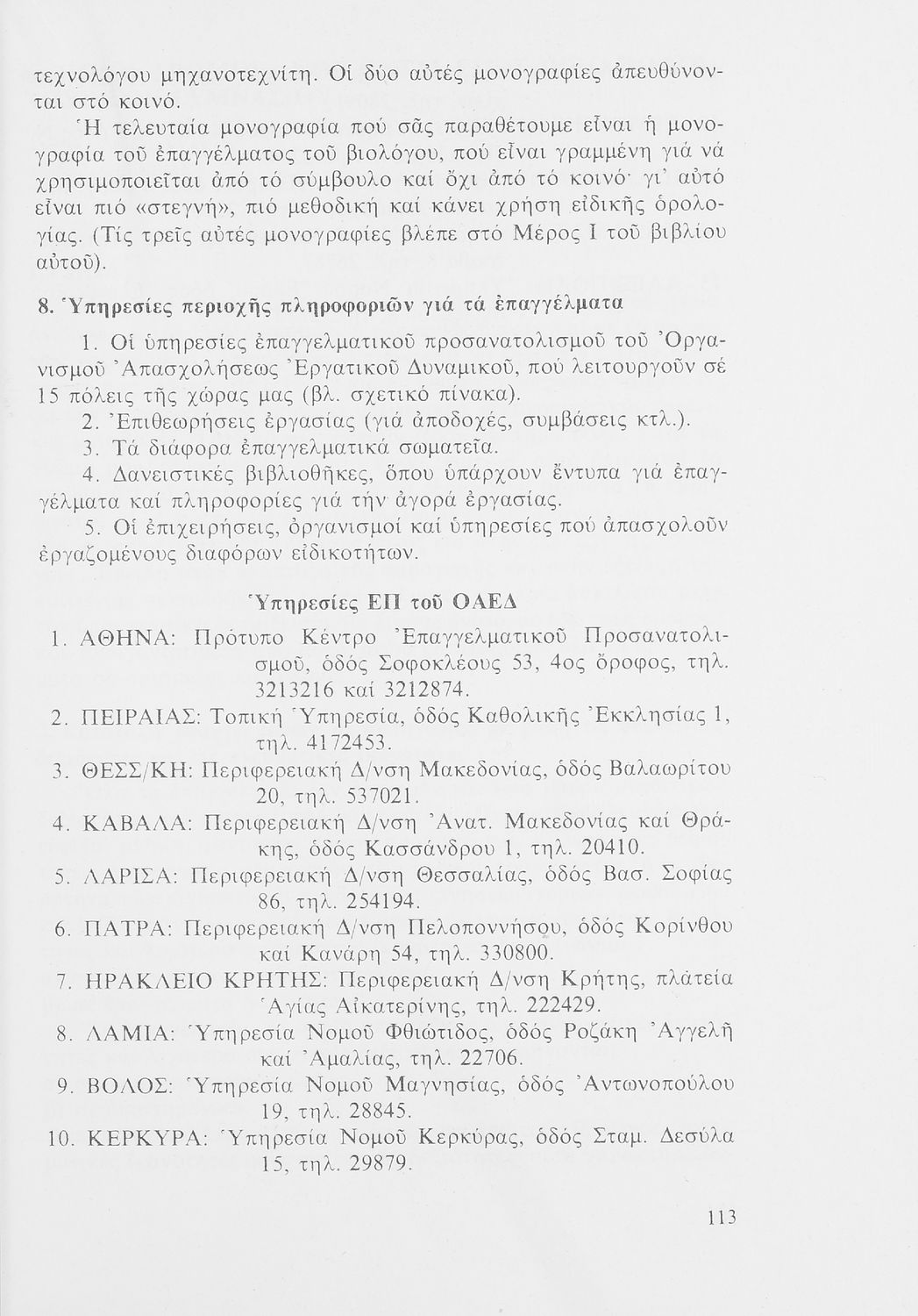 Σχολικό εγχειρίδιο Επαγγελματικού Προσανατολισμού για τις Β΄ και Γ΄ Γυμνασίου που περιέχει γενικές αρχές επαγγελματικής σταδιοδρομίας και συγκεκριμένες πληροφορίες για την επιστημονική εξέλιξη και ...