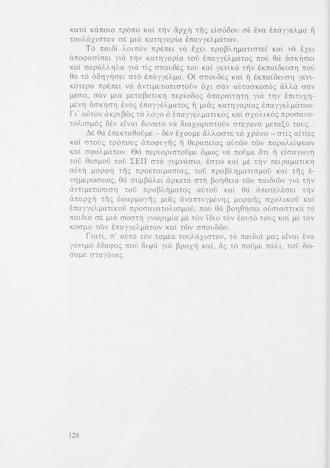 Τόμος που περιλαμβάνει τα πρακτικά και τις συζητήσεις τριών ειδικών σεμιναρίων που οργανώθηκαν από το ΚΕΜΕ και τον ΟΑΕΔ για να προωθήσουν την εισαγωγή του Σχολικού Προσανατολισμού στην εκπαίδευση.