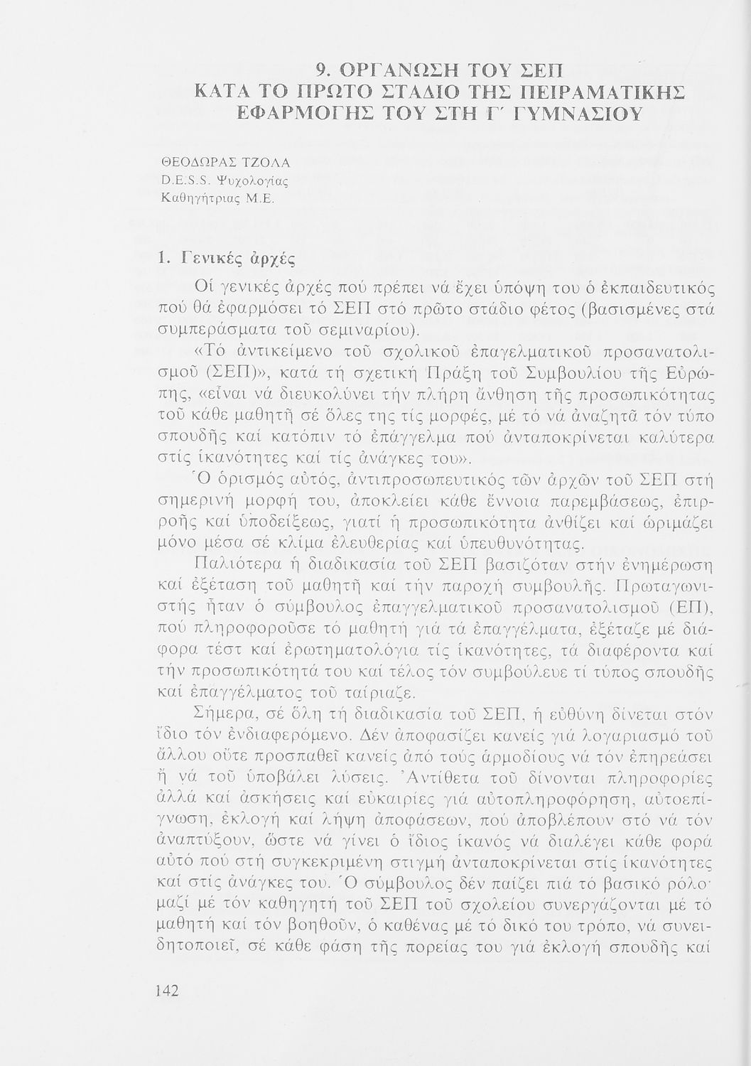 Τίτλος: Ο σχολικός επαγγελματικός προσανατολισμός στο γυμνάσιο