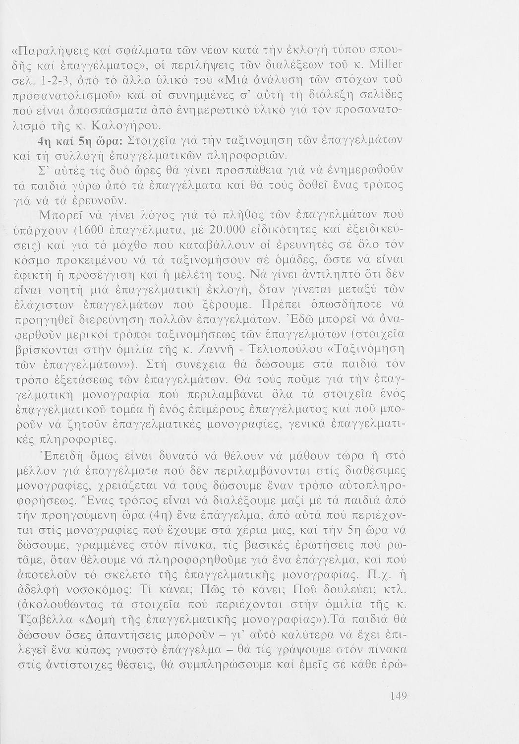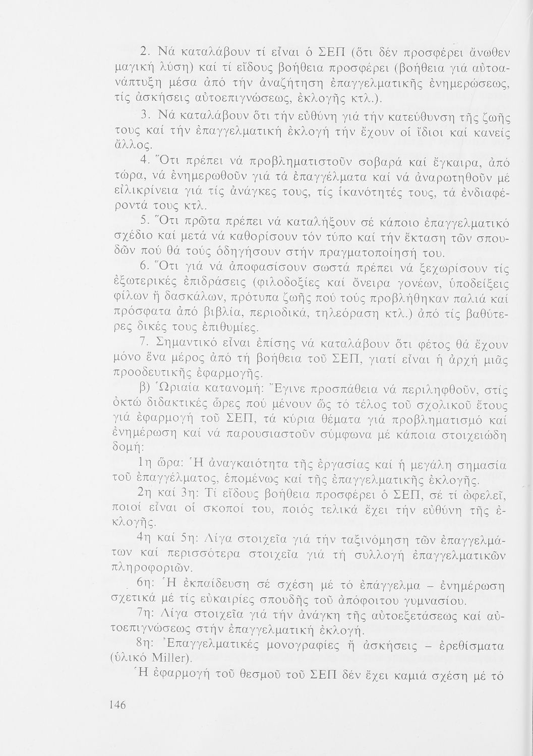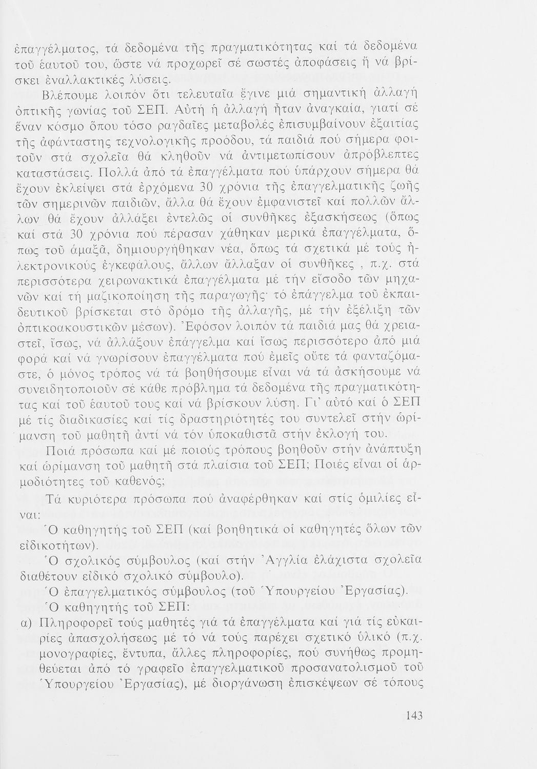 Σχολικό εγχειρίδιο Επαγγελματικού Προσανατολισμού για τις Β΄ και Γ΄ Γυμνασίου που περιέχει γενικές αρχές επαγγελματικής σταδιοδρομίας και συγκεκριμένες πληροφορίες για την επιστημονική εξέλιξη και ...