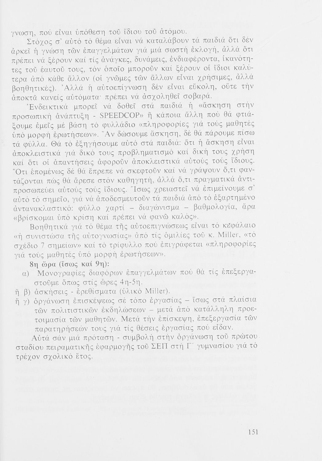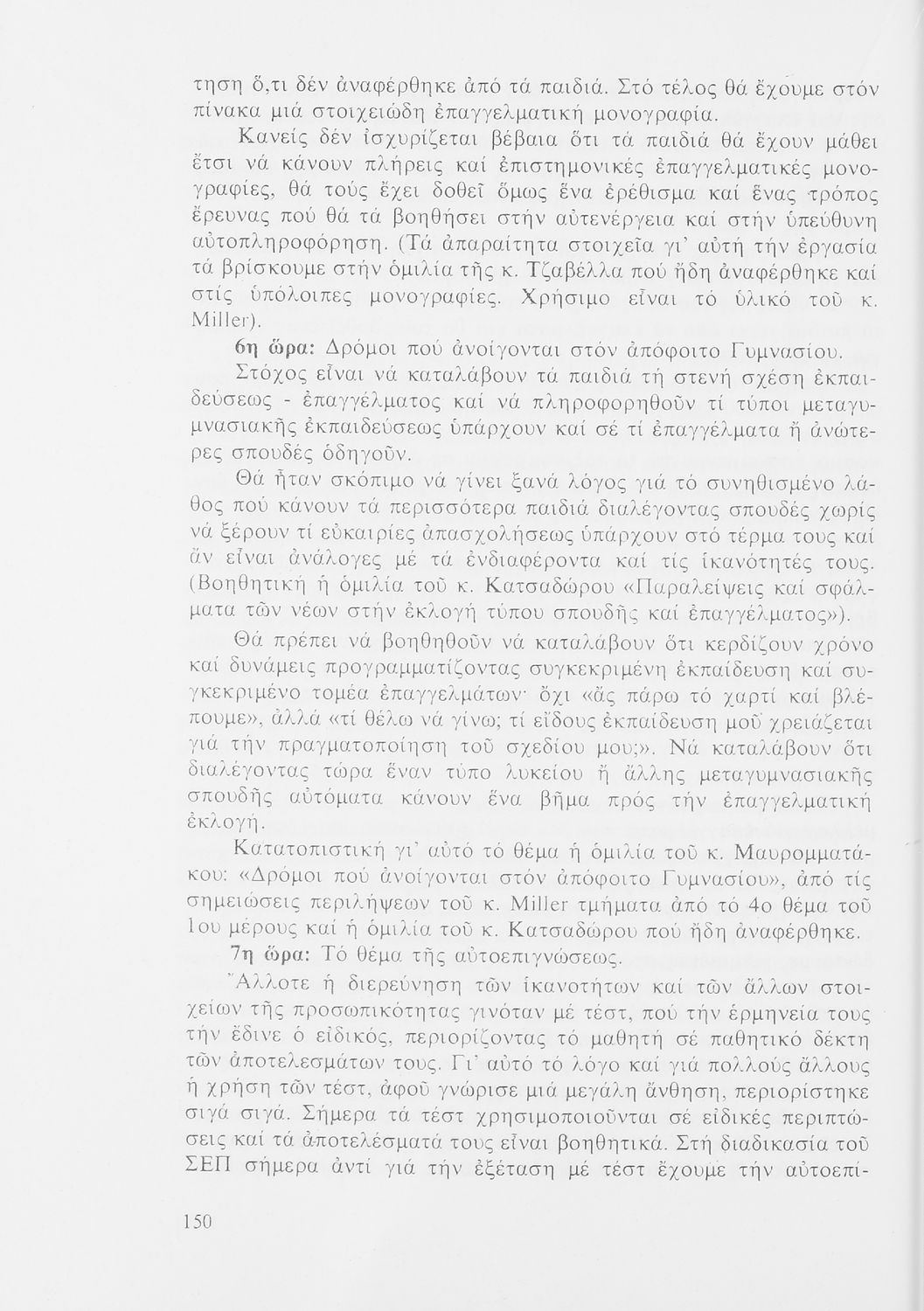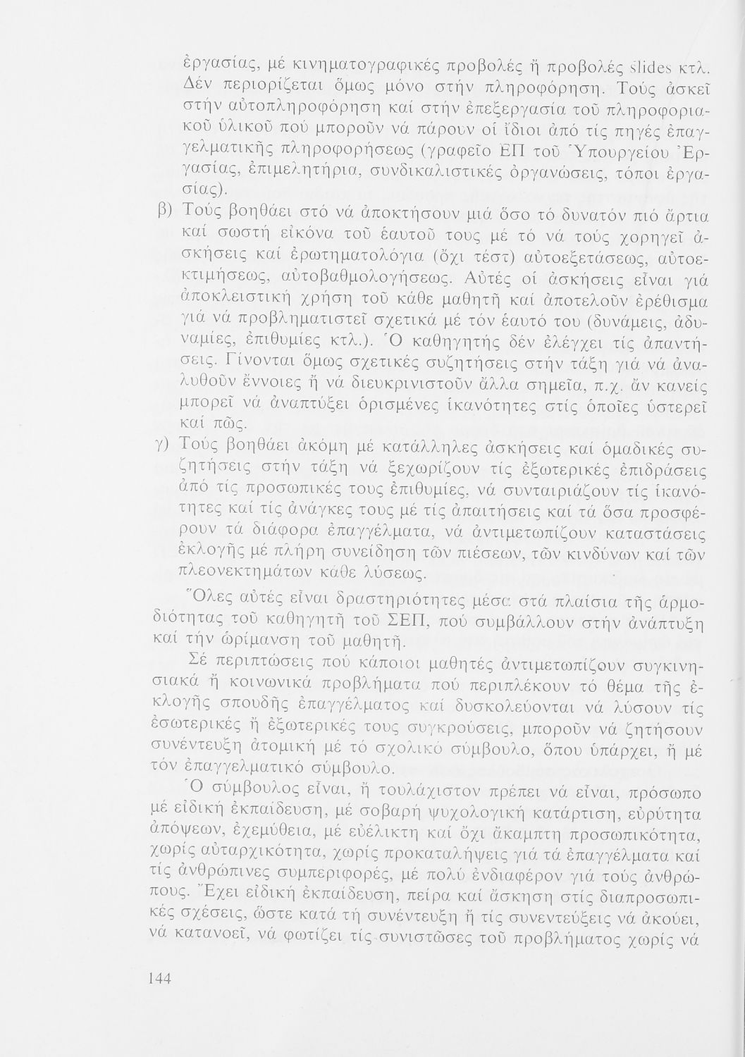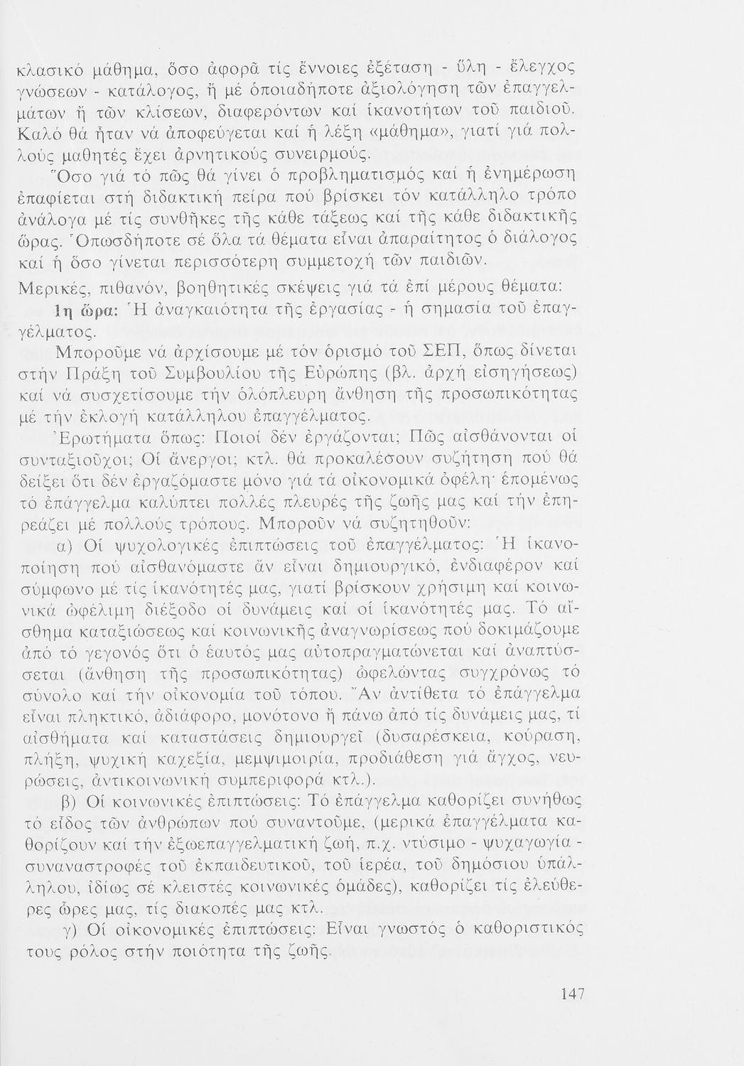 Σχολικό εγχειρίδιο Επαγγελματικού Προσανατολισμού για τις Β΄ και Γ΄ Γυμνασίου που περιέχει γενικές αρχές επαγγελματικής σταδιοδρομίας και συγκεκριμένες πληροφορίες για την επιστημονική εξέλιξη και ...