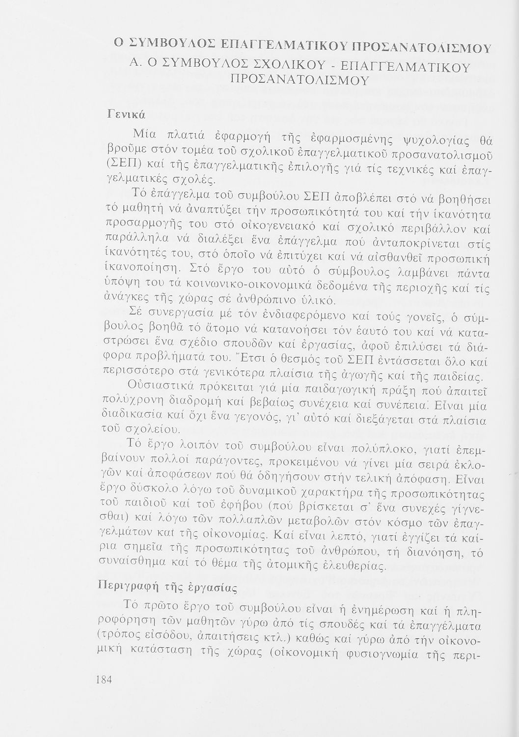 Τόμος που περιλαμβάνει τα πρακτικά και τις συζητήσεις τριών ειδικών σεμιναρίων που οργανώθηκαν από το ΚΕΜΕ και τον ΟΑΕΔ για να προωθήσουν την εισαγωγή του Σχολικού Προσανατολισμού στην εκπαίδευση.