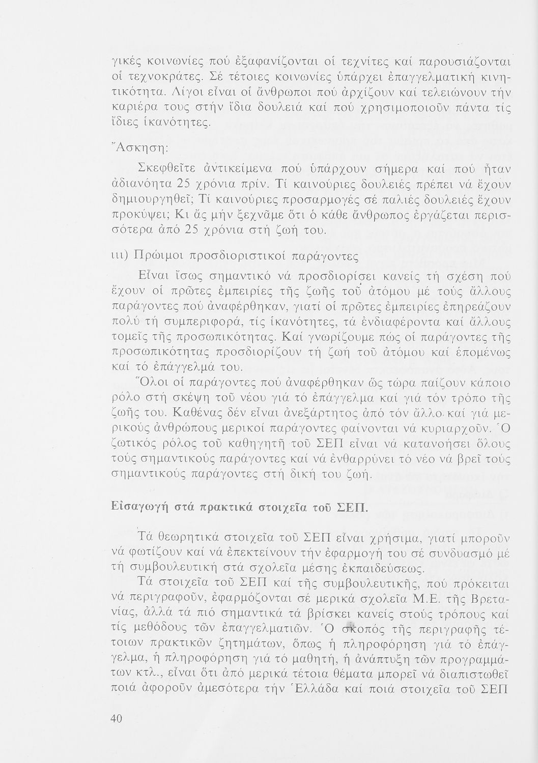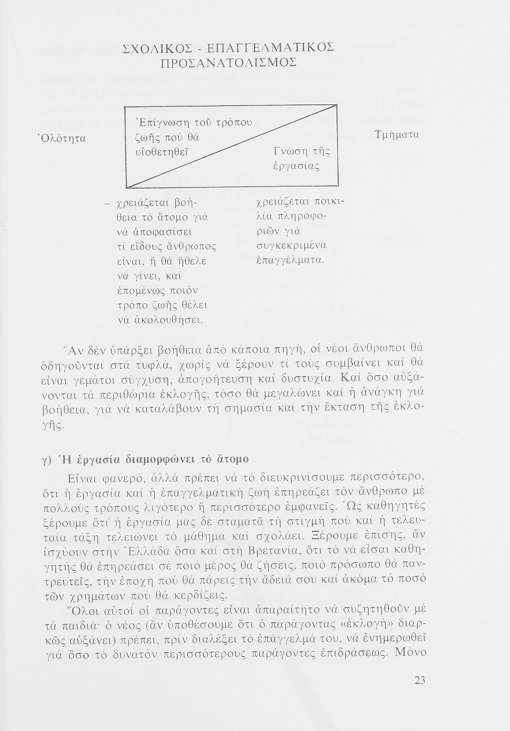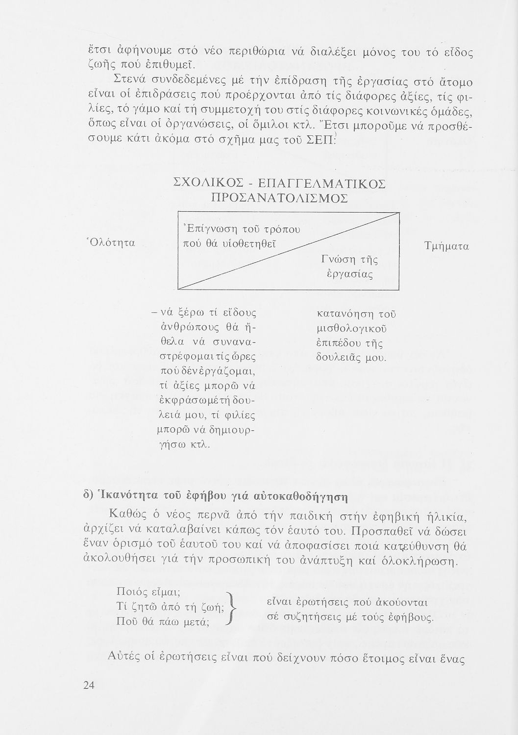 Τόμος που περιλαμβάνει τα πρακτικά και τις συζητήσεις τριών ειδικών σεμιναρίων που οργανώθηκαν από το ΚΕΜΕ και τον ΟΑΕΔ για να προωθήσουν την εισαγωγή του Σχολικού Προσανατολισμού στην εκπαίδευση.