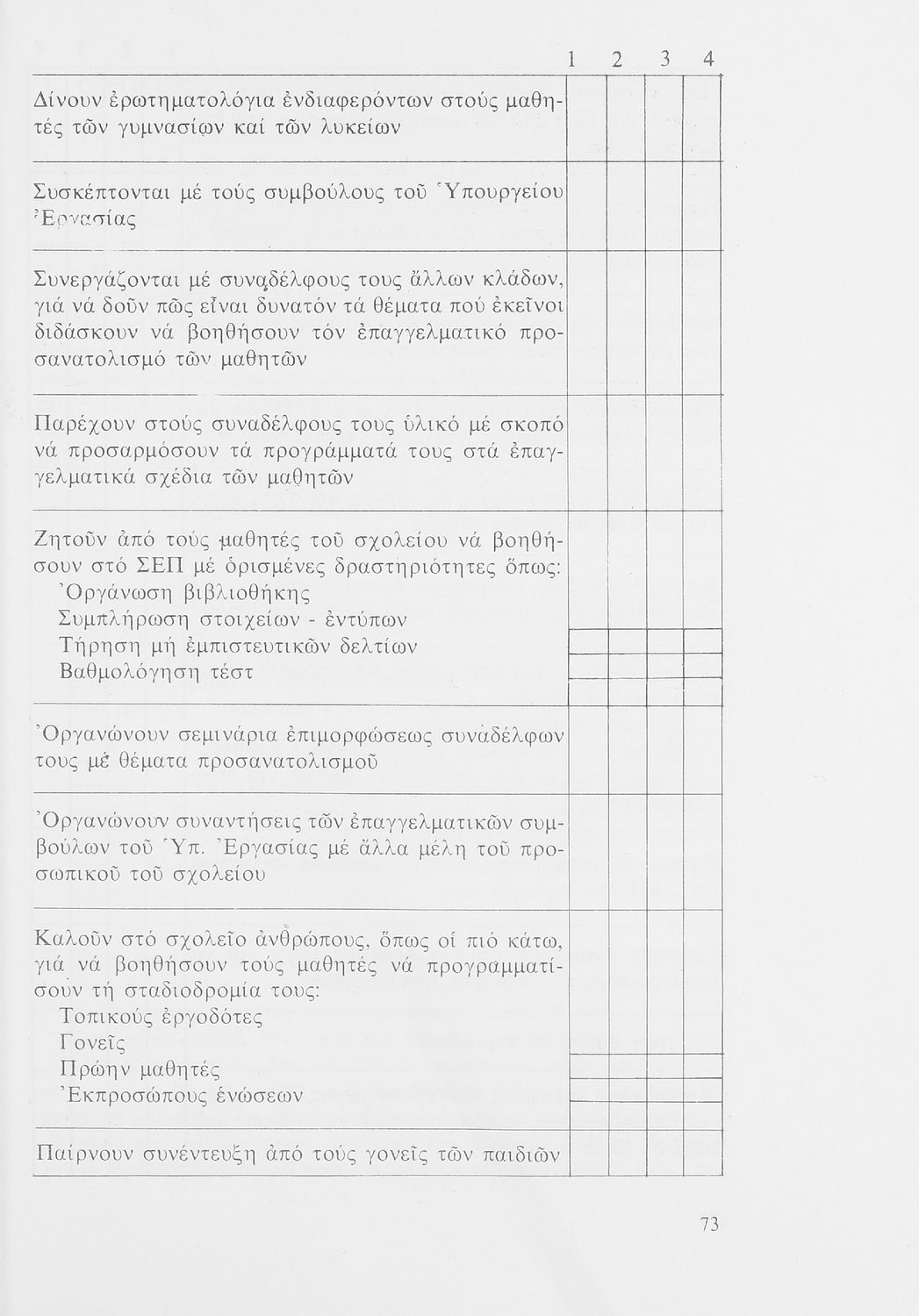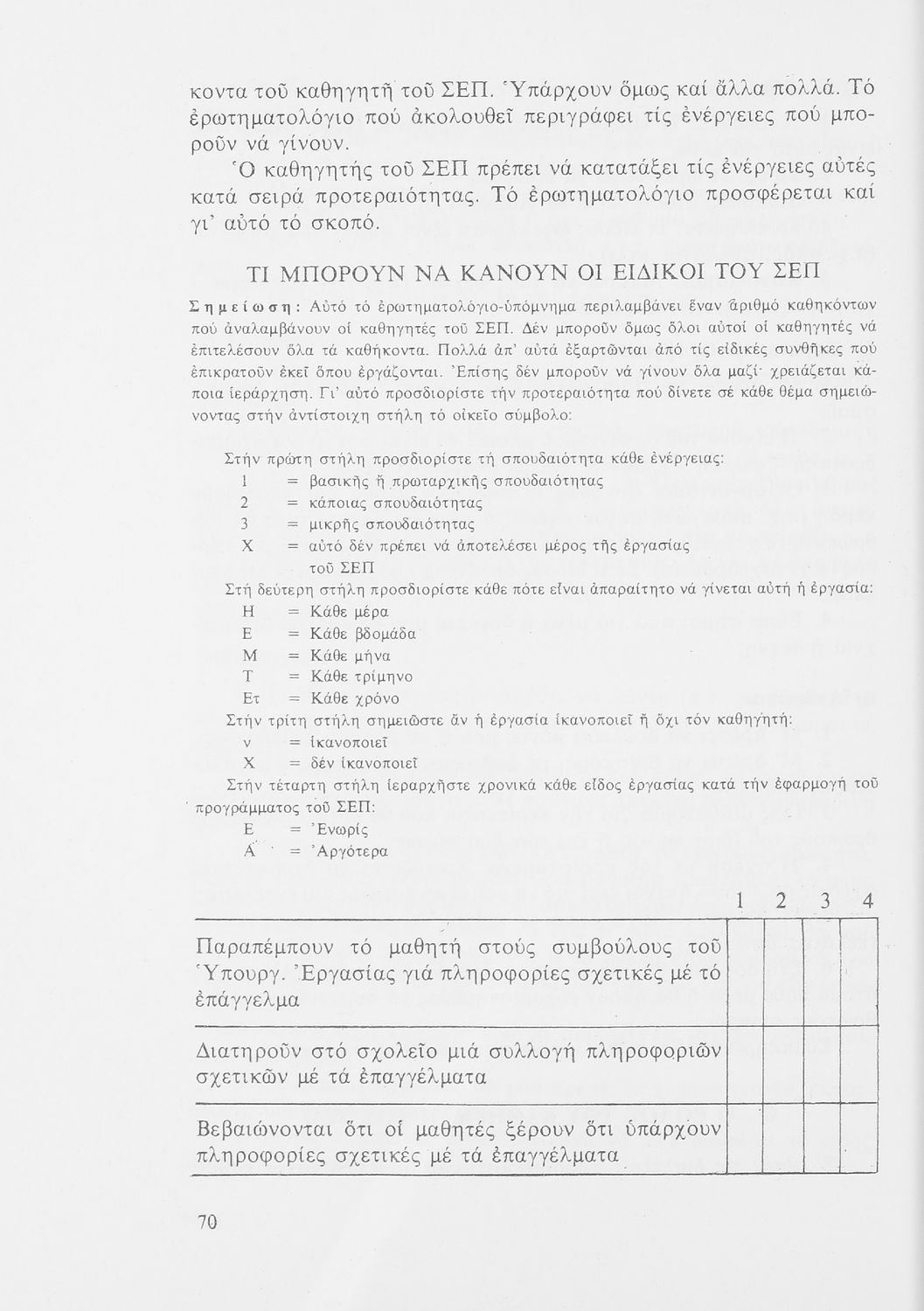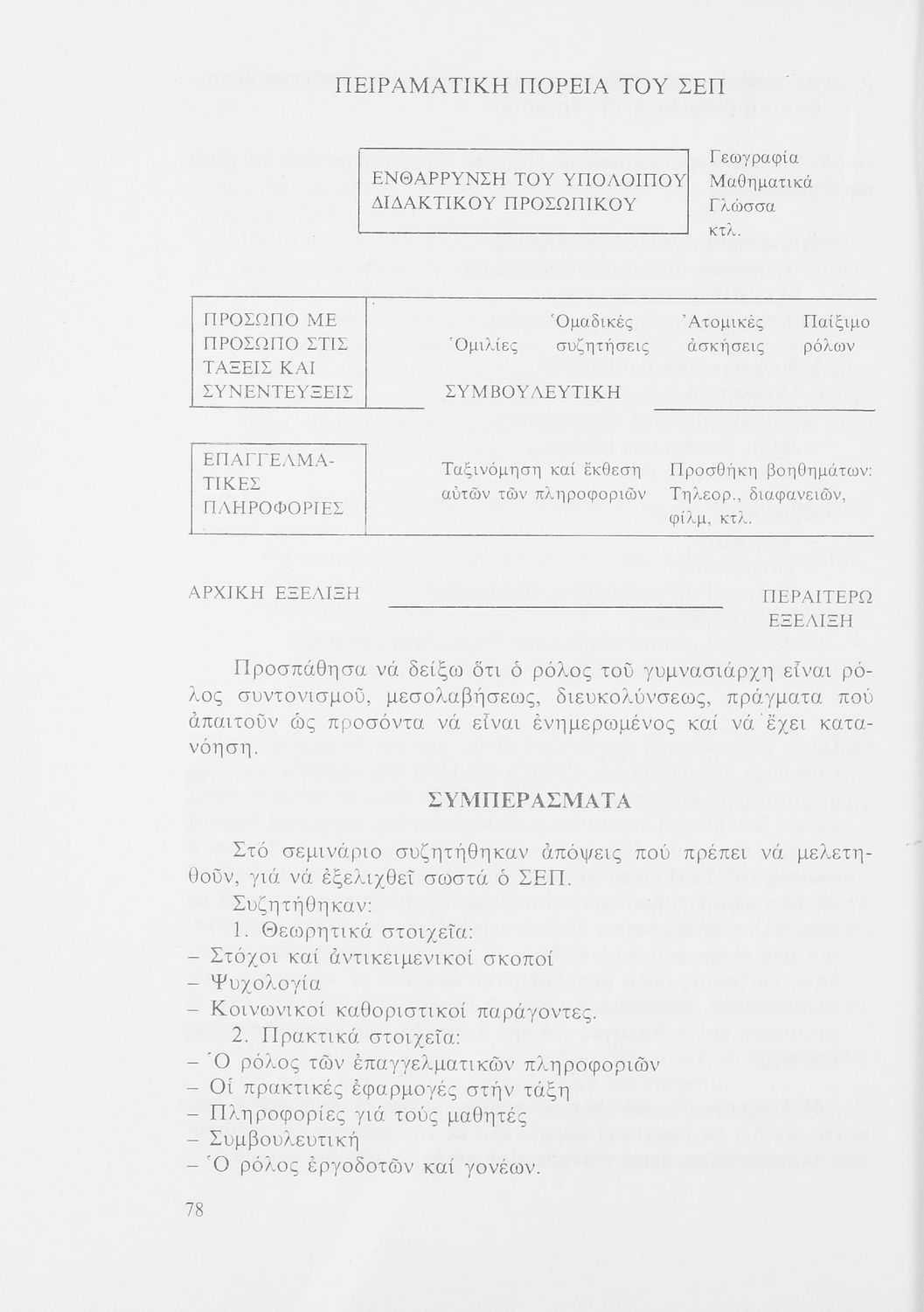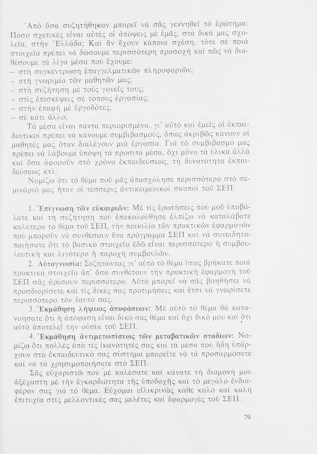 Τόμος που περιλαμβάνει τα πρακτικά και τις συζητήσεις τριών ειδικών σεμιναρίων που οργανώθηκαν από το ΚΕΜΕ και τον ΟΑΕΔ για να προωθήσουν την εισαγωγή του Σχολικού Προσανατολισμού στην εκπαίδευση.
