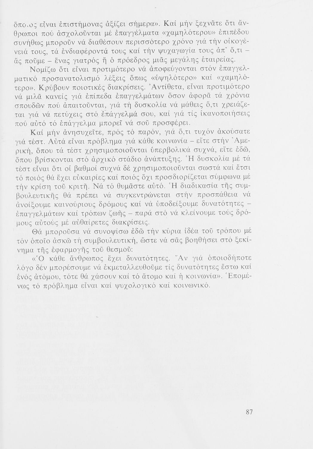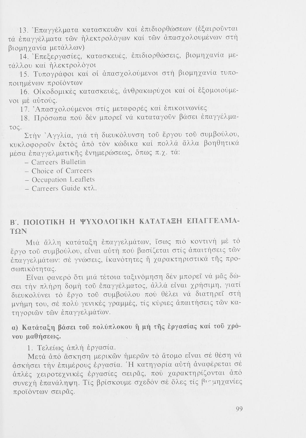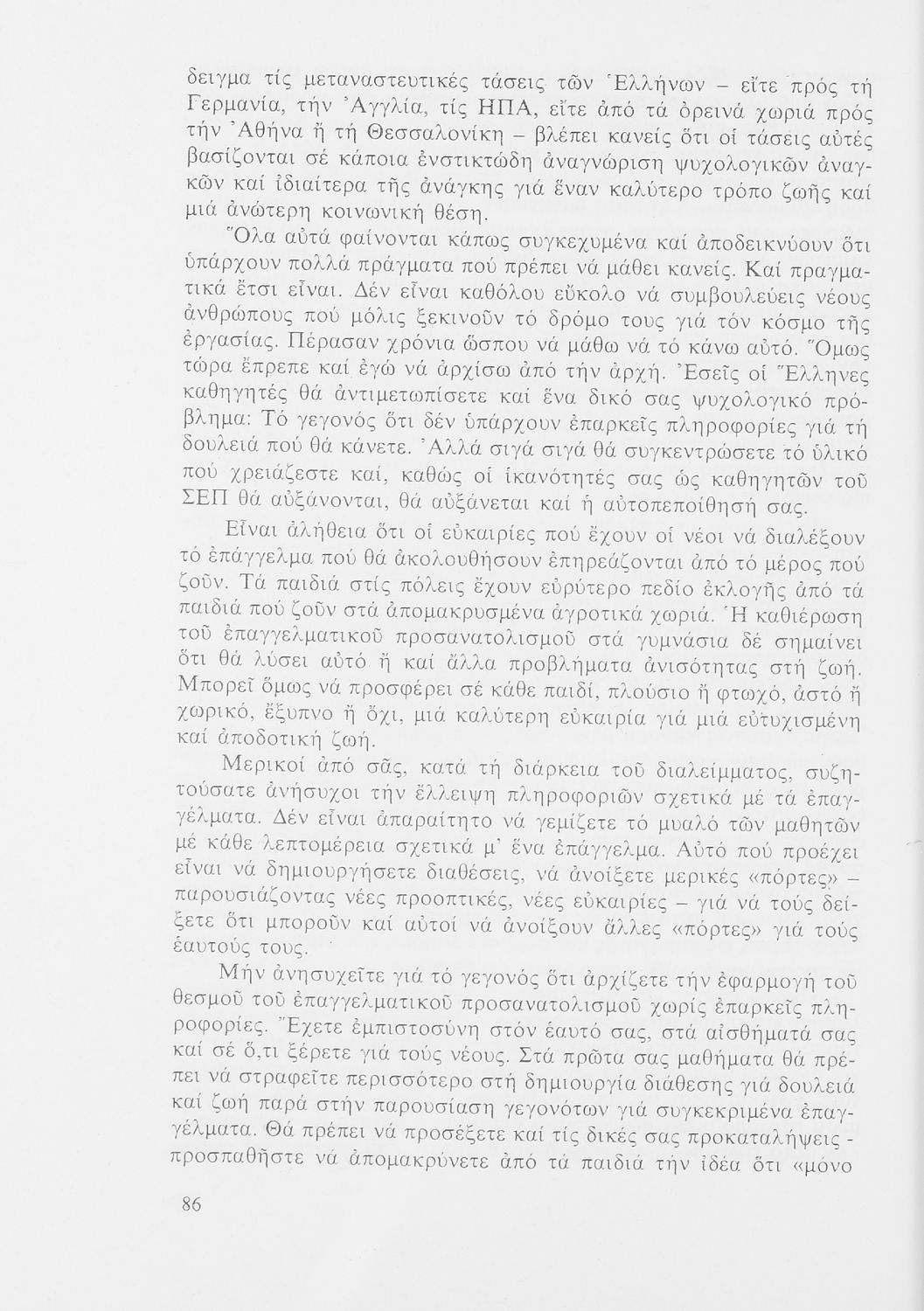 Σχολικό εγχειρίδιο Επαγγελματικού Προσανατολισμού για τις Β΄ και Γ΄ Γυμνασίου που περιέχει γενικές αρχές επαγγελματικής σταδιοδρομίας και συγκεκριμένες πληροφορίες για την επιστημονική εξέλιξη και ...