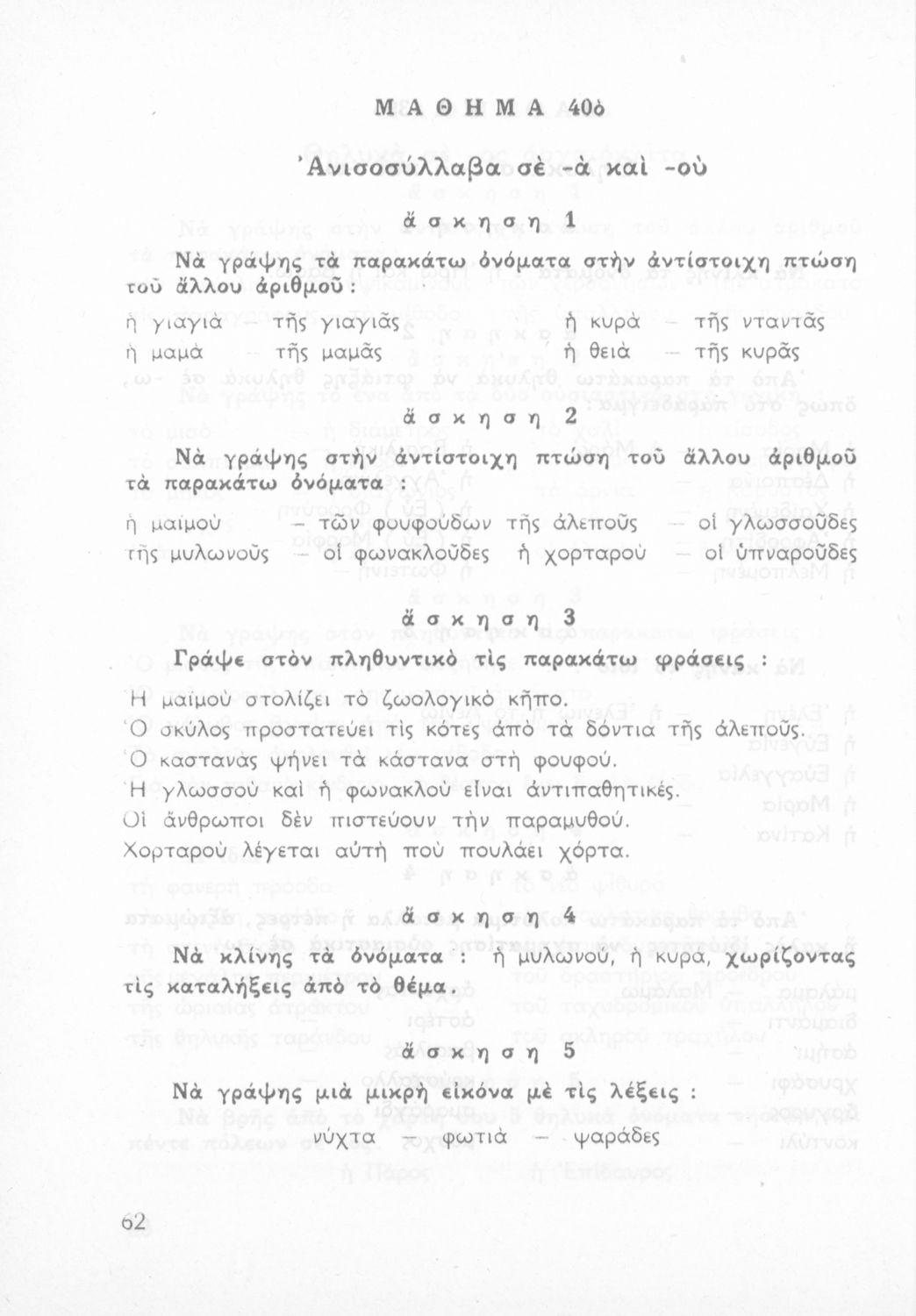 Σχολικό εγχειρίδιο Γλώσσας για τις Ε΄ και ΣΤ΄ Δημοτικού που περιλαμβάνει με κείμενα και ασκήσεις για τη διδασκαλία των γραμματικών φαινομένων.