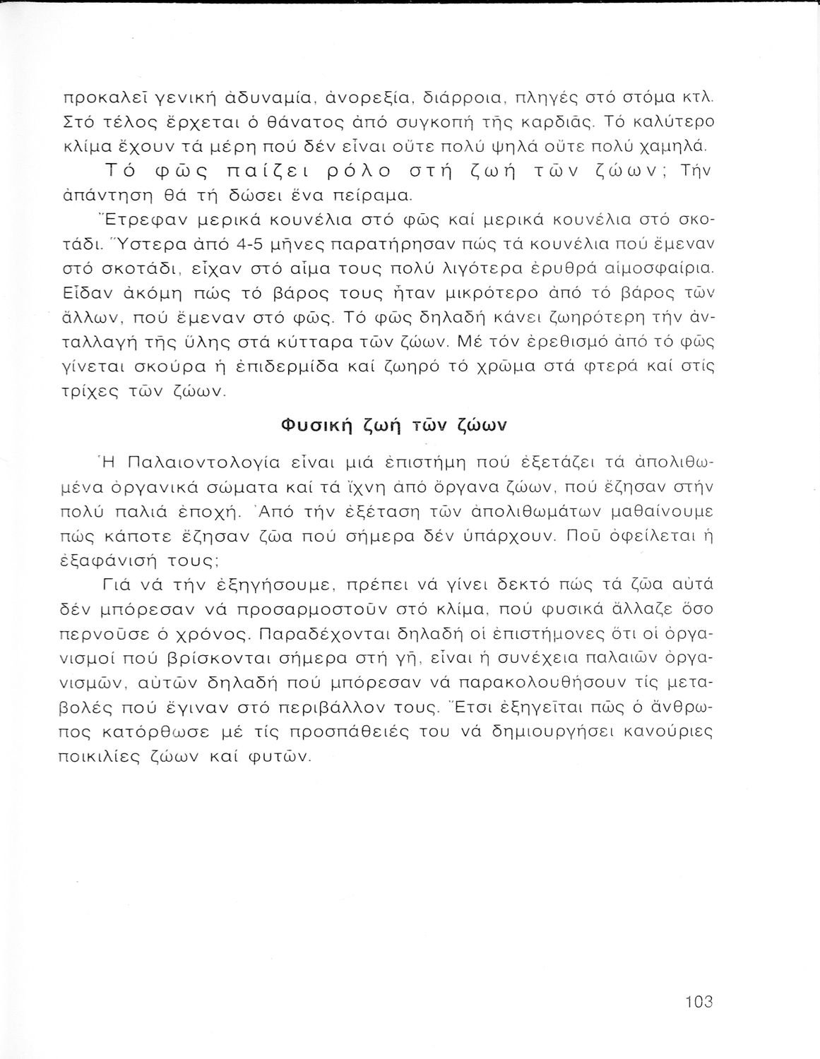 Μαθητικό βοήθημα της Ε΄ και ΣΤ΄ Δημοτικού για το μάθημα της Φυσικής Ιστορίας στο Δημοτικό. Περιέχει πληροφορίες για τη φυτολογία και τη ζωολογία. Το βιβλίο έχει εικόνες, οι οποίες διευκολύνουν τη διδασκαλία. Ο