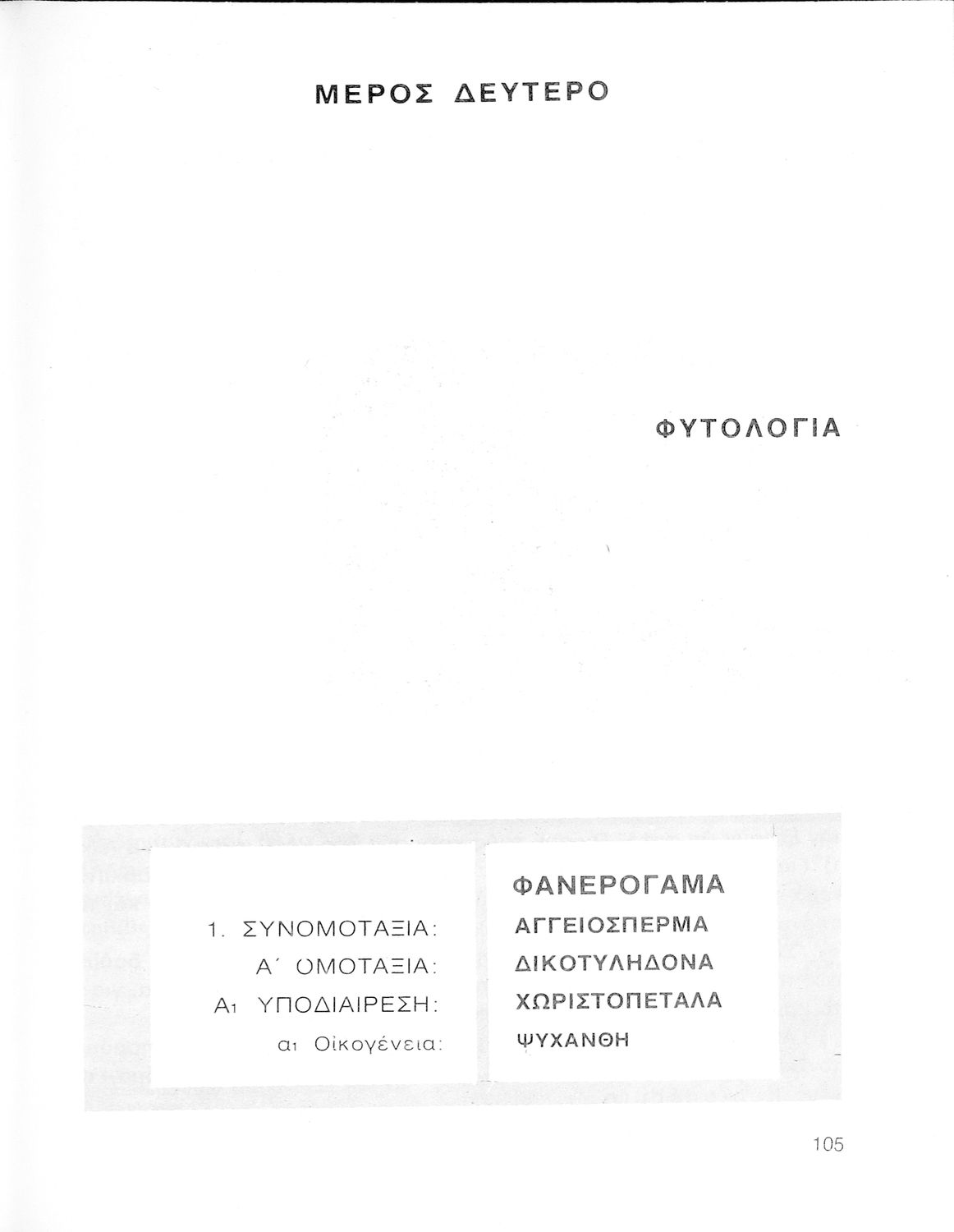 Σχολικό εγχειρίδιο Φυτολογίας για τη Β΄ Γυμνασίου και Α΄ τάξη Αστικών σχολείων που περιέχει πληροφορίες για τα φυτά της Ελλάδας καθώς και στοιχεία Ζωολογίας για ζώα διαφόρων τόπων.