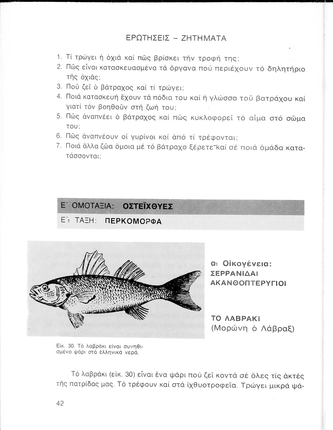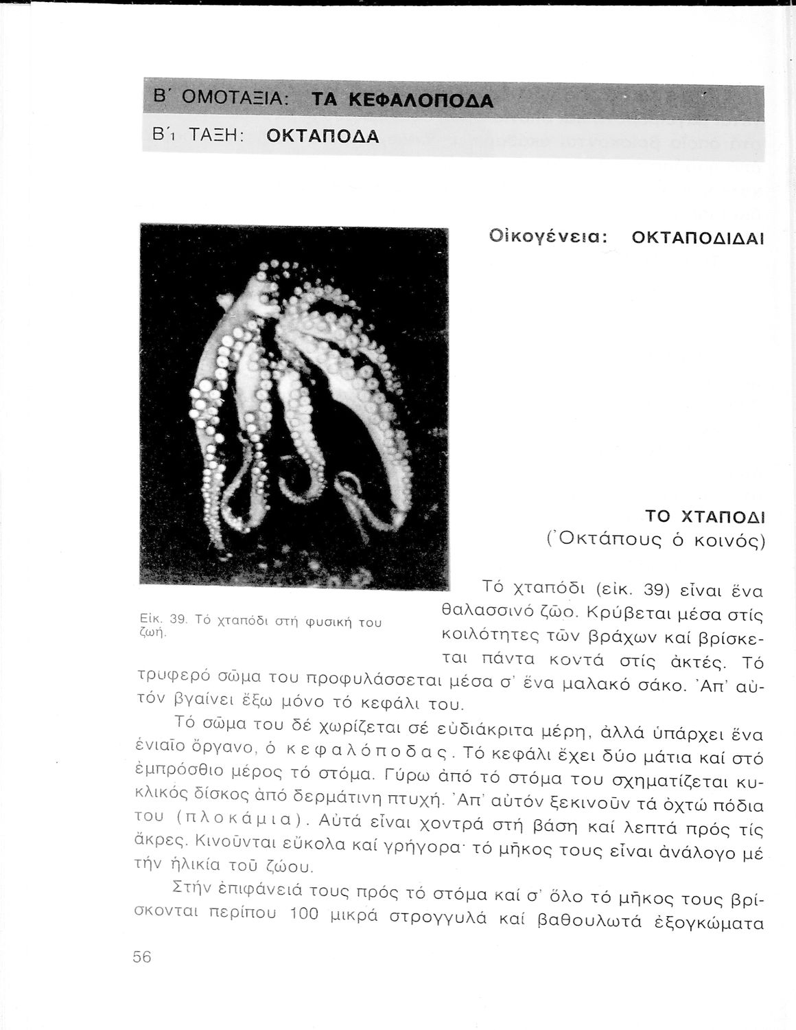 Σχολικό εγχειρίδιο Ζωολογίας/Φυτολογίας για τα Γυμνάσια και Αστικά Σχολεία που παρουσιάζει διάφορα ζώα και φυτά ανάλογα με τη συνομοταξία στην οποία ανήκουν.