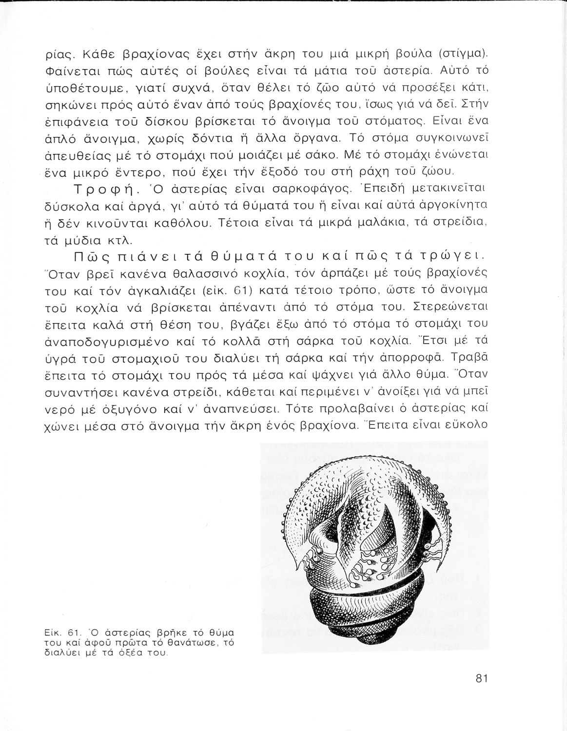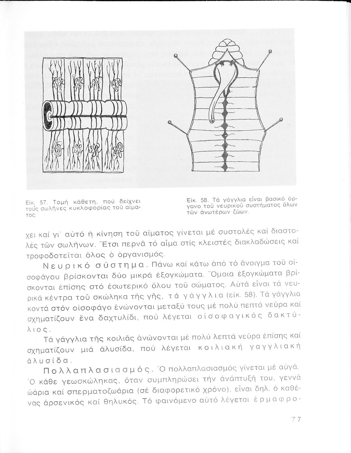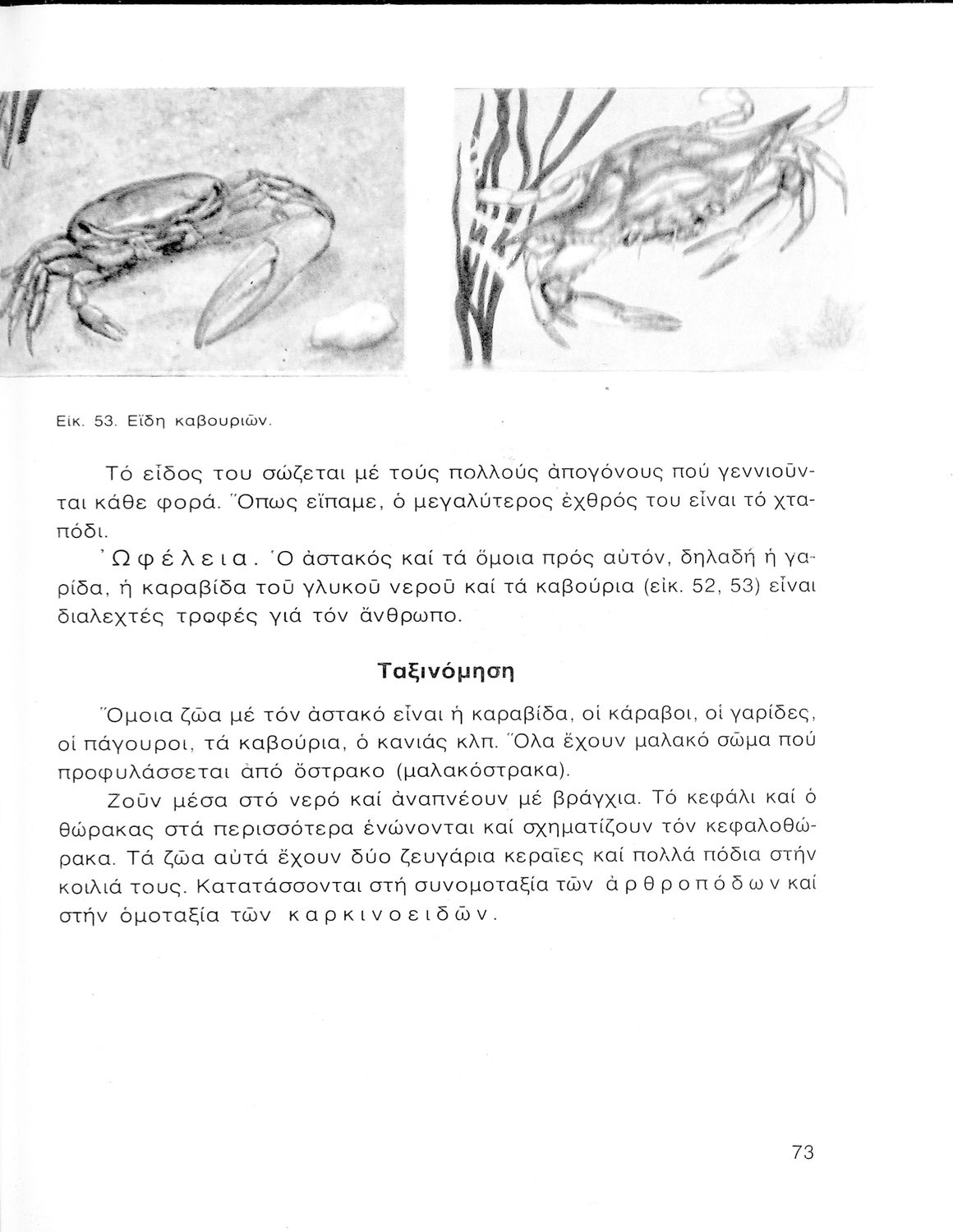 Σχολικό εγχειρίδιο Ζωολογίας/Φυτολογίας για τα Γυμνάσια και Αστικά Σχολεία που παρουσιάζει διάφορα ζώα και φυτά ανάλογα με τη συνομοταξία στην οποία ανήκουν.
