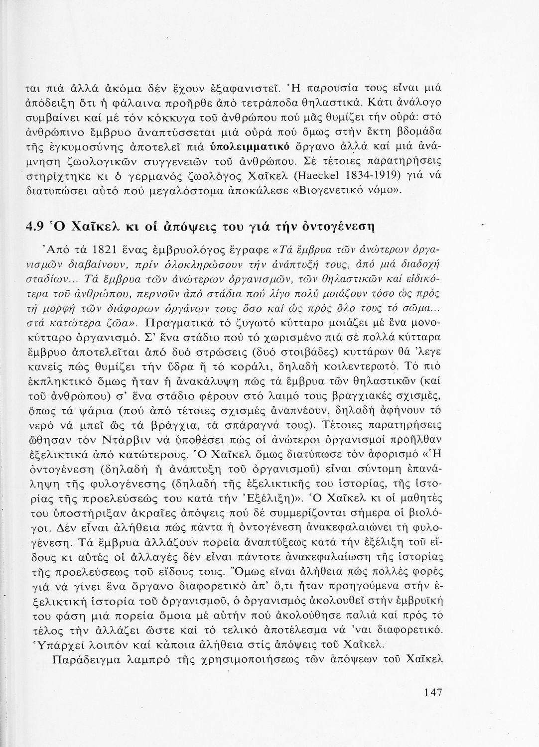 Σχολικό εγχειρίδιο Βιολογίας Γ΄ Γυμνασίου που εστιάζει στις συνθήκες γέννησης, μεταβολής και θανάτου των έμβιων οργανισμών. Φέρει το σύμβολο της δικτατορίας.