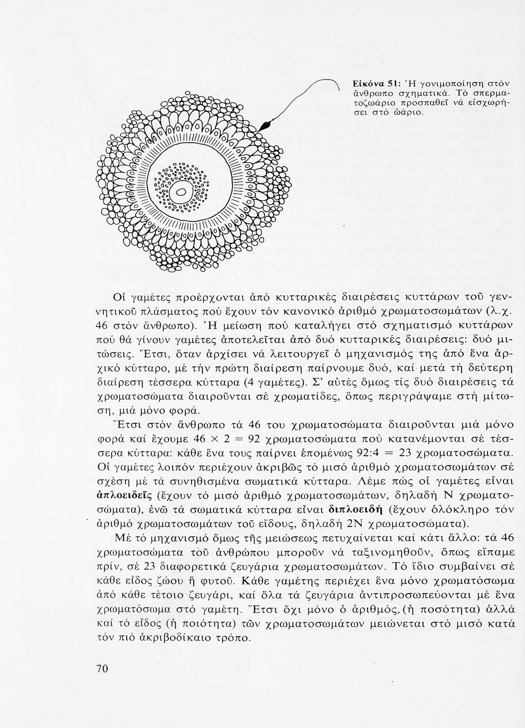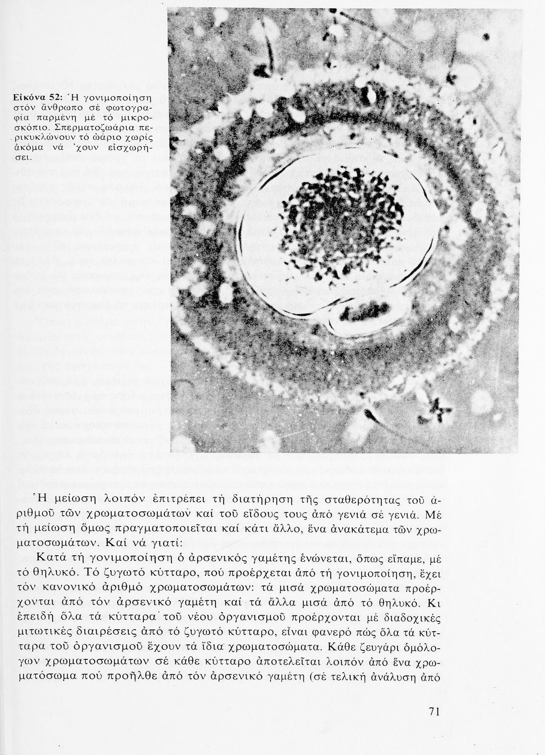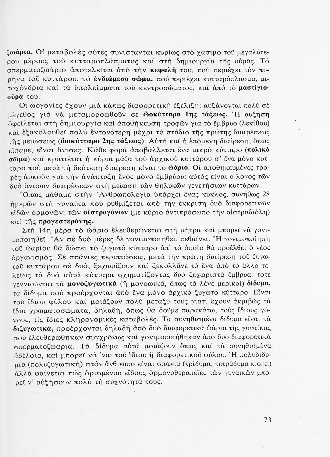 Σχολικό εγχειρίδιο Βιολογίας ΣΤ΄ Γυμνασίου που εστιάζει στις συνθήκες γέννησης, μεταβολής και θανάτου των έμβιων οργανισμών. Φέρει το σύμβολο της δικτατορίας. Ο συγγραφέας ήταν υφηγητής του Πανεπιστημίου ...