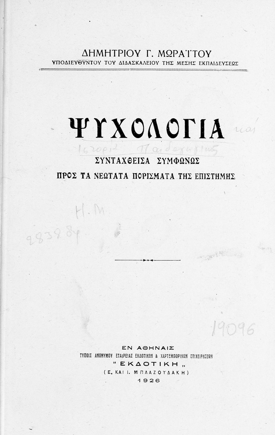 Τίτλος: Ψυχολογία συνταχθείσα συμφώνως προς τα νεώτατα πορίσματα της επιστήμης