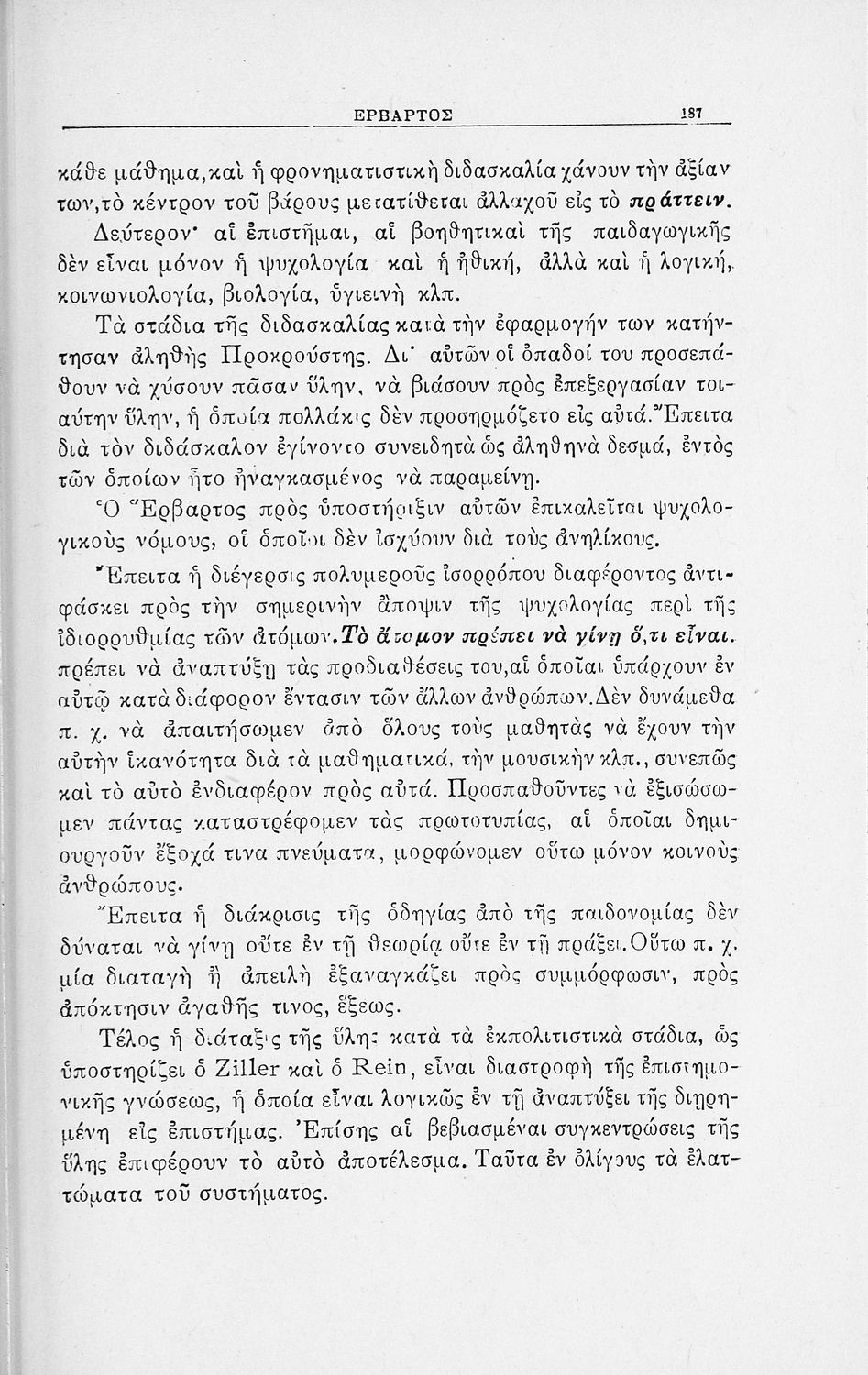 Παιδαγωγικό βοήθημα που περιλαμβάνει σε μορφή γραμμάτων απόψεις περί της ερβαρτιανής προσέγγισης, περί της παιδαγωγικής θεώρησης του Σχολείου Εργασίας, της διαδικασίας της διδασκαλίας και άλλων παιδαγωγικών ...