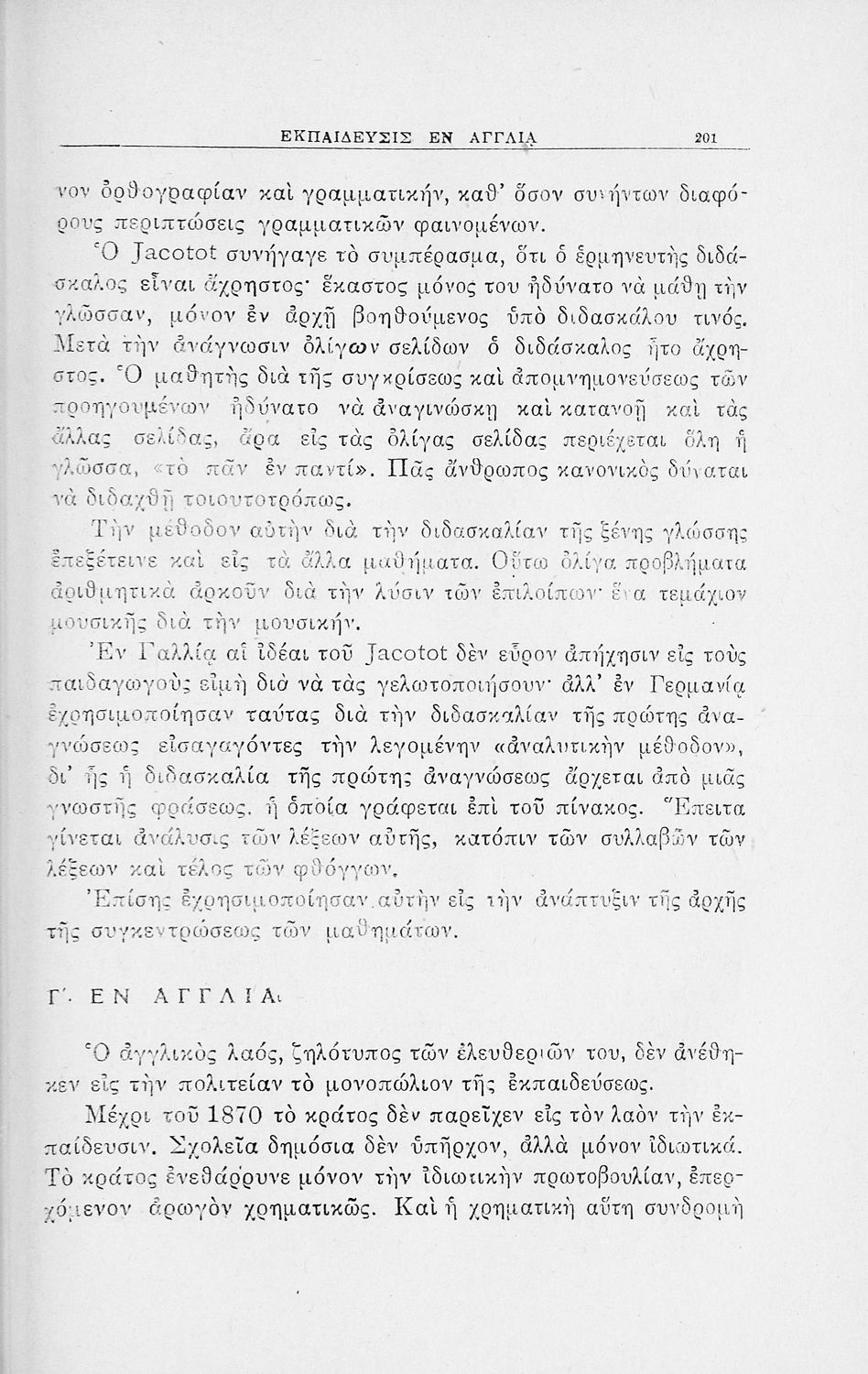 Παιδαγωγικό βοήθημα προς χρήσιν των διδασκάλων και παιδαγωγών. Το βιβλίο παρουσιάζει την εξέλιξη της παιδαγωγικής μεθόδου από την περίοδο του Όθωνα μέχρι και τη σημερινή εποχή εξετάζοντας τους μετασχηματισμούς της γλώσσας και των μεθόδων διδασκαλίας σε διαφορετικές ιστορικές περιόδους από την ίδρυση του ελληνικού κράτους μέχρι και σήμερα.