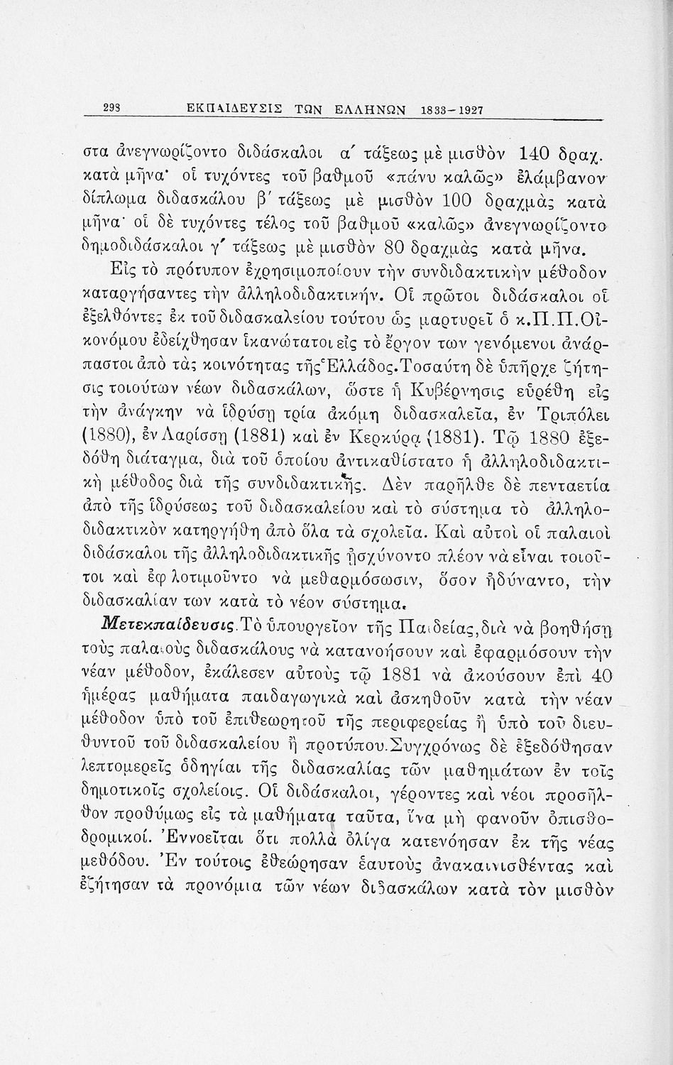 Παιδαγωγικό βοήθημα προς χρήσιν των διδασκάλων και παιδαγωγών. Το βιβλίο παρουσιάζει την εξέλιξη της παιδαγωγικής μεθόδου από την περίοδο του Όθωνα μέχρι και τη σημερινή εποχή εξετάζοντας τους μετασχηματισμούς της γλώσσας και των μεθόδων διδασκαλίας σε διαφορετικές ιστορικές περιόδους από την ίδρυση του ελληνικού κράτους μέχρι και σήμερα.