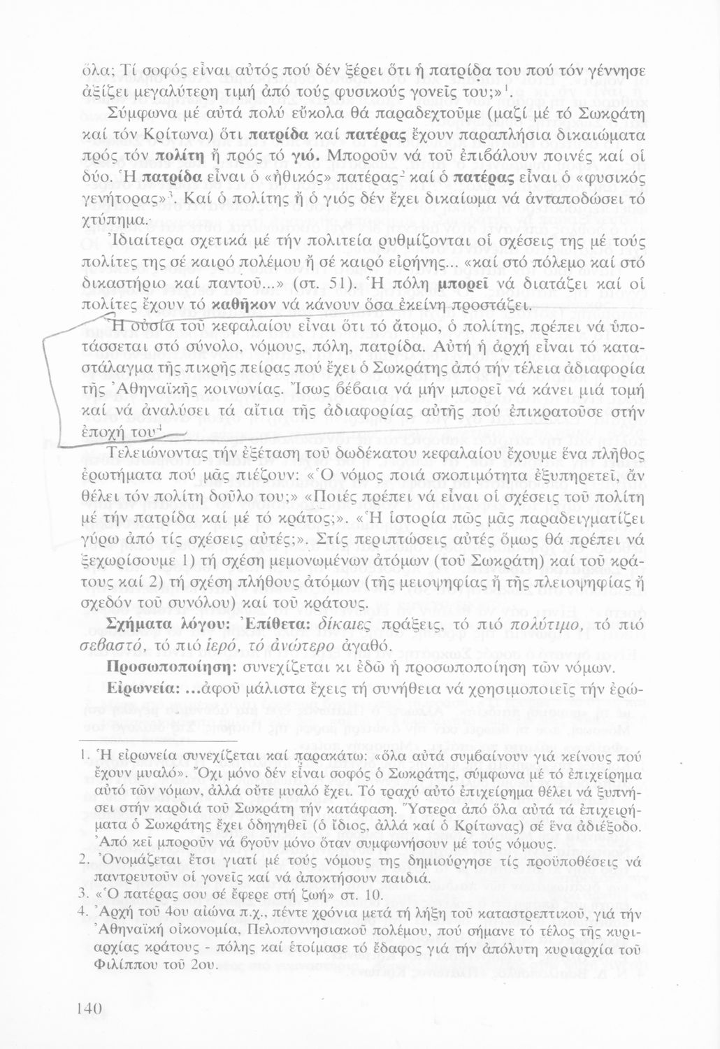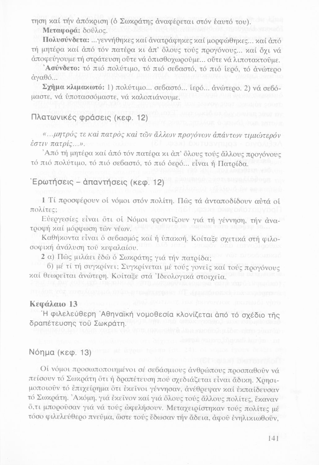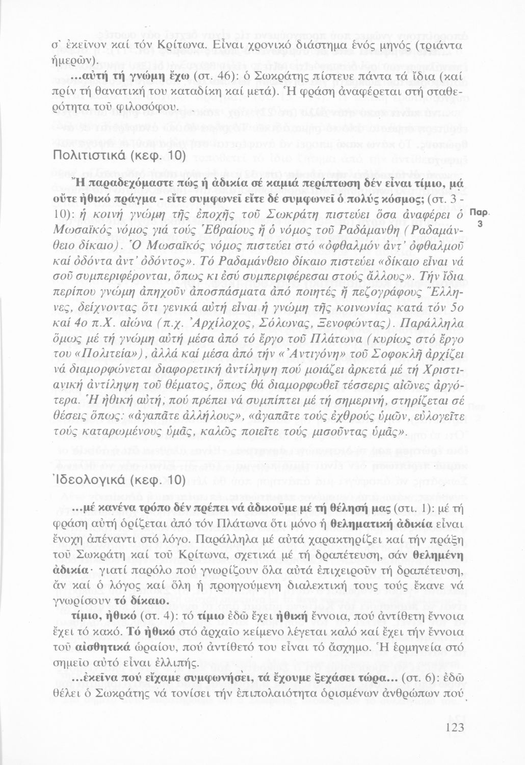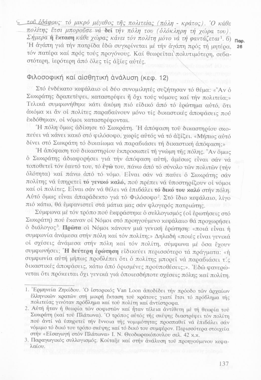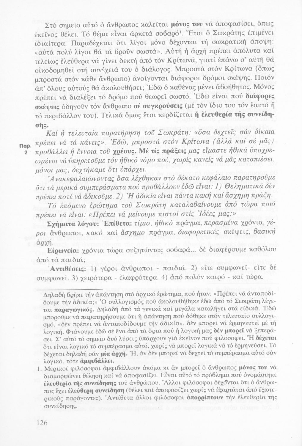 Σχολικό εγχειρίδιο της Γ΄ Γυμνασίου για το μάθημα των Αρχαίων Ελληνικών στο Γυμνάσιο. Πρόκειται για φιλοσοφικά κείμενα. Περιέχει ερμηνευτικές και πραγματολογικές παρατηρήσεις του συγγραφέα.