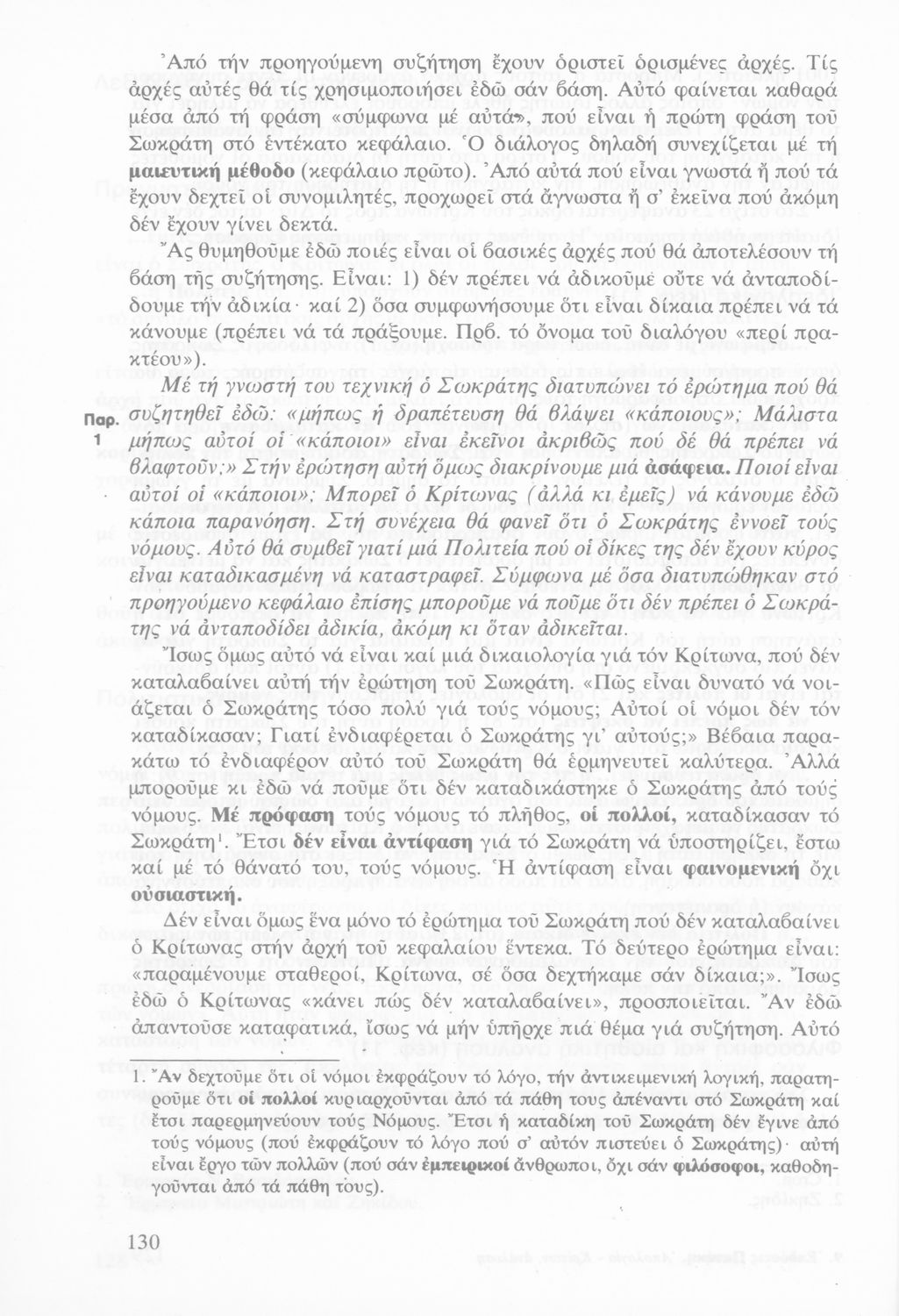 Σχολικό εγχειρίδιο της Ε΄ Γυμνασίου για το μάθημα των Αρχαίων Ελληνικών. Περιέχει το πρωτότυπο κείμενο του Πλάτωνα από την απολογία του Κρίτωνα με ερμηνευτικά, πραγματολογικά σχόλια και λεξιλογικές ...