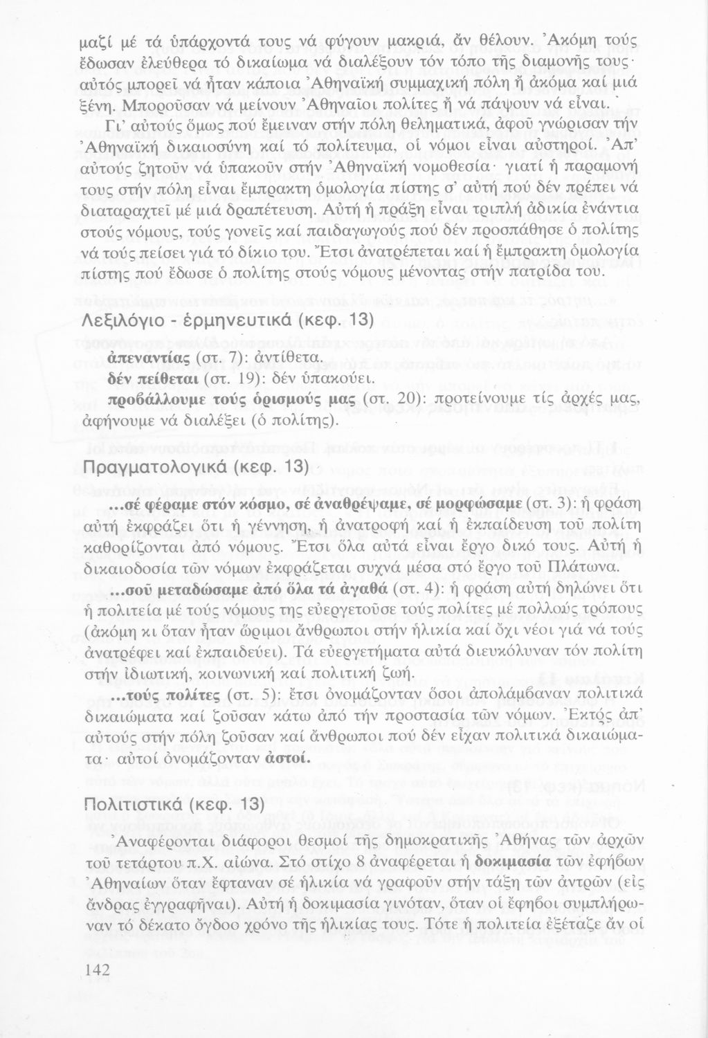 Μαθητικό βοήθημα Αρχαίων Ελληνικών για τους μαθητές της Γ΄ Γυμνασίου, με φιλοσοφική ανάλυση των κειμένων.