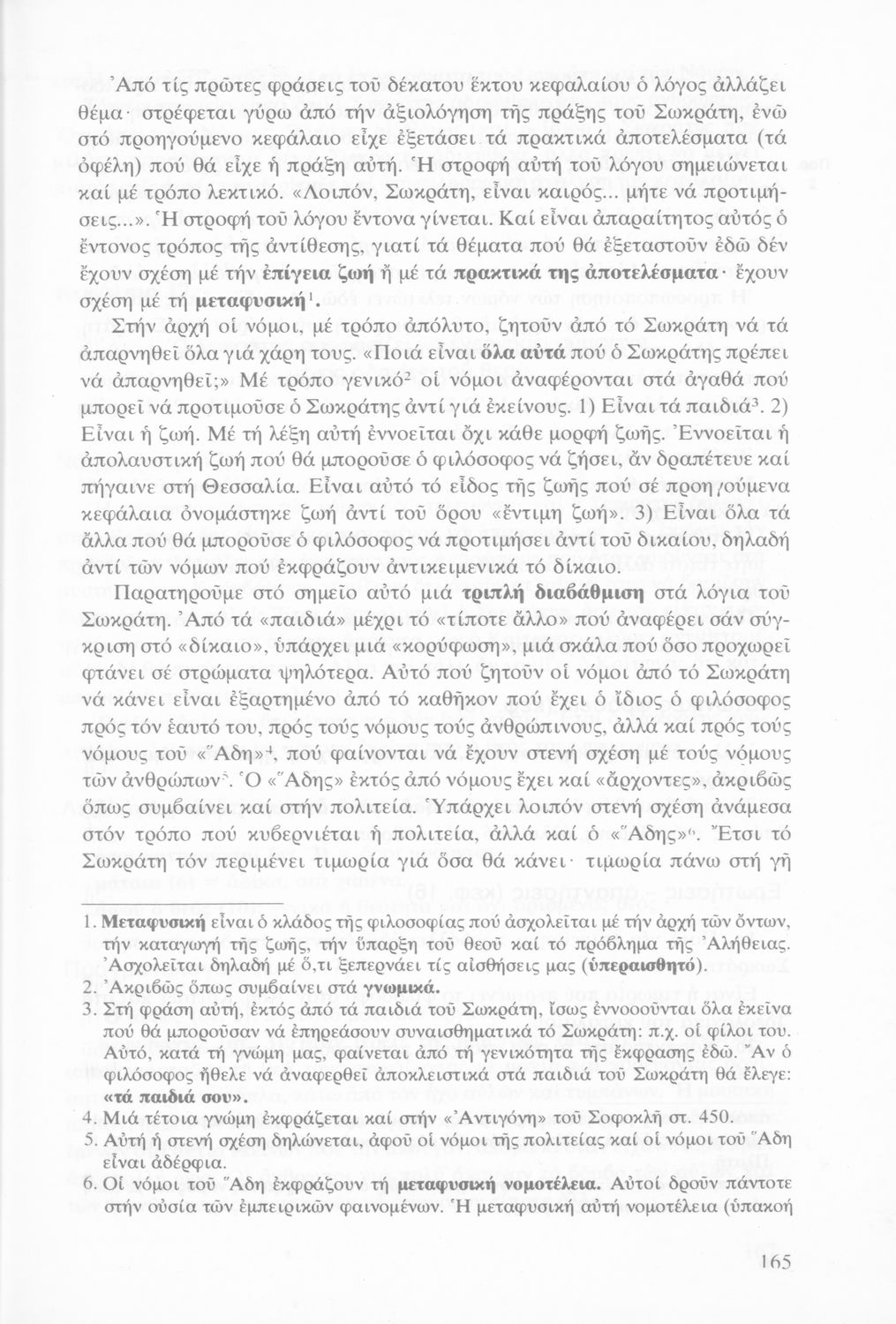 Σχολικό εγχειρίδιο της Γ΄ Γυμνασίου για το μάθημα των Αρχαίων Ελληνικών στο Γυμνάσιο. Πρόκειται για φιλοσοφικά κείμενα. Περιέχει ερμηνευτικές και πραγματολογικές παρατηρήσεις του συγγραφέα.