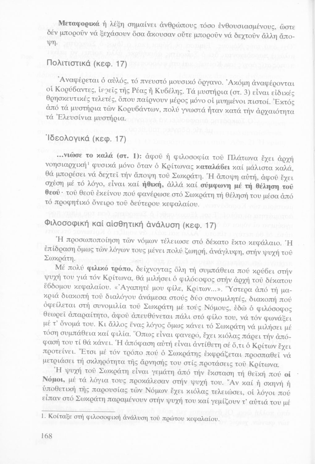 Σχολικό εγχειρίδιο Αρχαίων Ελληνικών για τις Ε΄ Εξαταξίου Γυμνασίου παλαιού τύπου και ΣΤ΄ Εξαταξίου Γυμνασίου νέου τύπου που περιλαμβάνει εισαγωγικά στοιχεία για τη ζωή και το έργο του Πλάτωνα και μικρό ...